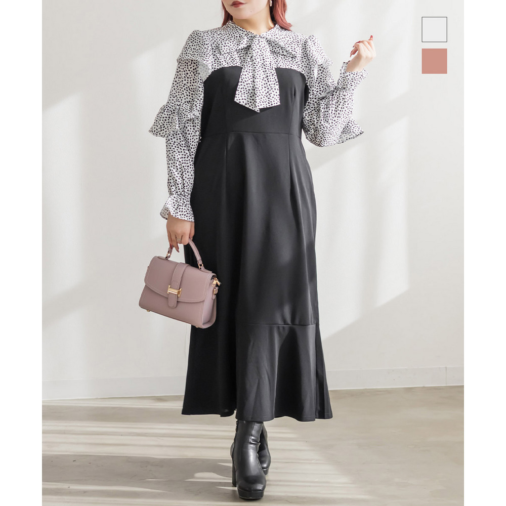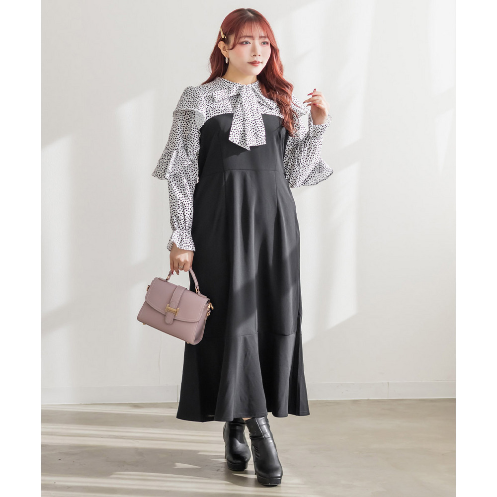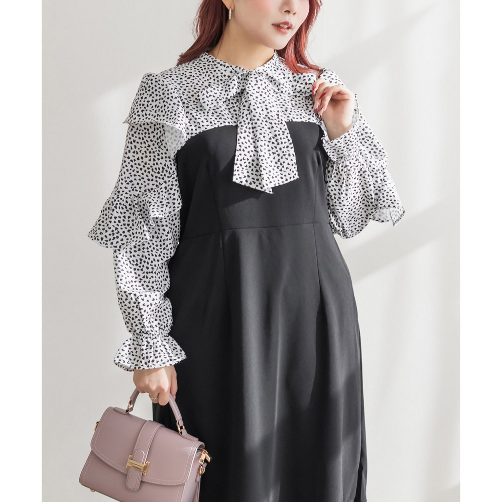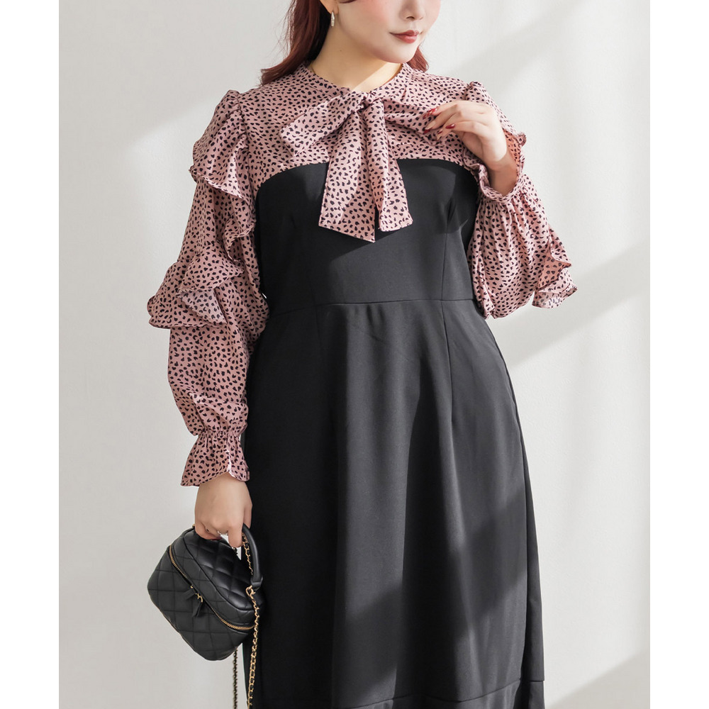 | 3Lを着てぴったりサイズでした。首まわりは自分で結べるので窮屈感がなく、ウエストは後ろゴムになっているから着心地もらくちんです!裾がマーメイドデザインになっているからすごく女性らしくスタイルアップ出来ました!ドットのようなアニマル柄がおしゃれで、バスト上切替になっていてブラウスを重ね着しているような着こなしになれるワンピースです♪寒い時期はカーディガンやアウター重ね着してもかわいいです。お出かけやデートにおすすめの1枚です! |