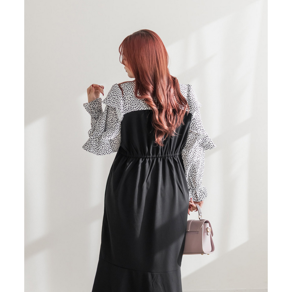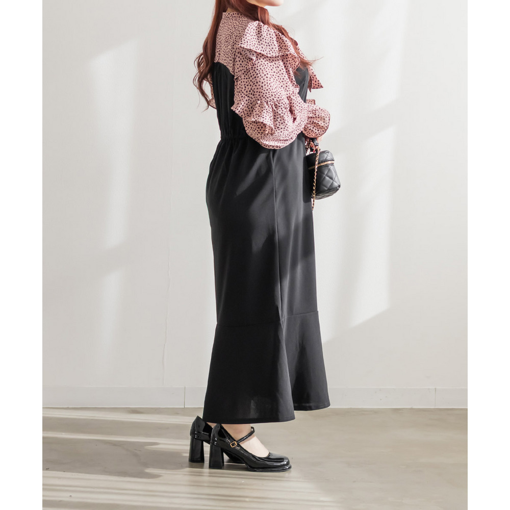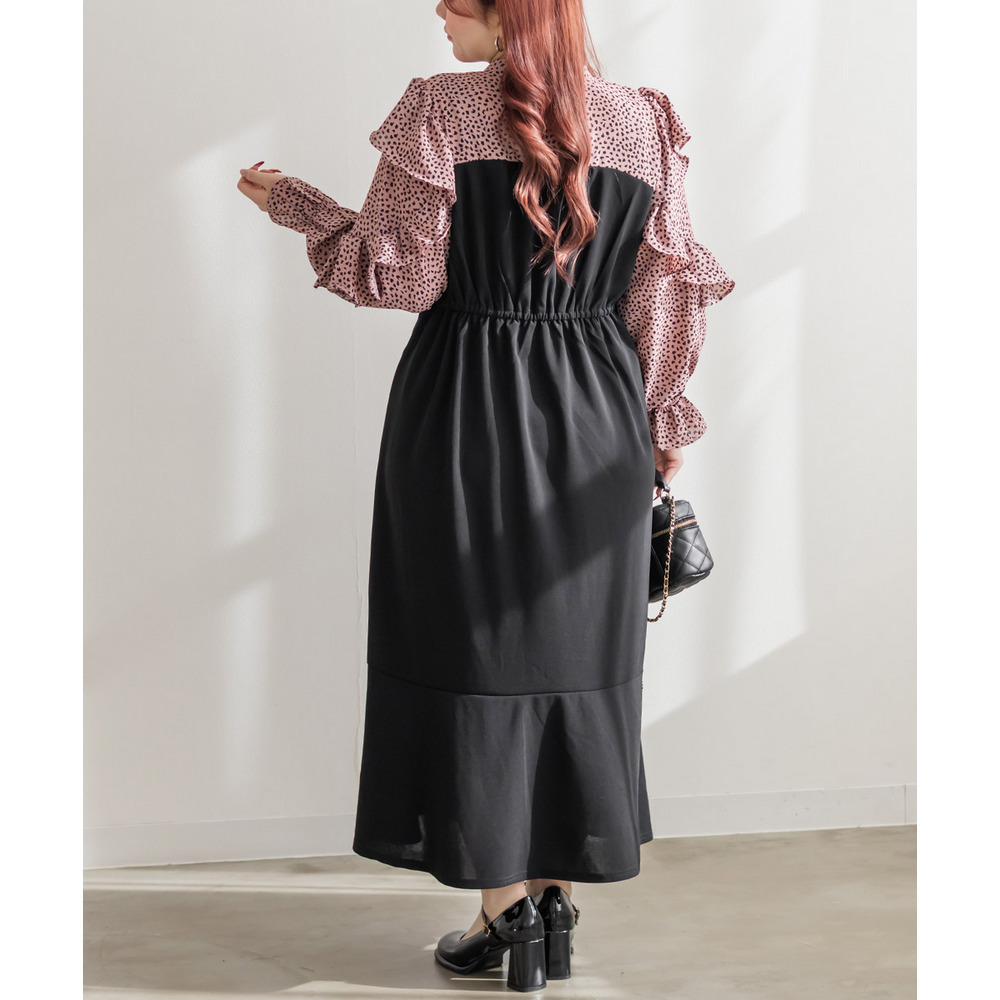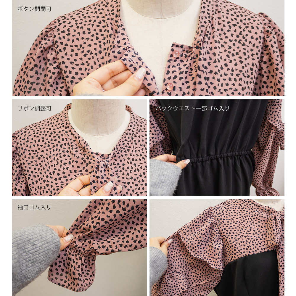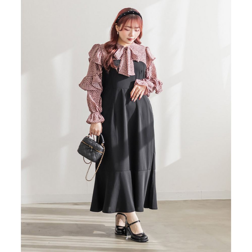 | 3Lを着てぴったりサイズでした。首まわりは自分で結べるので窮屈感がなく、ウエストは後ろゴムになっているから着心地もらくちんです!裾がマーメイドデザインになっているからすごく女性らしくスタイルアップ出来ました!ドットのようなアニマル柄がおしゃれで、バスト上切替になっていてブラウスを重ね着しているような着こなしになれるワンピースです♪寒い時期はカーディガンやアウター重ね着してもかわいいです。お出かけやデートにおすすめの1枚です! |