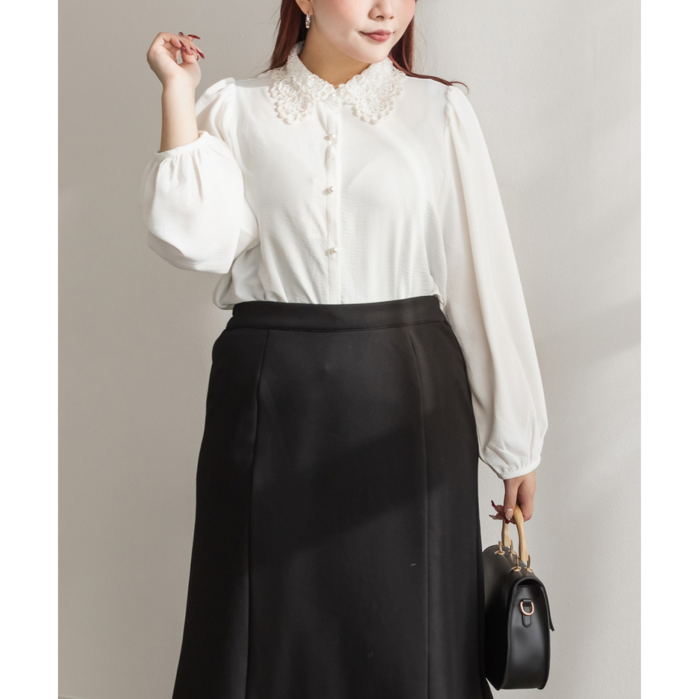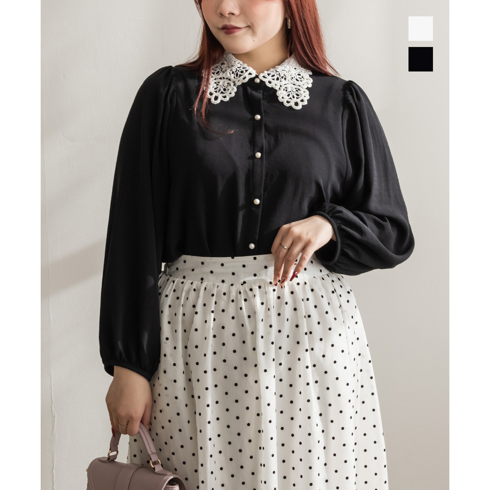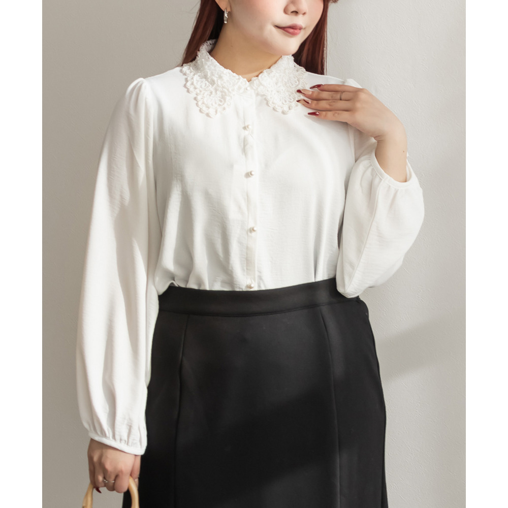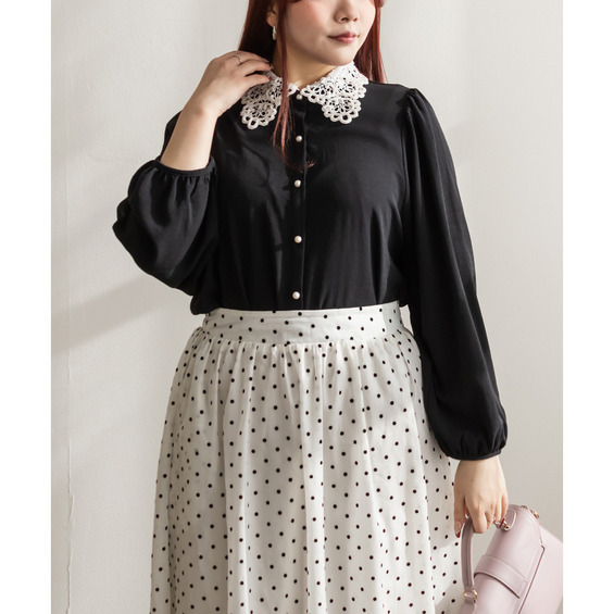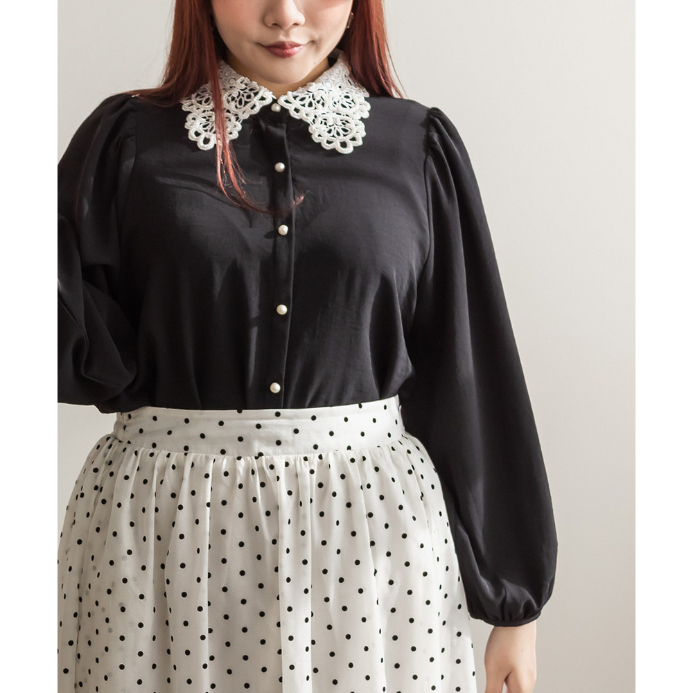パール使いレース襟ブラウス