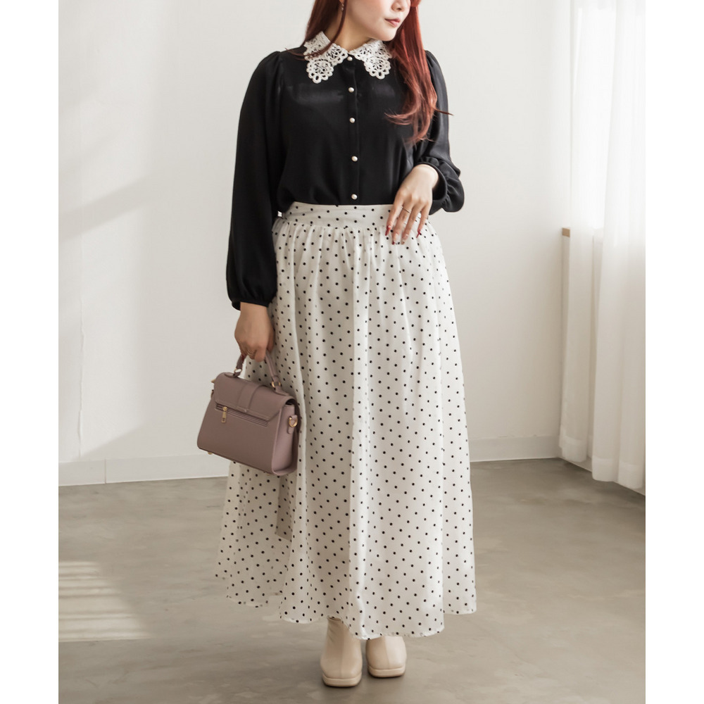 3Lを着てちょうどいいサイズでした。全体的にピタッとフィットし過ぎない楽な着心地でした。レース襟が女性らしさたっぷりの上品なデザインで、クラシックで知的な印象になれます。デートやお出かけは勿論、特別な日のレストランや、ちょっときちんとしたいシーンとか、色々な場面でも使えそうです♪