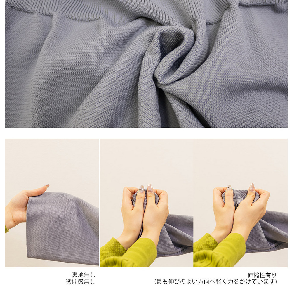 | 素材 | ■素材 ポリエステル100% ■裏地・透け感・伸縮性 裏地無し、透け感無し、伸縮性有り ■ポケット 無し ■生地感 程よくしっかりとした肌触りのなめらかな素材です。 |