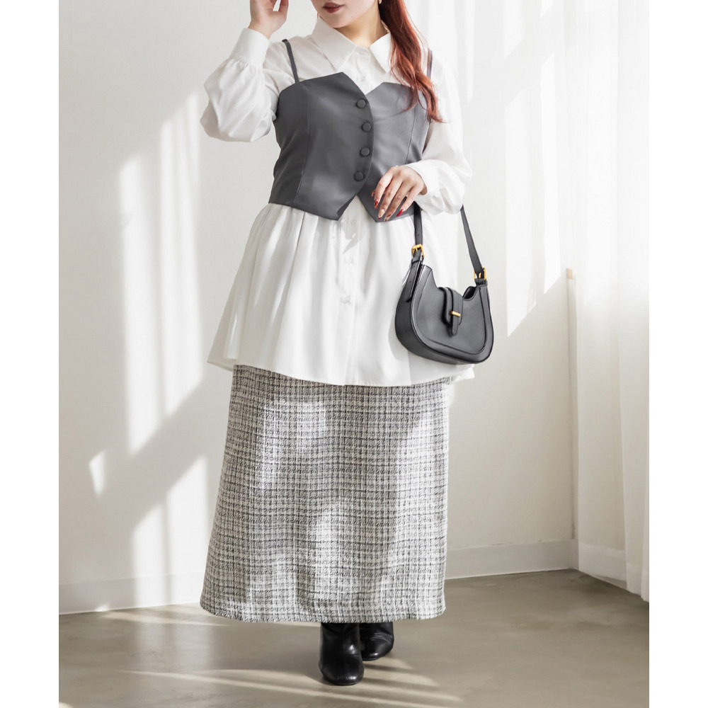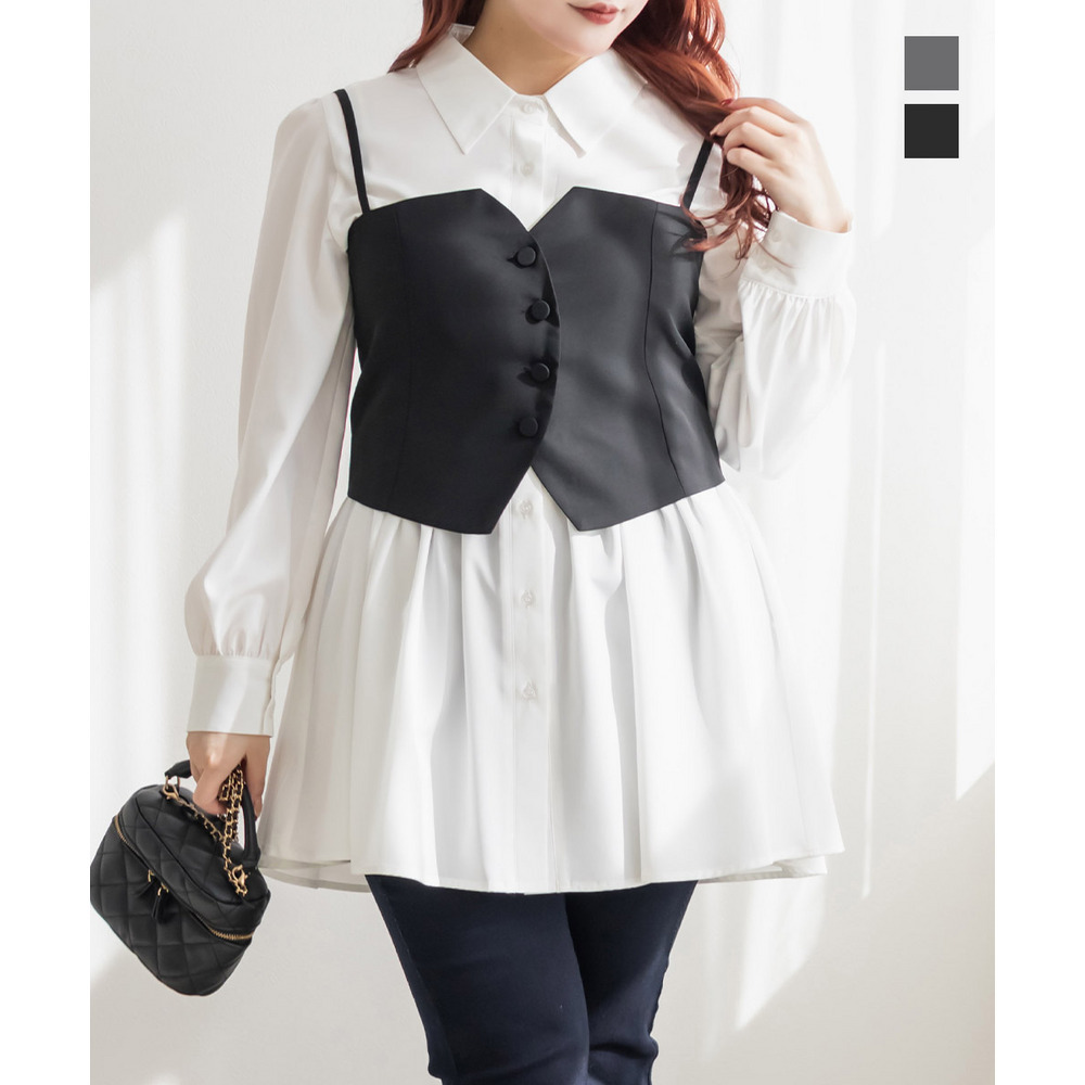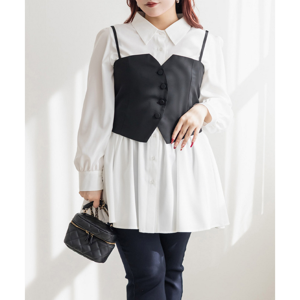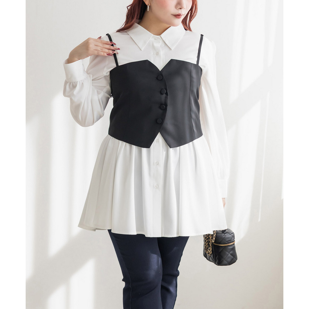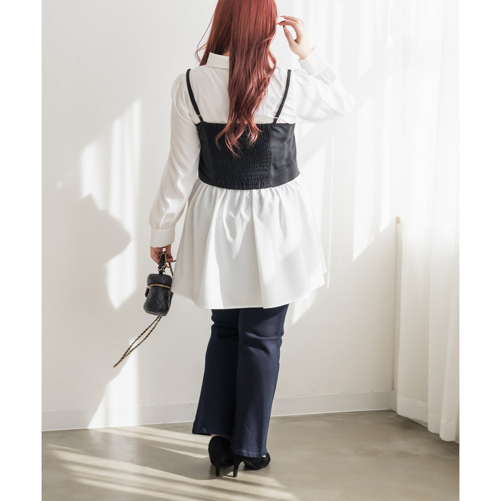 3Lサイズを着用しました。全体的にちょうどよく、いつものトップスと比べても窮屈感なく着られました。チュニックシャツは身幅にゆとりがあり、ヒップまわりまでしっかりカバーしてくれる安心感があります。ビスチェは締め付けすぎず、重ねるだけでウエスト位置が高く見えてスタイルアップできるのが嬉しいです!セットで着るだけでレイヤードコーデが完成するので、コーデに迷わずお洒落見えするのも◎それぞれ単品使いも出来て着回しの幅も広がります!デニムやスラックスを合わせて、デイリーからお出かけまで幅広く使えるおすすめアイテムです♪