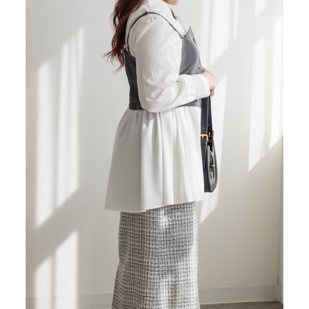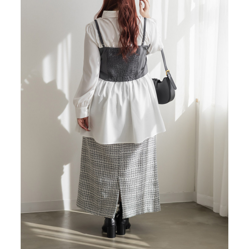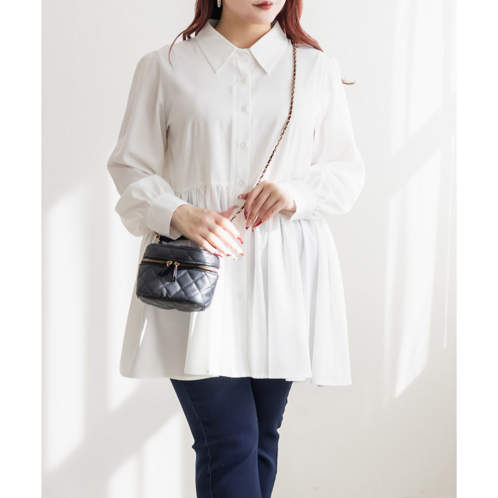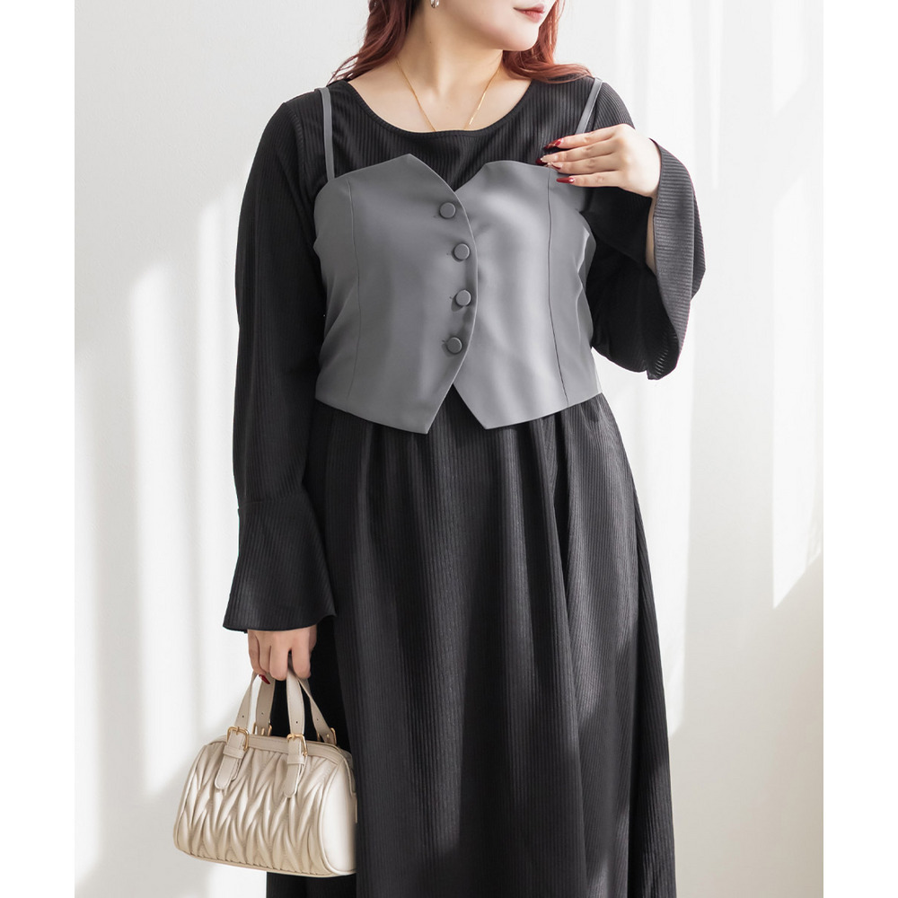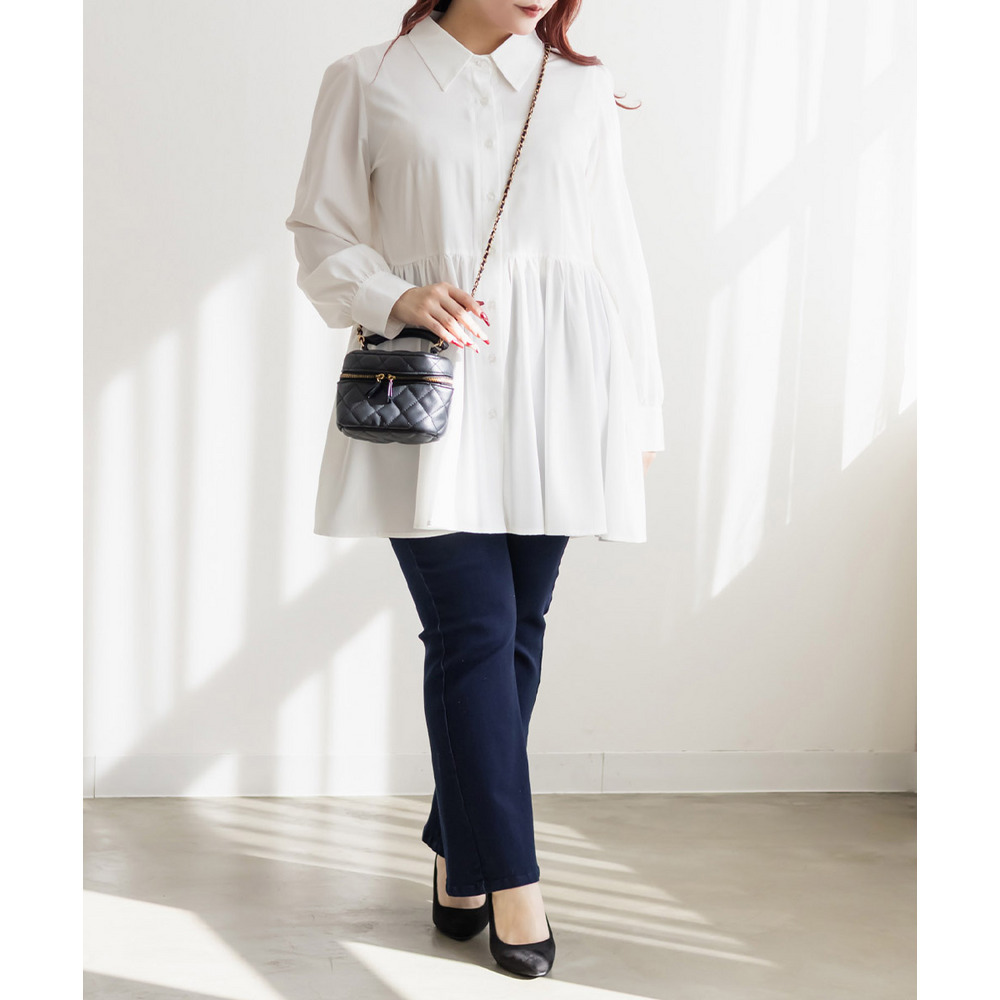 3Lサイズを着用しました。全体的にちょうどよく、いつものトップスと比べても窮屈感なく着られました。チュニックシャツは身幅にゆとりがあり、ヒップまわりまでしっかりカバーしてくれる安心感があります。ビスチェは締め付けすぎず、重ねるだけでウエスト位置が高く見えてスタイルアップできるのが嬉しいです!セットで着るだけでレイヤードコーデが完成するので、コーデに迷わずお洒落見えするのも◎それぞれ単品使いも出来て着回しの幅も広がります!デニムやスラックスを合わせて、デイリーからお出かけまで幅広く使えるおすすめアイテムです♪