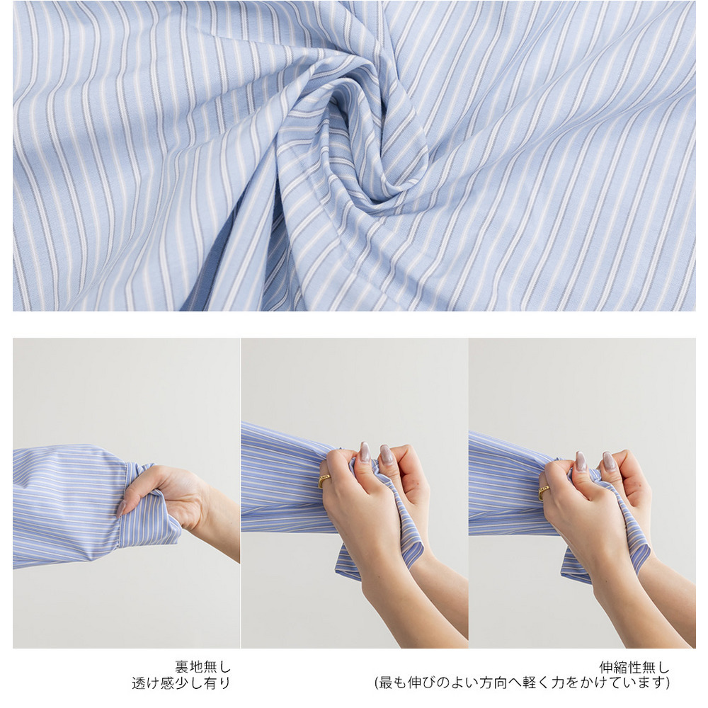 | 素材 | ■素材 ポリエステル80%、綿20% ■裏地・透け感・伸縮性 裏地無し、透け感少し有り、伸縮性無し ■ポケット 無し ■生地感 程よく薄手のさらっとした素材です。 |