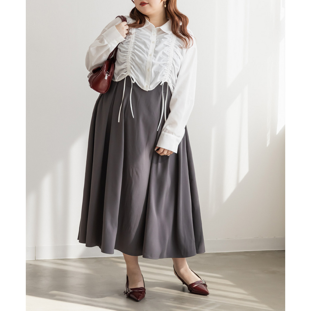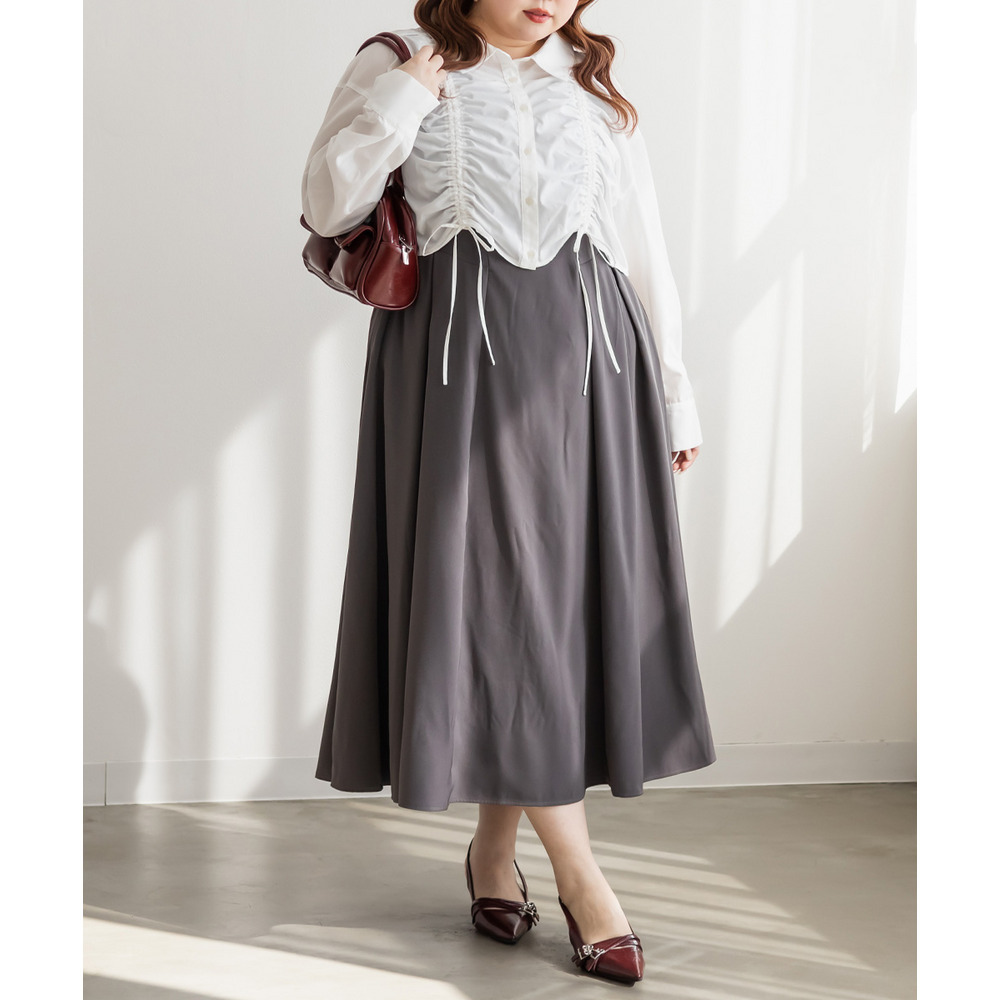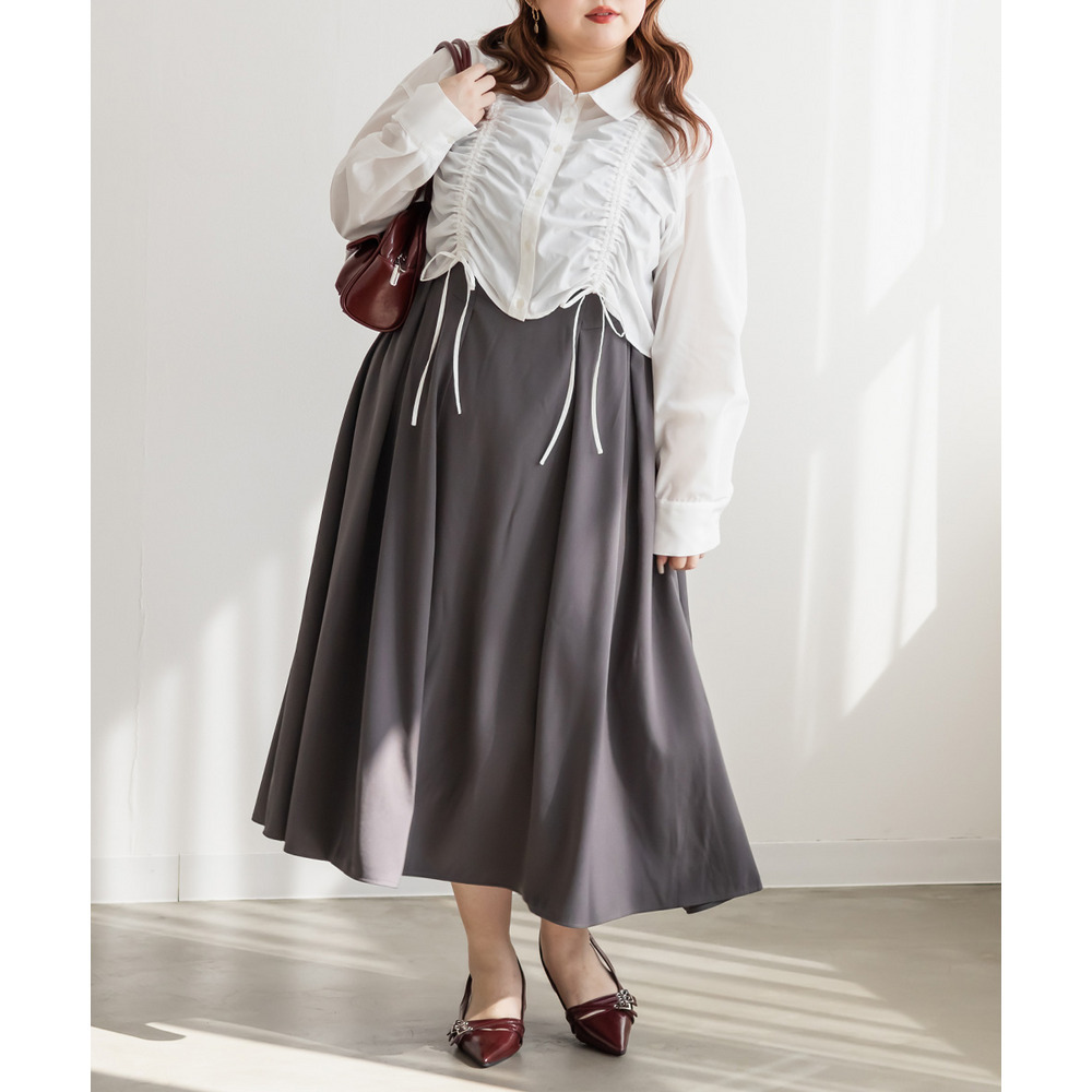 | 3Lサイズを着用してちょうどいいサイズ感でした。いつも通りのサイズ選びで問題なさそうです!ドロストデザインが今っぽくてとってもかわいいです!トップスインしなくて着られるショート丈なのでパンツにもスカートにも合わせやすくて、コーディネートに困らないのが推しポイントです!ドロストがあることでお腹周りなど気になる肉感を拾いにくいのも嬉しいです◎ |