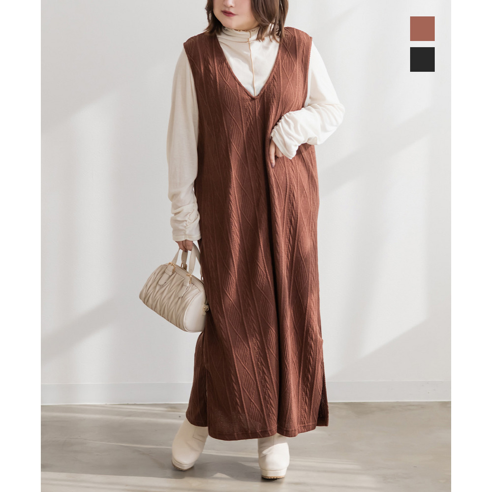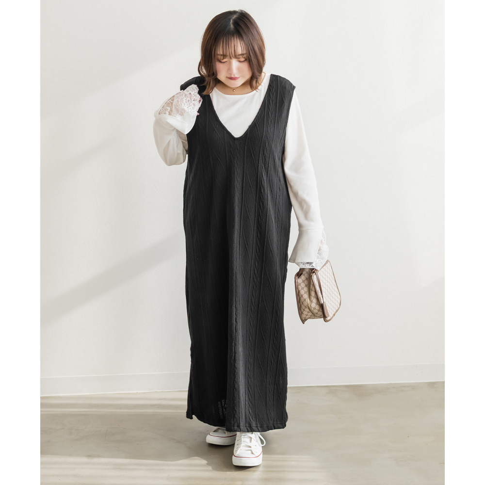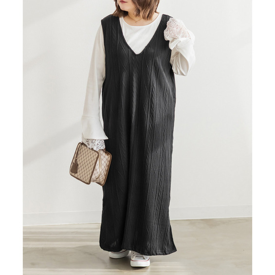 ケーブルふくれジャガードジャンスカワンピース