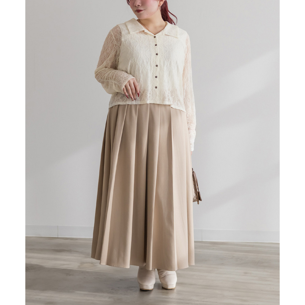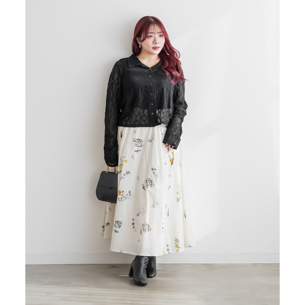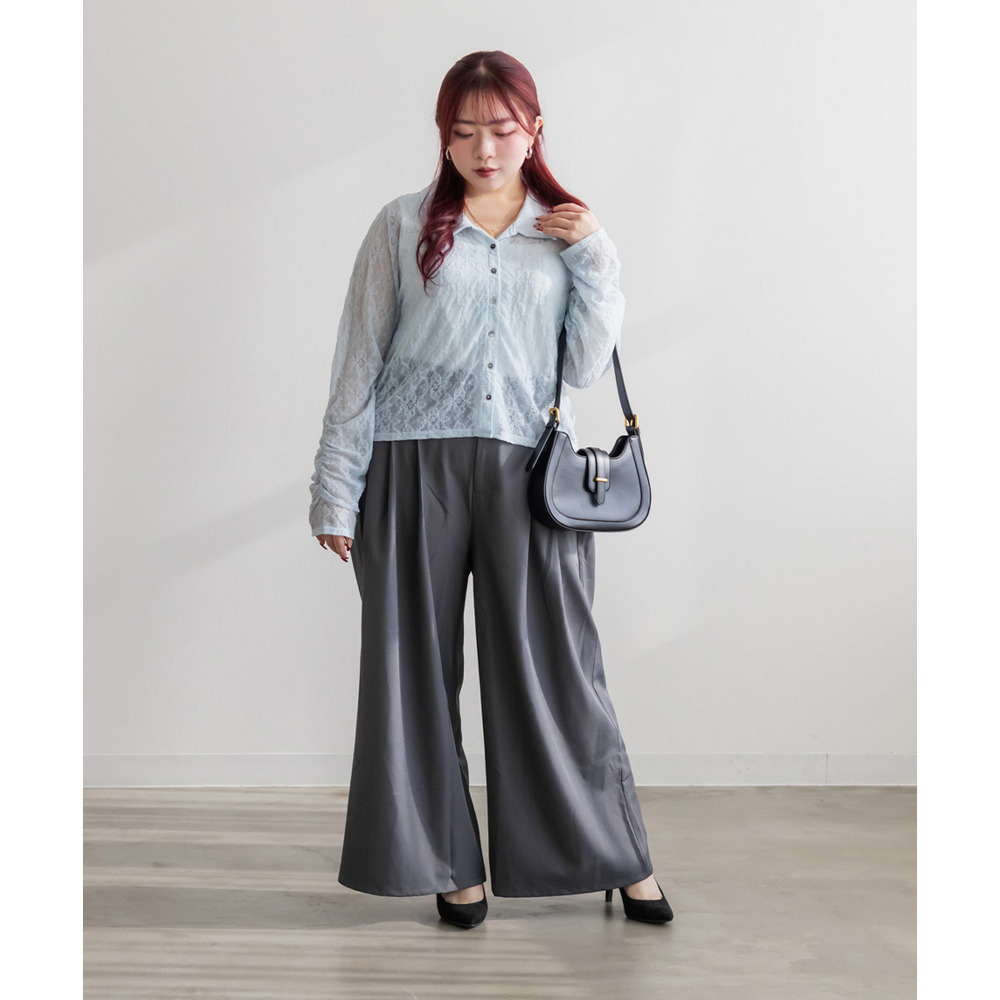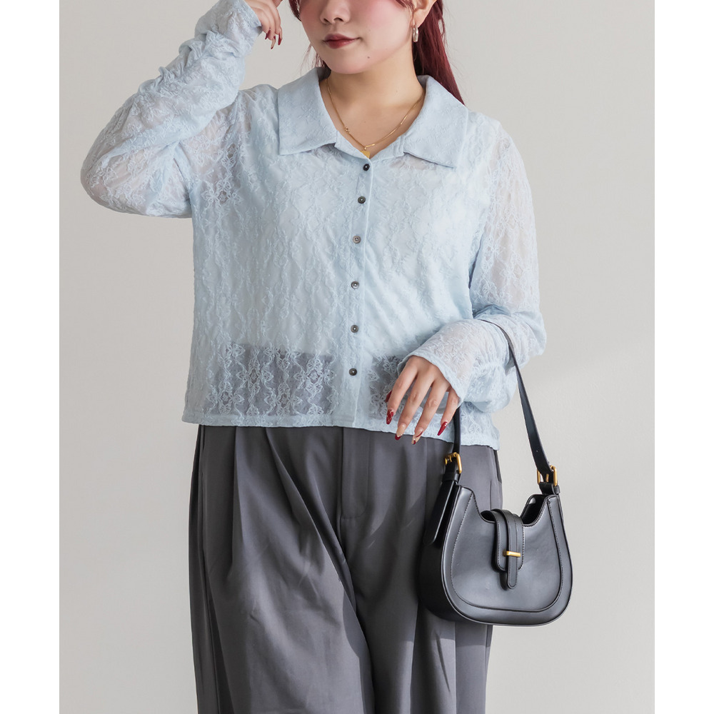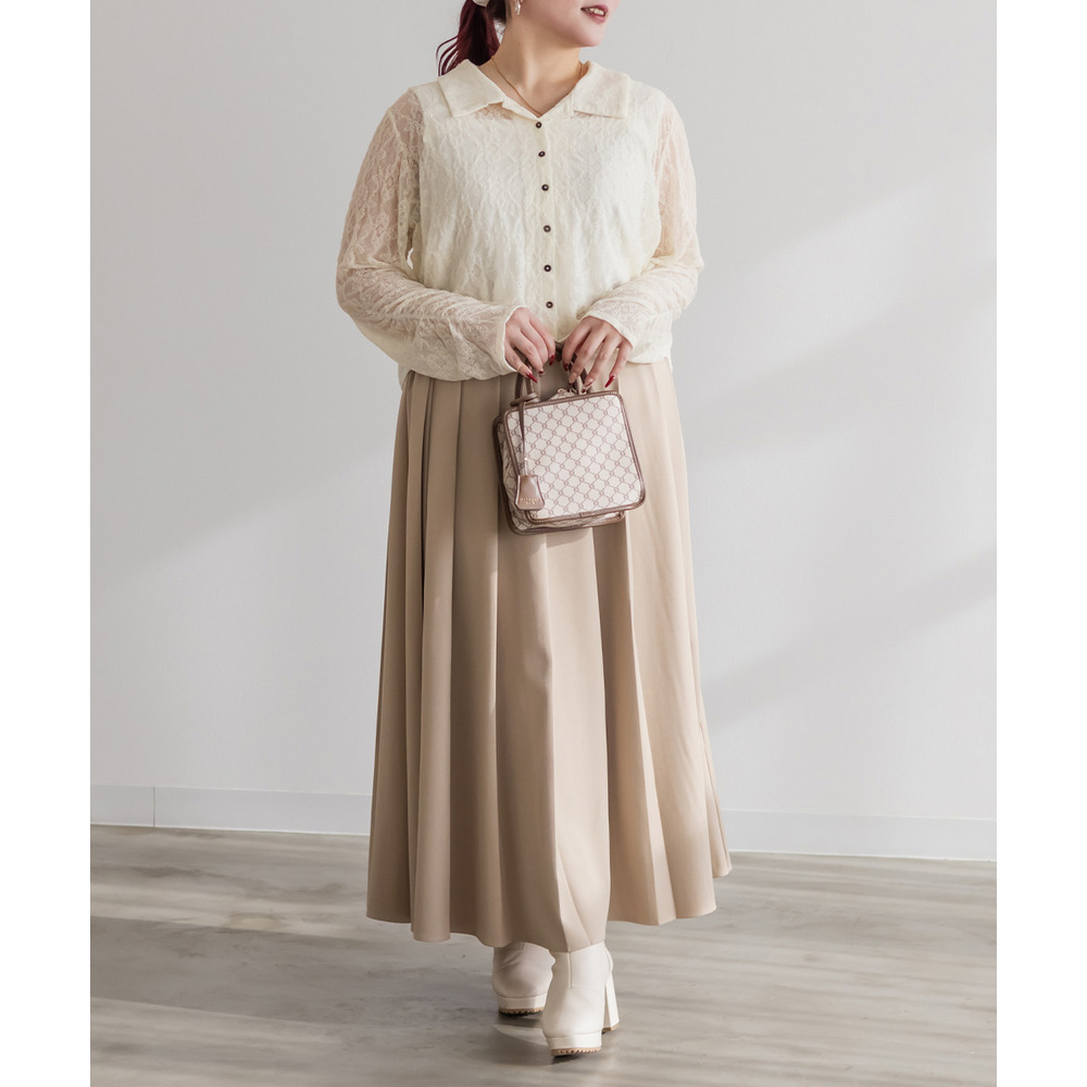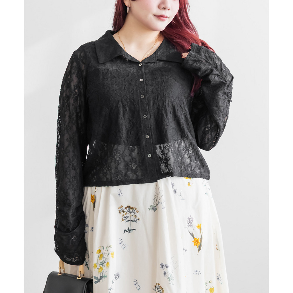 3Lを着て着用感はちょうどよく、伸縮性のあるレース素材なので窮屈さは感じませんでした。襟の開きがきれいで、デコルテや肩まわりがすっきり見えるのが嬉しいポイントです。薄手ですが体に張り付きすぎず、1枚着でも安心感がありました。袖下のゴムで自然にくしゅっと立体感が出て、二の腕もさりげなくカバーできます。スカート合わせでフェミニンにも、パンツ合わせで大人っぽくも着られて着回し力◎ キャミワンピのインナーにすると、程よい透け感がコーデのアクセントになっておすすめです♪