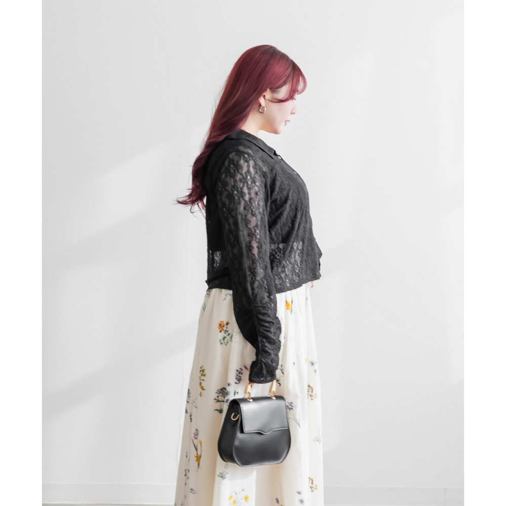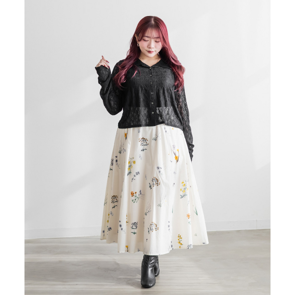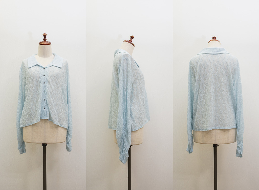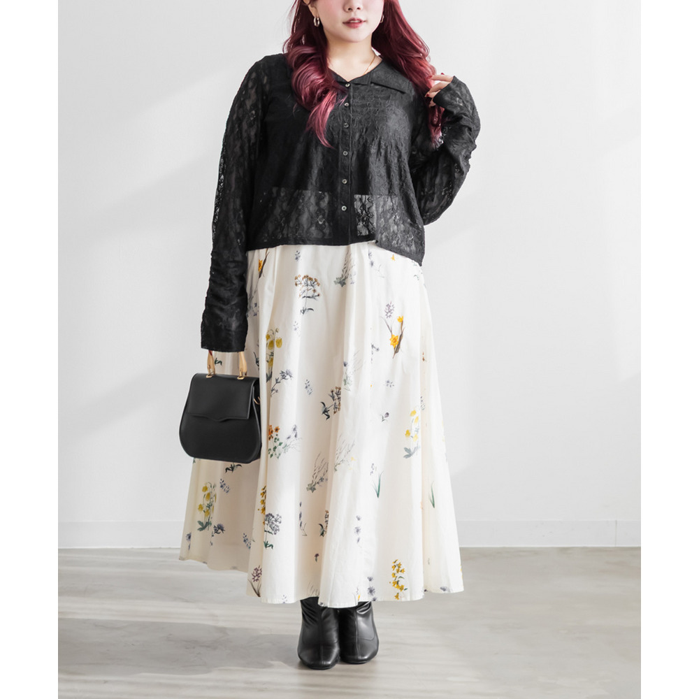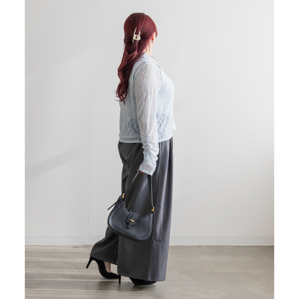 3Lを着て着用感はちょうどよく、伸縮性のあるレース素材なので窮屈さは感じませんでした。襟の開きがきれいで、デコルテや肩まわりがすっきり見えるのが嬉しいポイントです。薄手ですが体に張り付きすぎず、1枚着でも安心感がありました。袖下のゴムで自然にくしゅっと立体感が出て、二の腕もさりげなくカバーできます。スカート合わせでフェミニンにも、パンツ合わせで大人っぽくも着られて着回し力◎ キャミワンピのインナーにすると、程よい透け感がコーデのアクセントになっておすすめです♪
