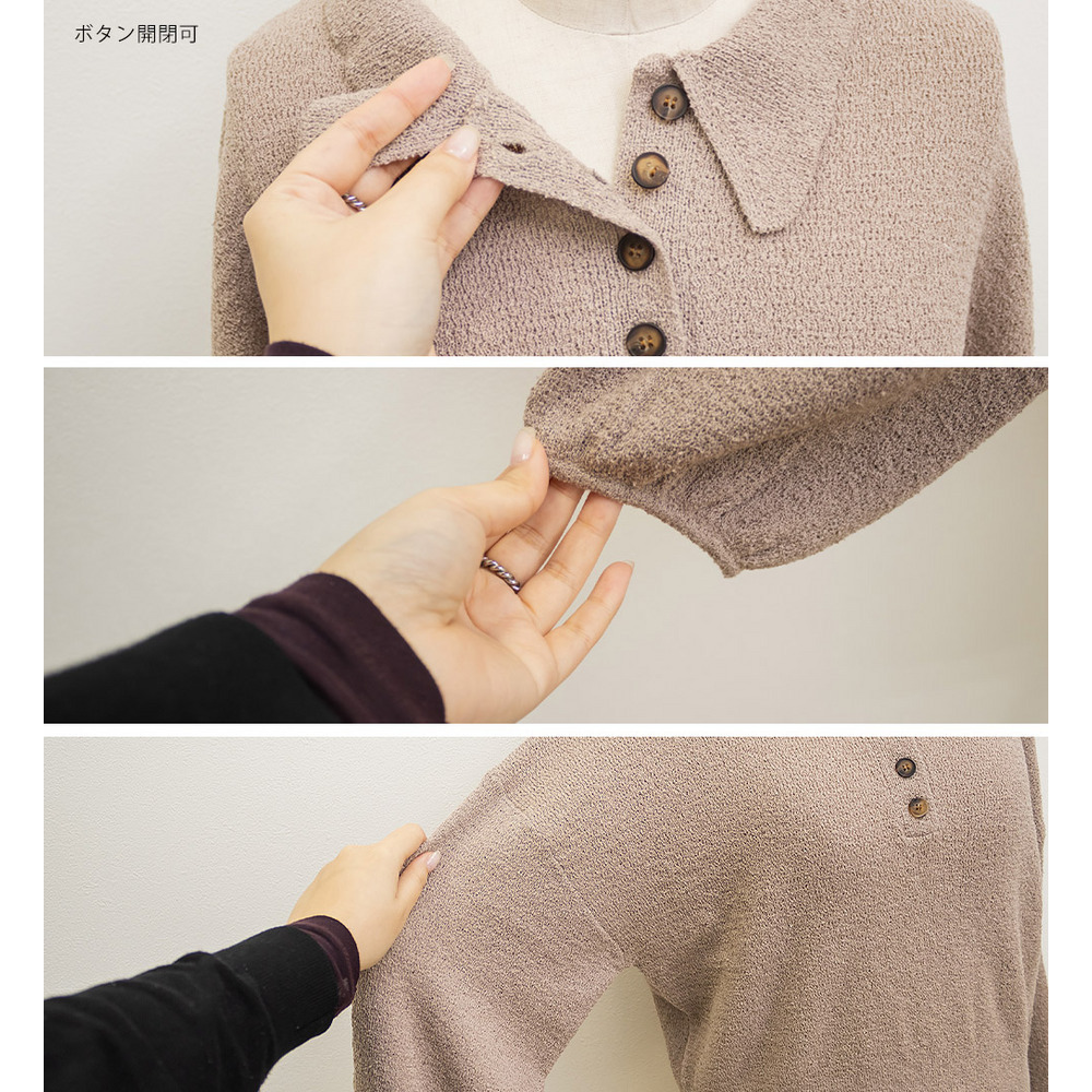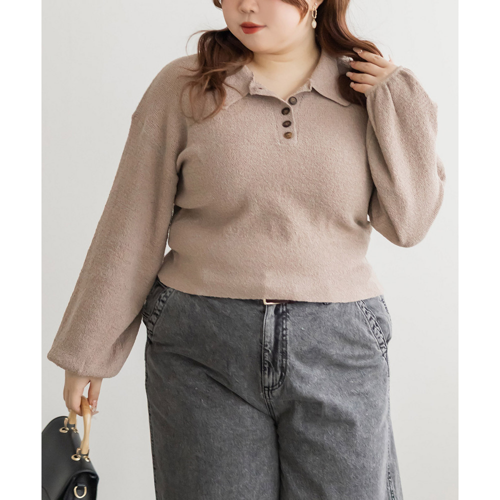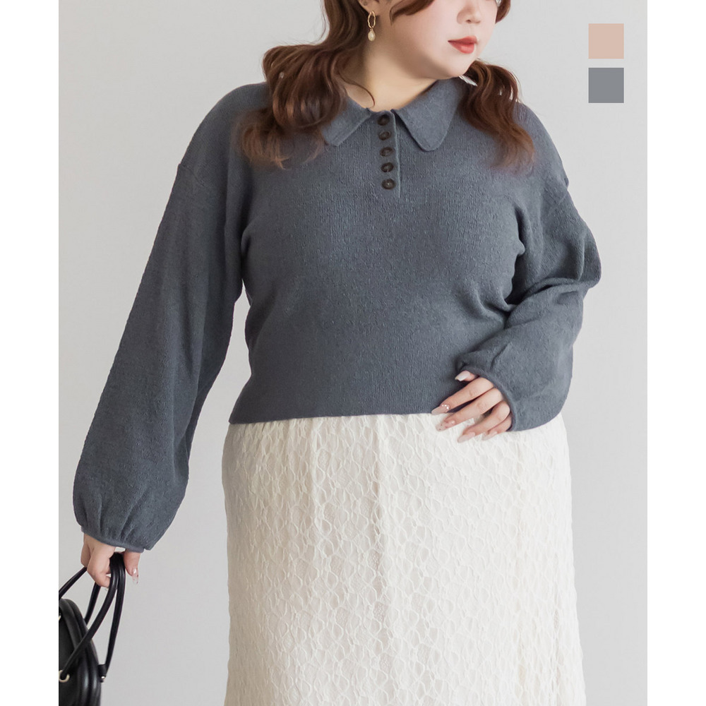 | 3Lサイズを着用して窮屈感のない楽な着心地でした。軽いニットで着やすく伸びもいいのでノンストレスです。襟付きのポロシャツのようなキレイめな雰囲気にもカジュアルにも合わせやすいです!ぽこぽこしたブークレニットで、ボディラインを拾いずらいのも嬉しいです♪コンパクトめなシルエットなのでアウターを重ねてもごわつかないのがうれしい。秋や春にも使える厚みなので長いシーズン着回しできそうです! |
