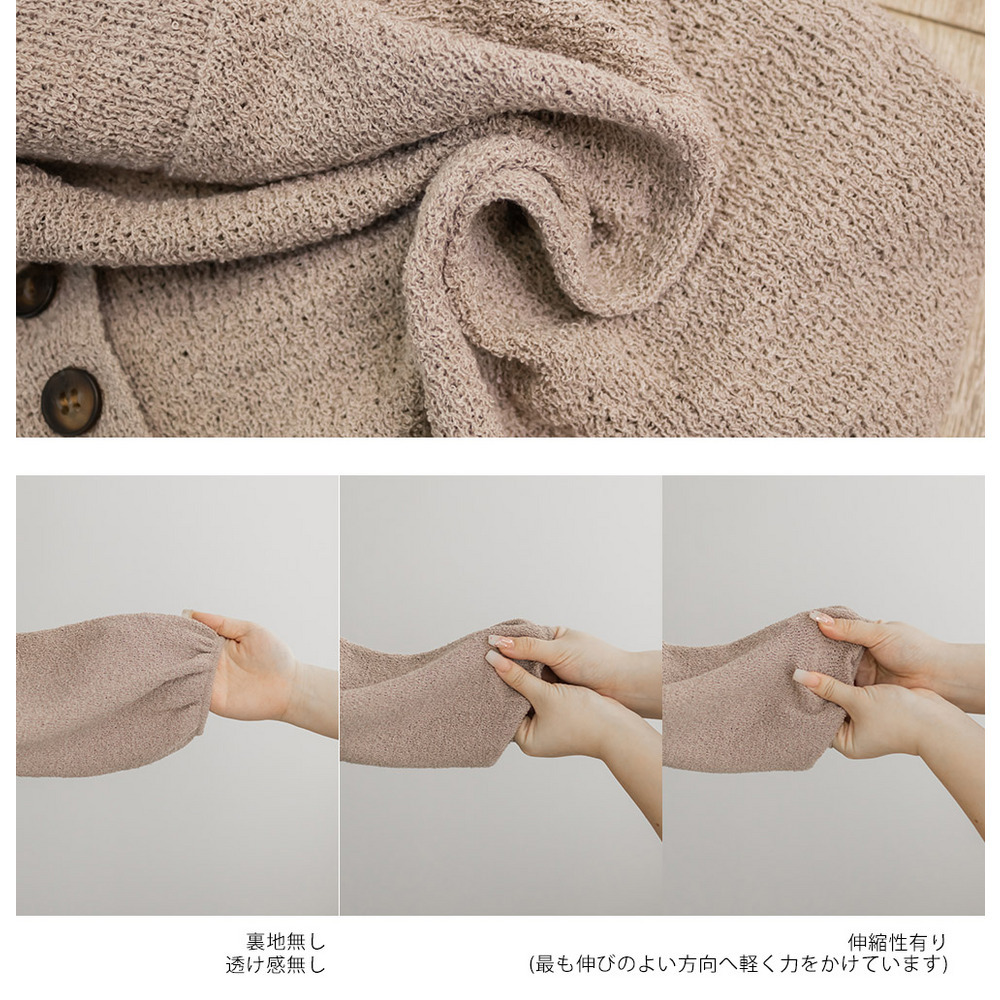 | 素材 | ■素材 ポリエステル100% ■裏地・透け感・伸縮性 裏地無し、透け感無し、伸縮性有り ■ポケット 無し ■生地感 程よく伸縮性があり、表面感のある柔らかなニット素材です。 |