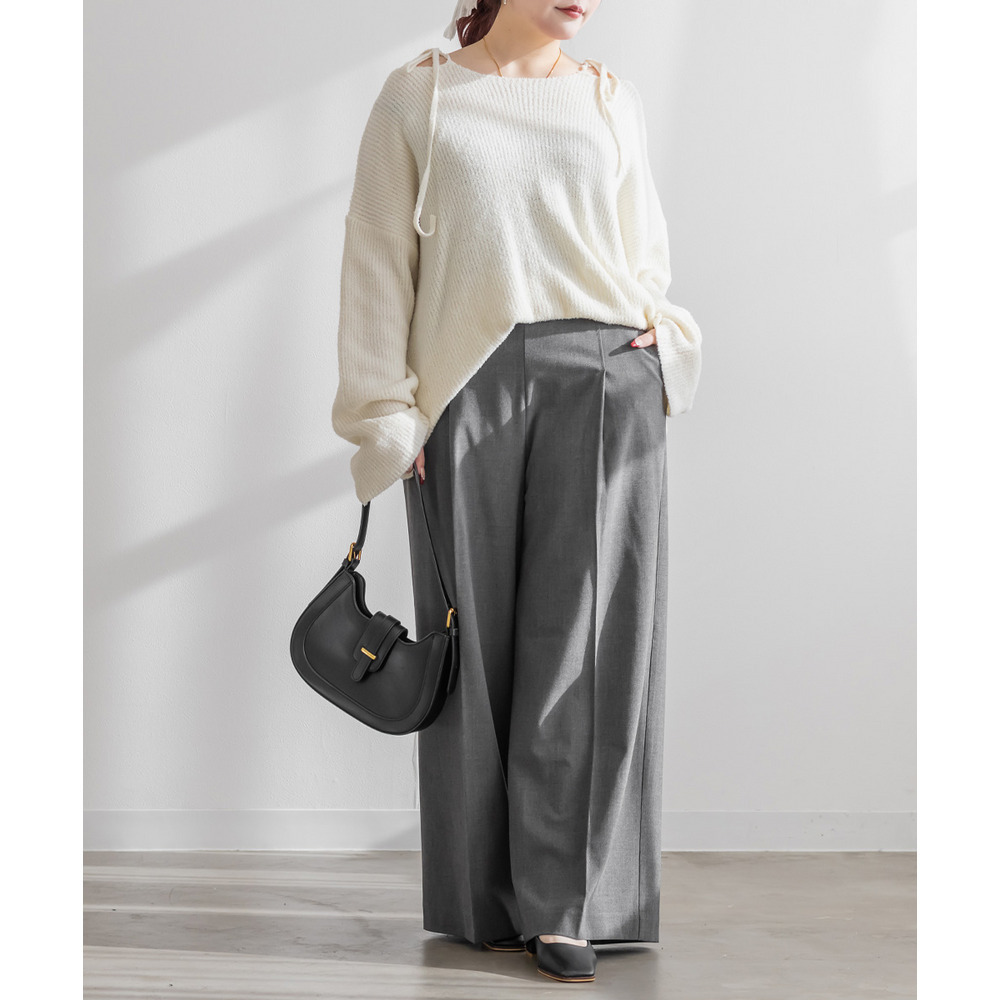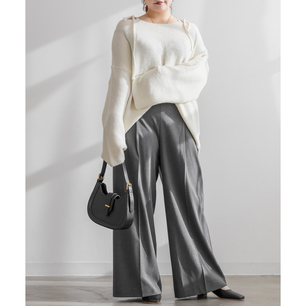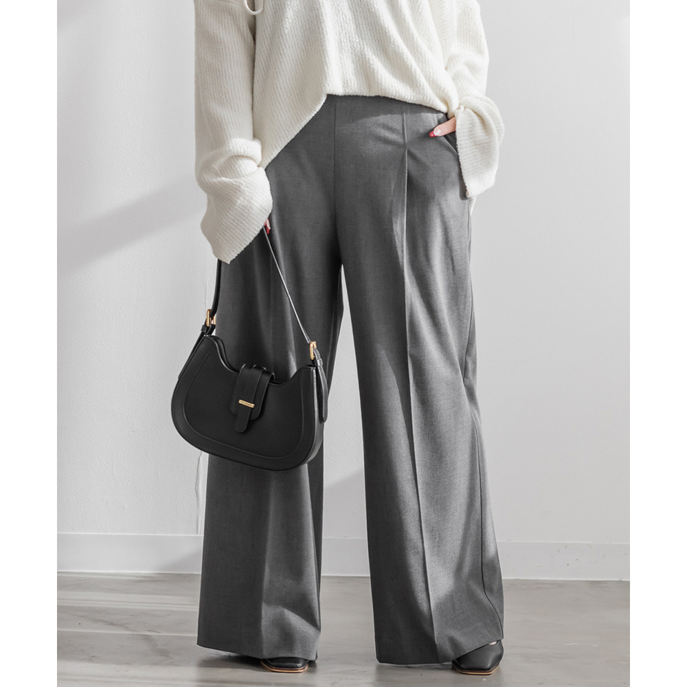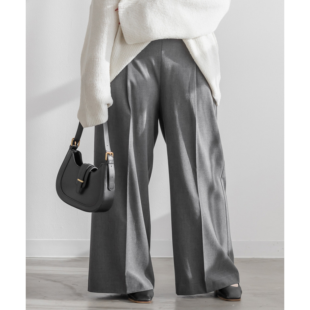 3Lサイズを着用して、楽な着心地でした!後ろはゴムなのと、脚のラインを拾わないワイドシルエットで、すっきりとした印象のアイテムです。フロントはゴールドボタンがついていてお腹周りもメリハリのある印象です◎どんなトップスとも相性良く着られて、コーデに困らないのが嬉しい!マリンっぽい雰囲気もあって、オールシーズン使える便利な1枚です!ちょっとキッチリ感を足したいシーンや通勤着としても良さそうです。トレンドに流されない王道パンツだから長いシーズン使えるのも嬉しいです!