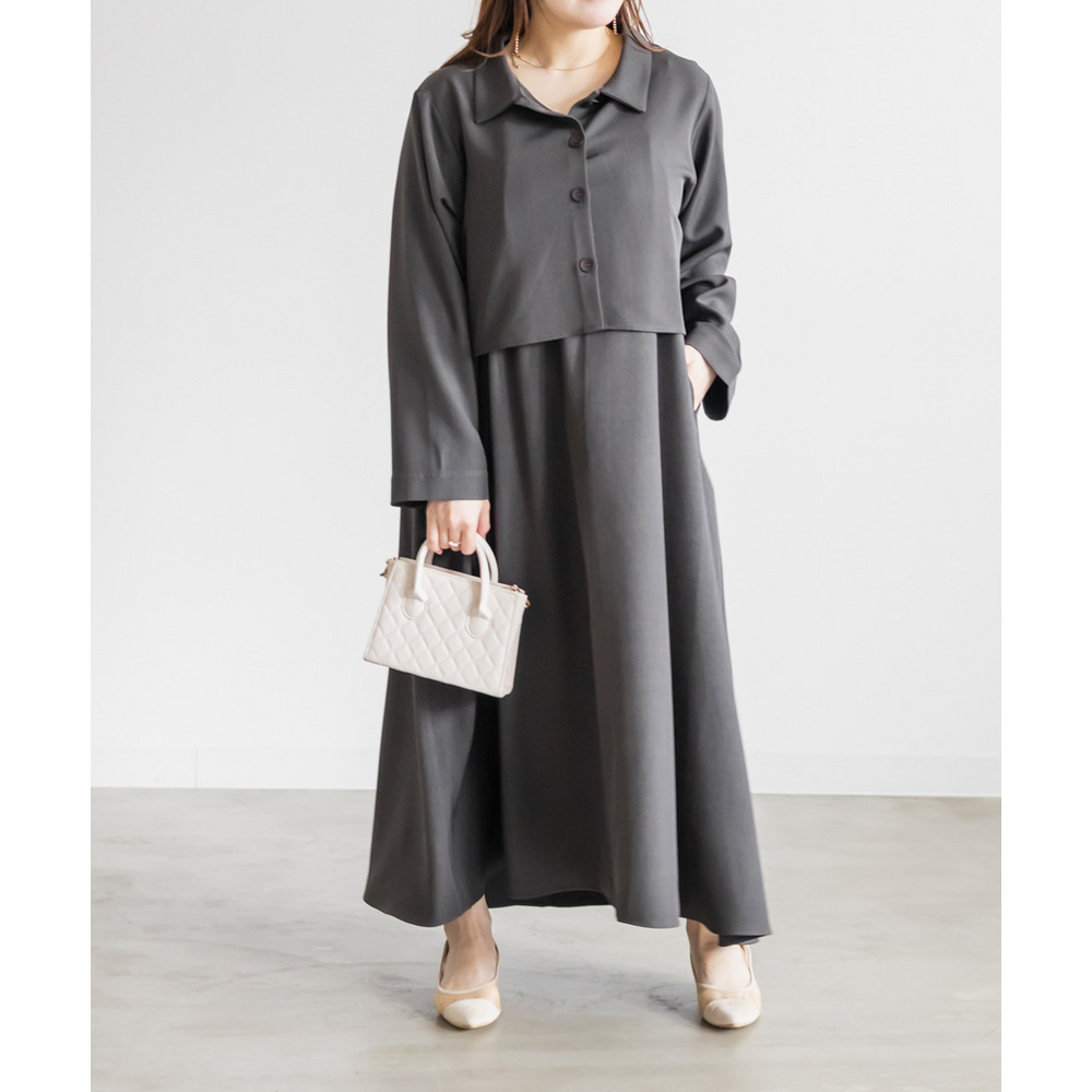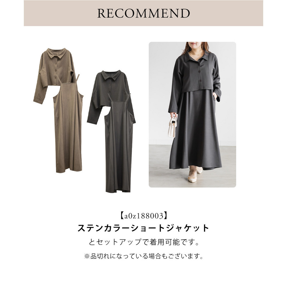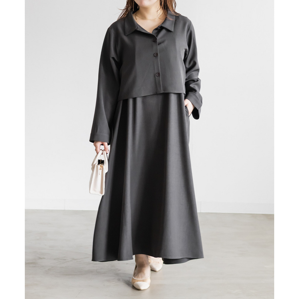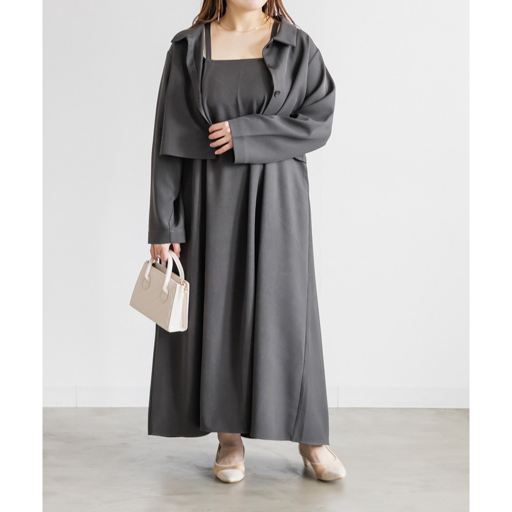 3Lサイズでぴったりでした!フレアに広がるシルエットで、切替が無いのですっきりと着られます◎ワンピースの生地にしっかり幅を持たせてあってボディラインを拾わないのが嬉しいです!生地が上品でお洒落なワンピースで、後ろは紐でサイズ感を調整できます。同じ生地のジャケットとセットアップで着られて洗練されたコーデになります!インナー次第でオールシーズン着回せるアイテムです!
