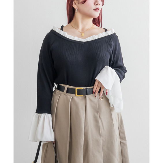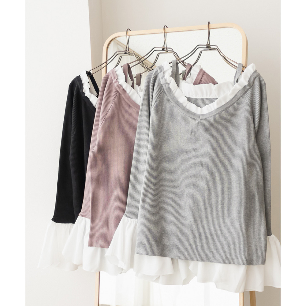 CLETTEオリジナルジョーゼットドッキングフリルニット