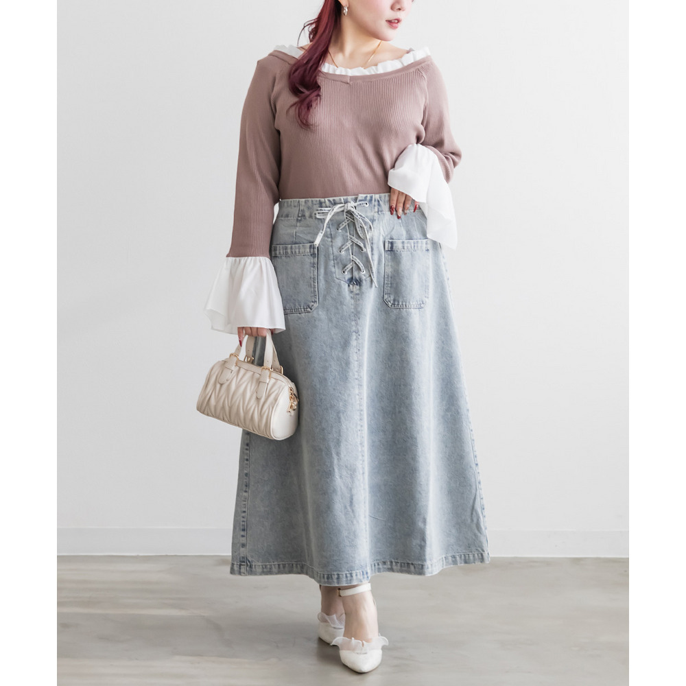 | 3Lを着て着用感はちょうどよく、ニット部分は伸びるので窮屈感なく楽に着られました。ジョーゼット生地のフリルをドッキングしたデザインが自然に視線を上に集めてくれて、顔回りを華やかに見せてくれます◎異素材切り替えでも甘くなりすぎず、大人っぽさが残るバランス感が◎ 1枚でスカート・パンツ合わせでも華やかに見えるのがポイントです♪きれいめにもカジュアルにも使いやすく、オンオフどちらにも活躍してくれるニットだと思いました。 |