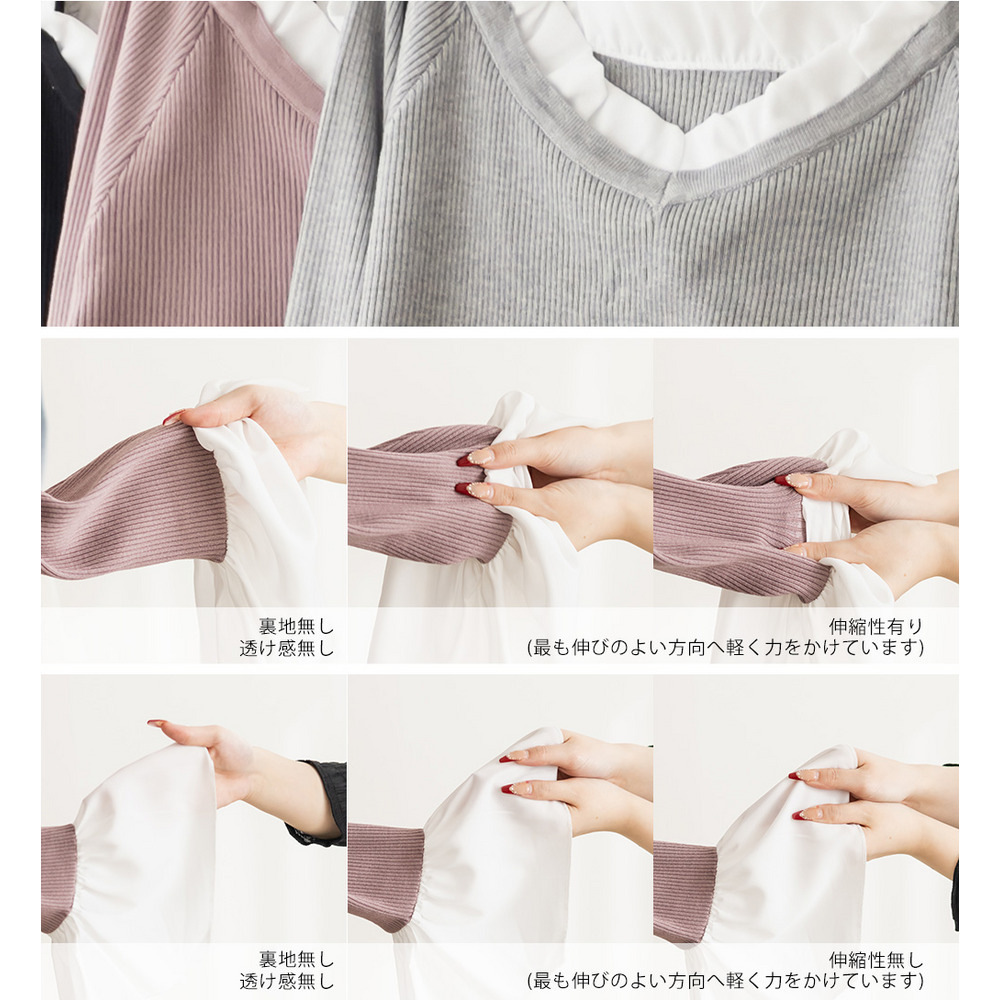 | 素材 | ■素材 【本体】レーヨン70%、麻30%、【別布】ポリエステル100% ■裏地・透け感・伸縮性 裏地無し、透け感無し、伸縮性有り ■ポケット 無し ■生地感 伸縮性のあるリブニット素材に落ち感のあるジョーゼット生地がドッキングされています。 |