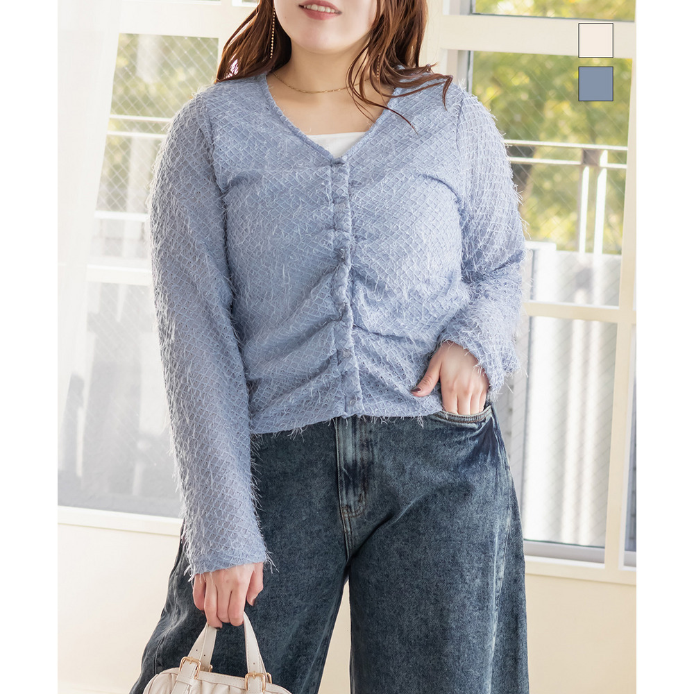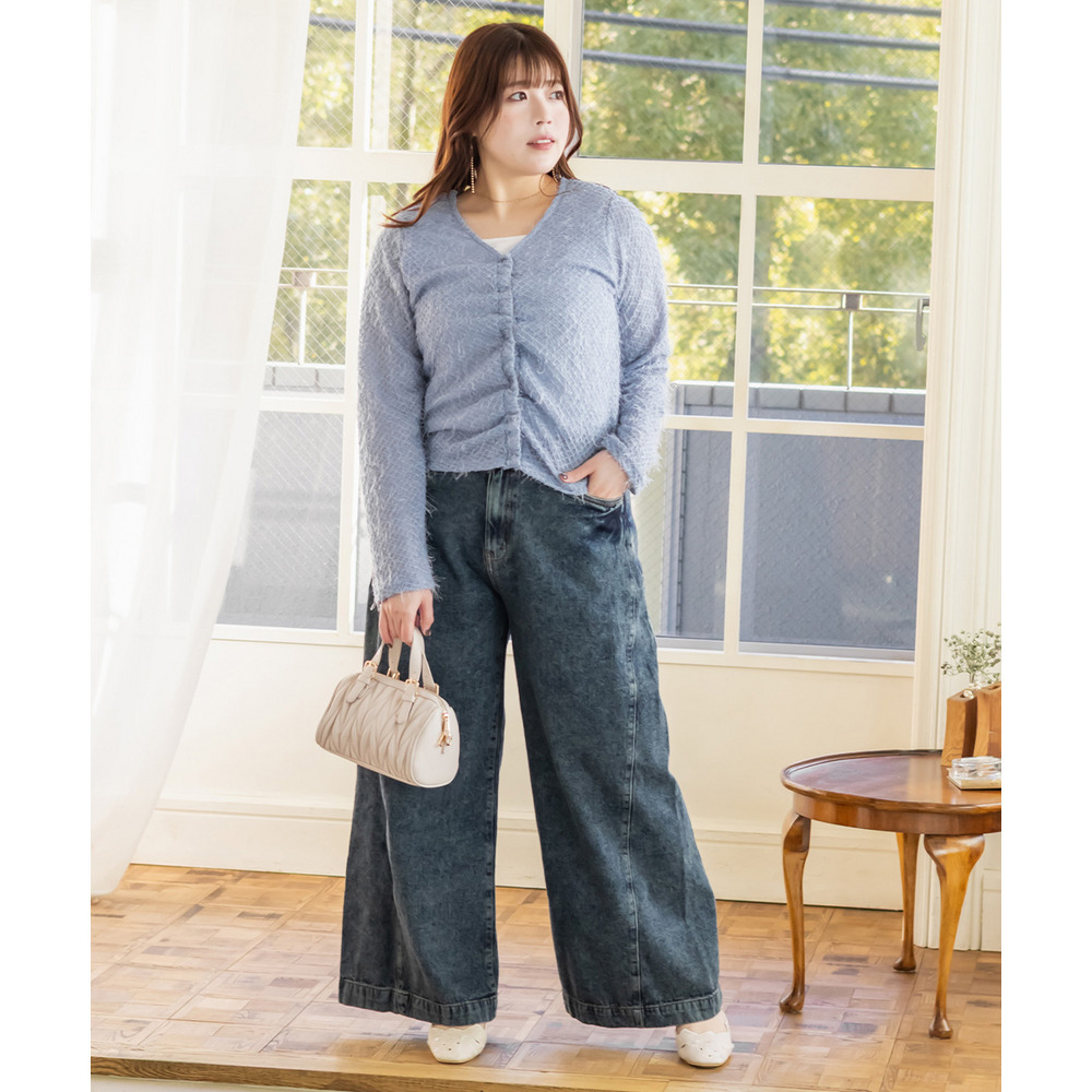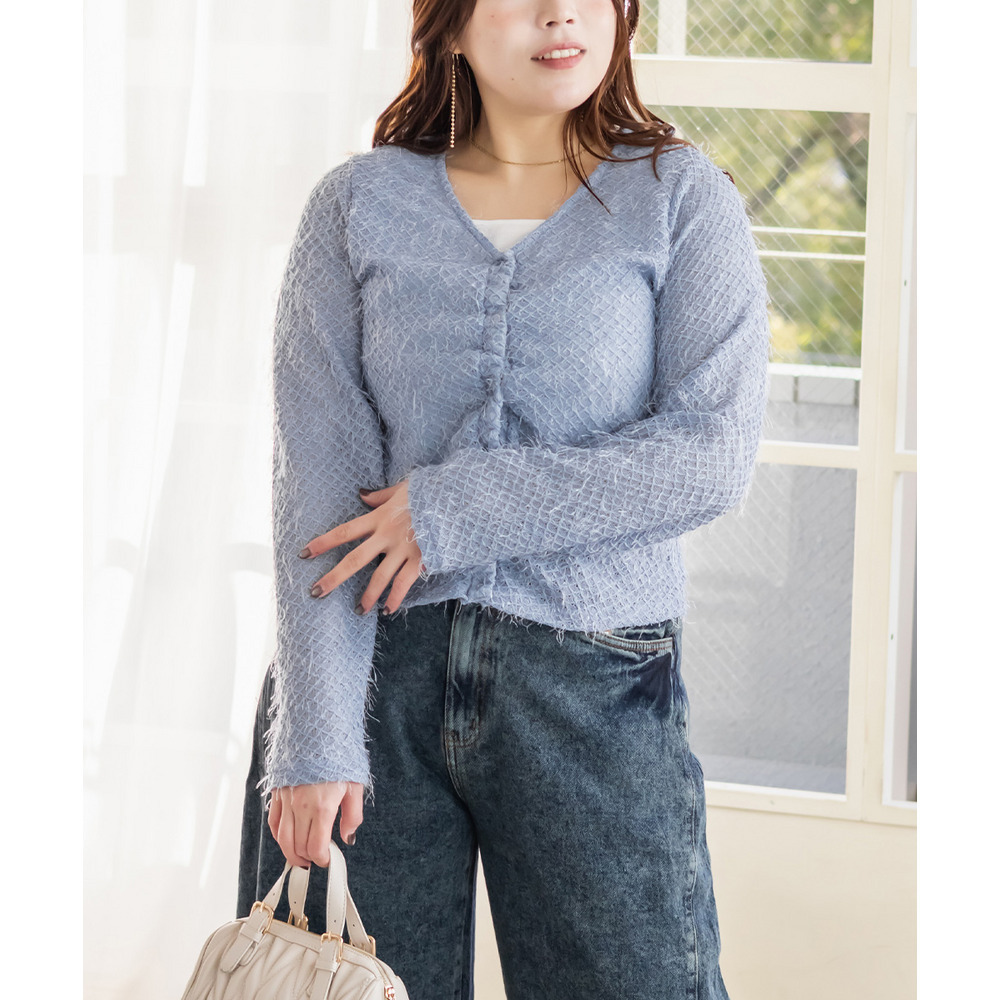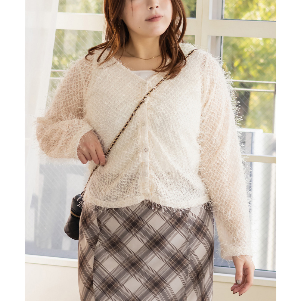 3Lサイズを着用しました。ピッタリのサイズ感でちょうどよい着心地でした。ゆったり着用したい場合は大きめサイズでもいいかもしれません◎フェザー調のニットソーはふわっと柔らかな印象です。セットで着るだけで簡単にレイヤードが完成して、コーデに立体感が出るのが嬉しいポイント! それぞれ単品でも使えるので、カーデは羽織りとして、タンクはインナーとして着回しも楽しめます♪ デイリーからちょっとしたお出かけまで幅広く活躍してくれそうなセットだと思いました。