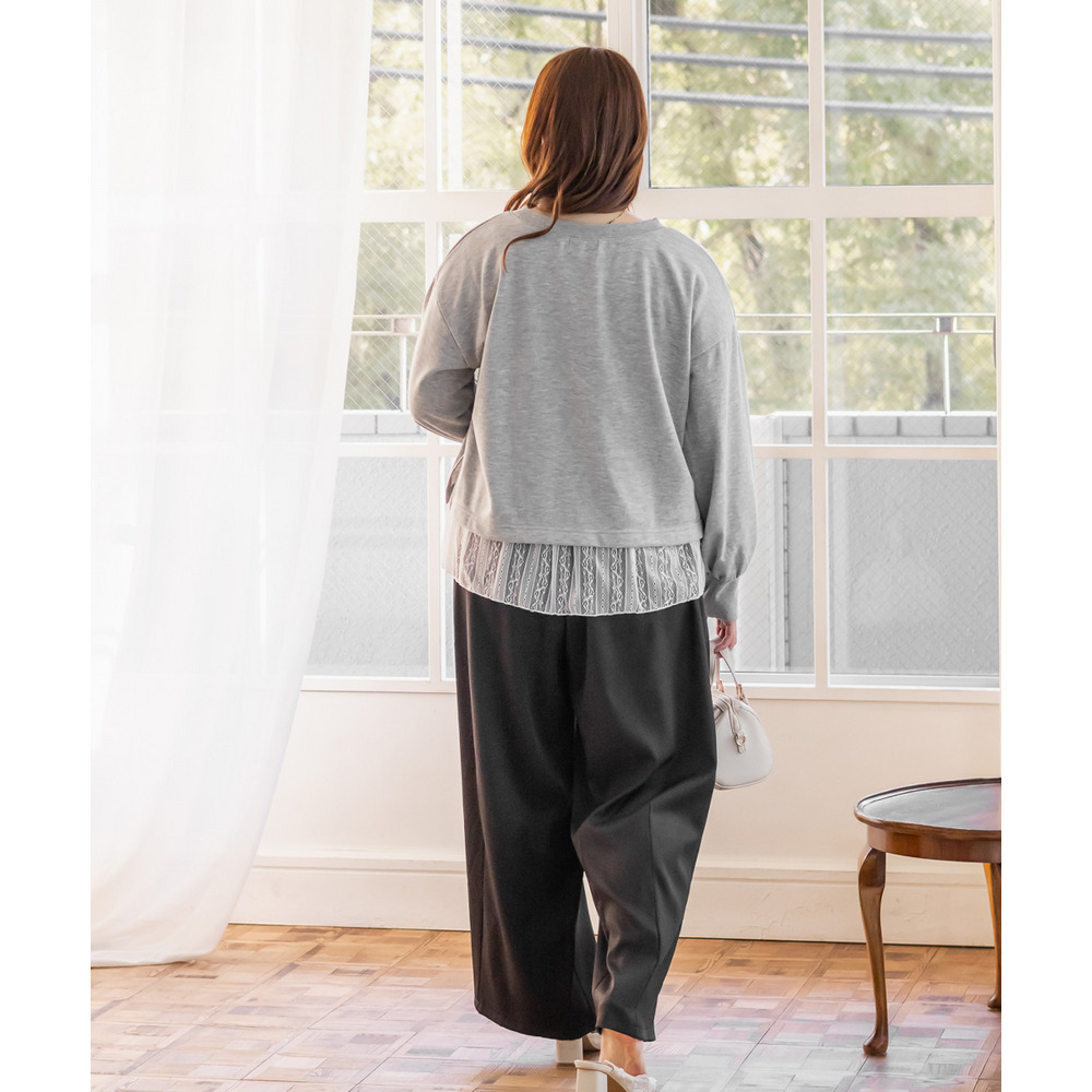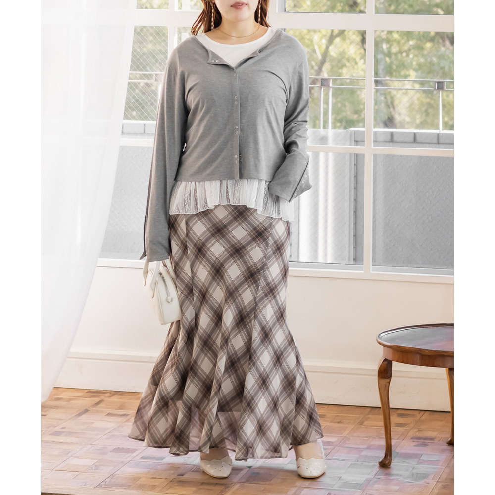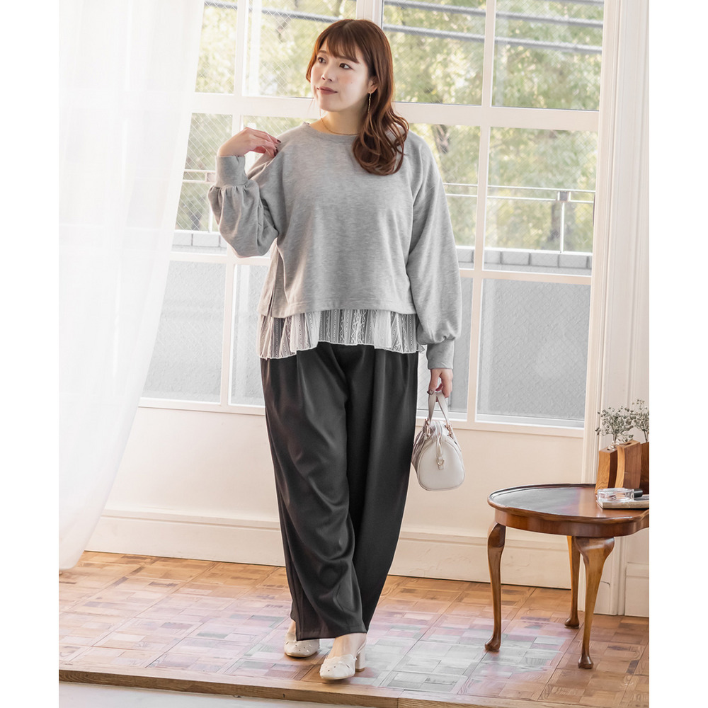 3Lサイズを着用しました!トップスはゆるっと着られるサイズ感で、インナーも程よくゆとりがある伸びのいいカットソー生地だったのでとってもラクな着心地です◎リラックスして着られました! トップスの着丈は長すぎないので、裾を出してきてもスタイルアップして見えました。2枚レイヤードするだけで抜け感が出て野暮ったくならず洗練された印象です。インナーは程よく丈があるので下お腹周りも自然にカバーしてくれすっきり見えします!ラフなのに女っぽさ満点の1枚で、お出かけにぴったり!もちろんトップス・インナーは別で着回しできるので、色々なスタイリングが楽しめます♪