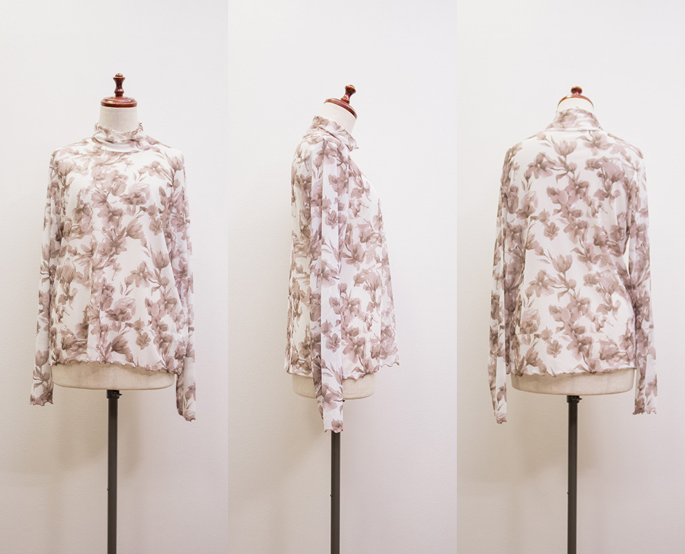 | 3Lサイズを着用して、ちょうどよい着心地でした♪伸縮性のある素材で、身体に馴染むようなフィット感がありながら、窮屈さを感じにくいのが嬉しいポイントです◎ シアー感があってレイヤードスタイルにもぴったりです!柔らかいぼかし花柄がフェミニンでコーデのアクセントになり、シンプルなボトムスと合わせるだけでこなれ感のある着こなしになります。 インナーとしてはもちろん、1枚で主役級のトップスとしても活躍するアイテムです! |