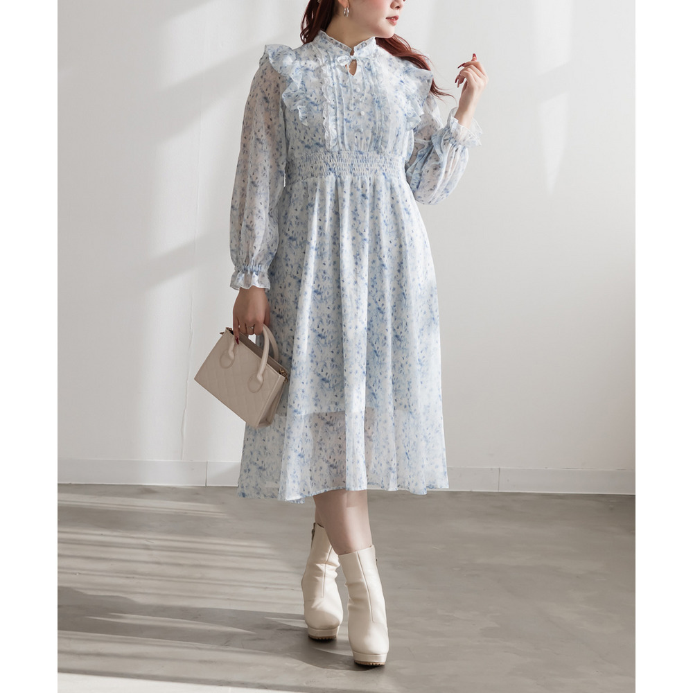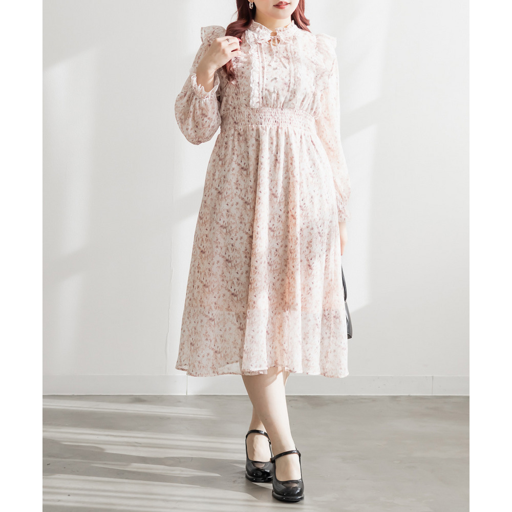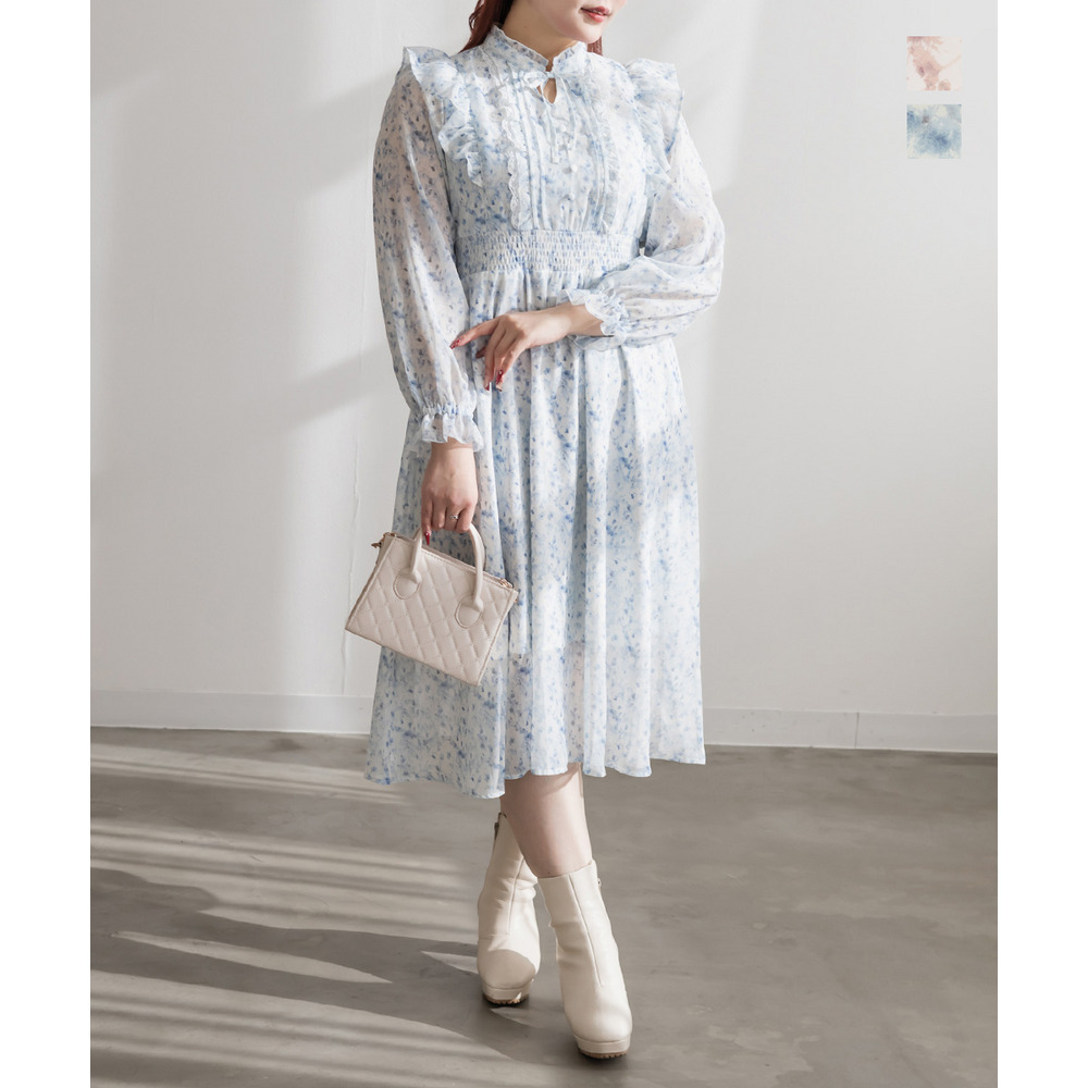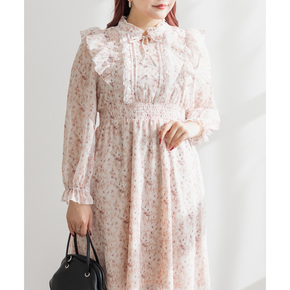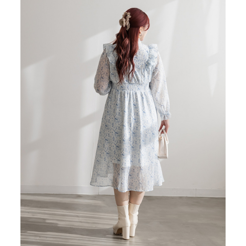 花柄フリルシフォンワンピース