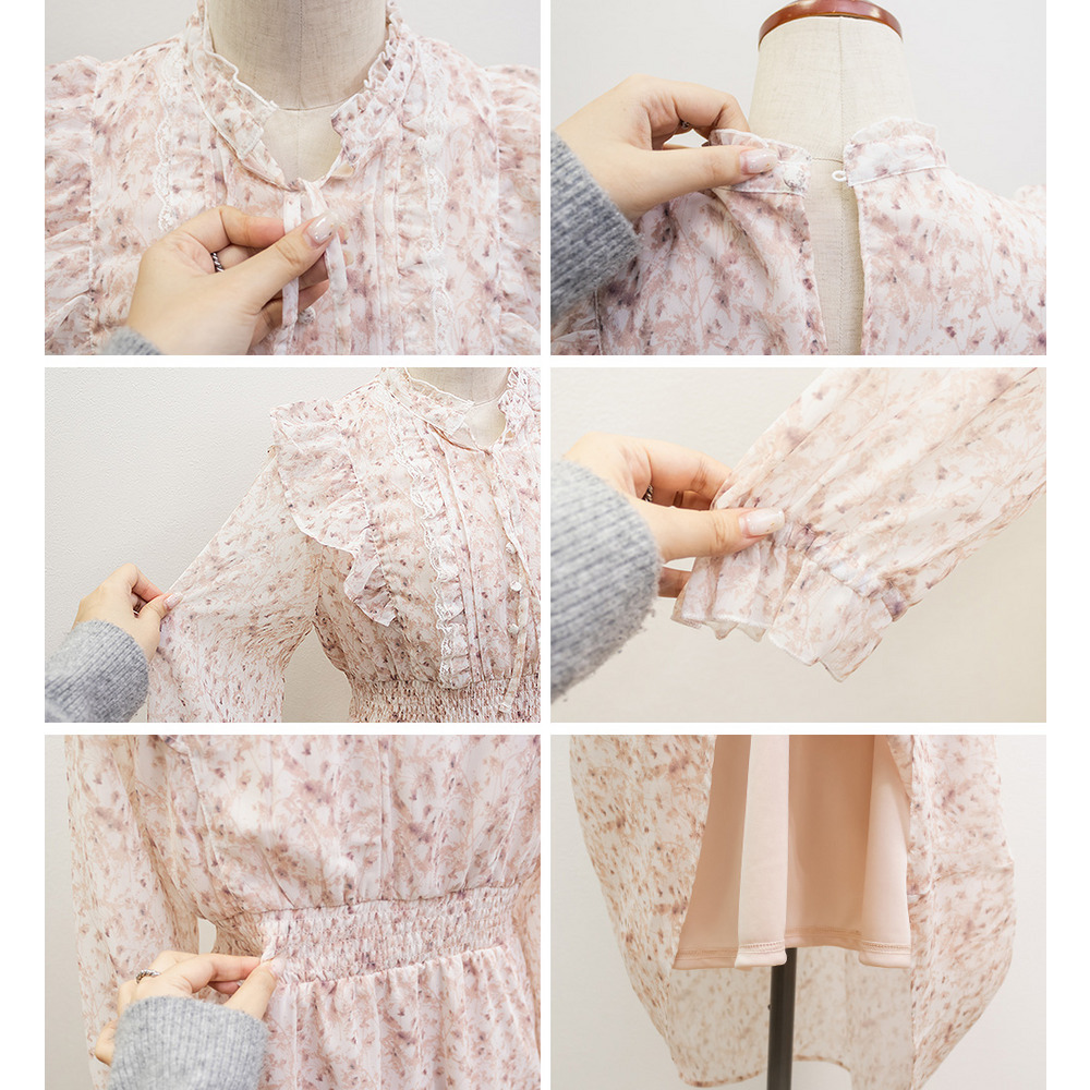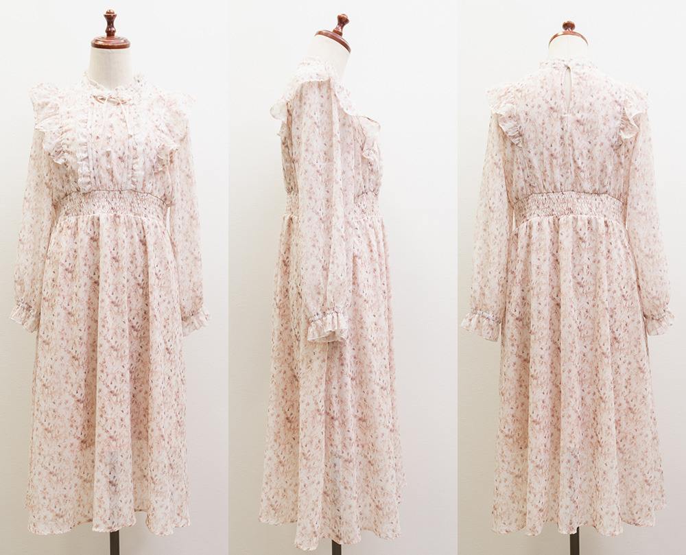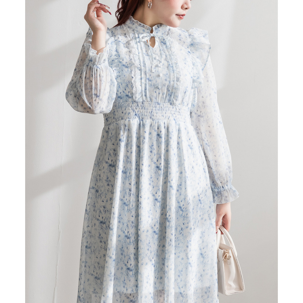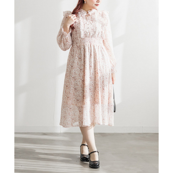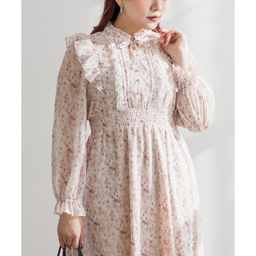 花柄フリルシフォンワンピース
