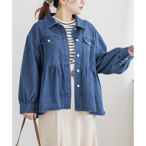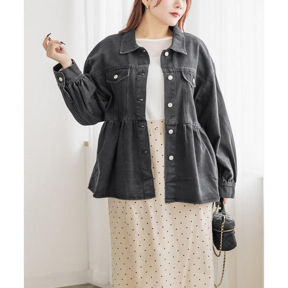 | 3Lサイズを着用しました。ほどよくゆとりのあるサイズ感で、全体的にちょうどいい着心地です。ハリのあるデニム素材ですがゆとりがあり楽に羽織れました♪ ペプラムシルエットなのでウエストまわりを自然にカバーしてくれて、前を閉じてもバランス良く着られます。丈感も腰回りまでカバーしてくれて、ワンピースやスカート・パンツとも合わせやすい印象でした。 |