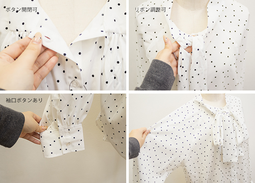 ドットボウタイブラウス