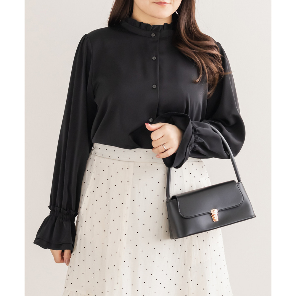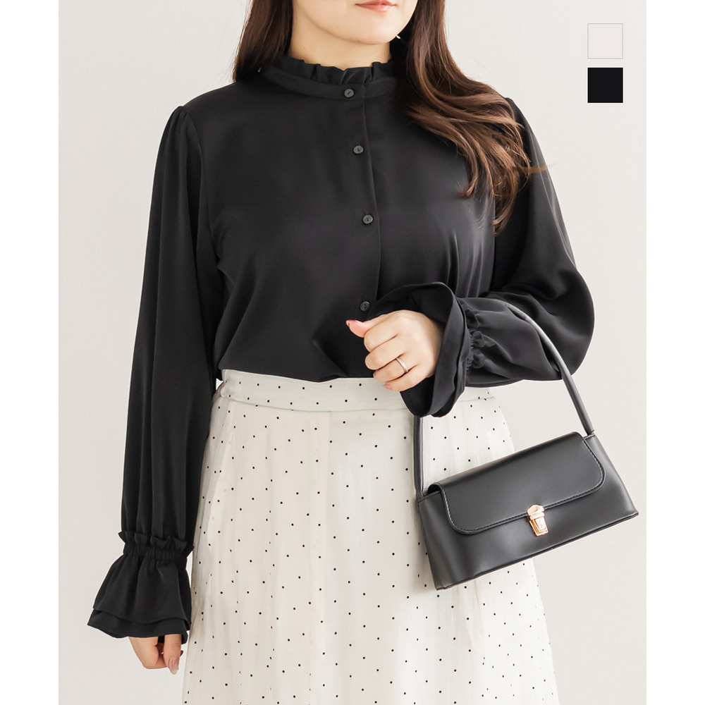 スタンドカラーフリルブラウス
