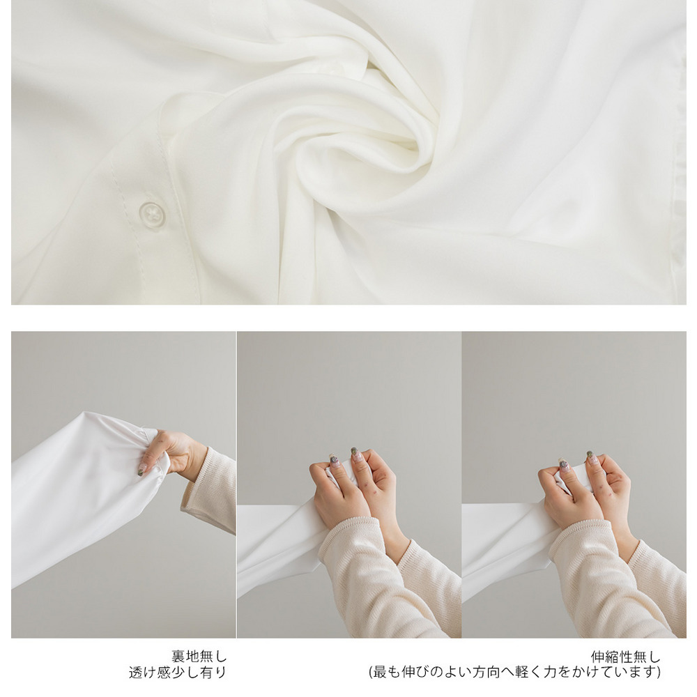 | 素材 | ■素材 ポリエステル100% ■裏地・透け感・伸縮性 裏地無し、透け感少し有り、伸縮性無し ■ポケット 無し ■生地感 さらっとしたキレイめな素材です。 |