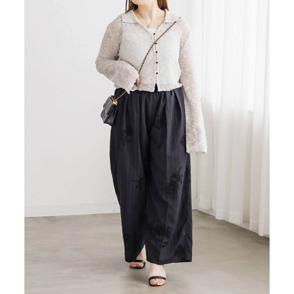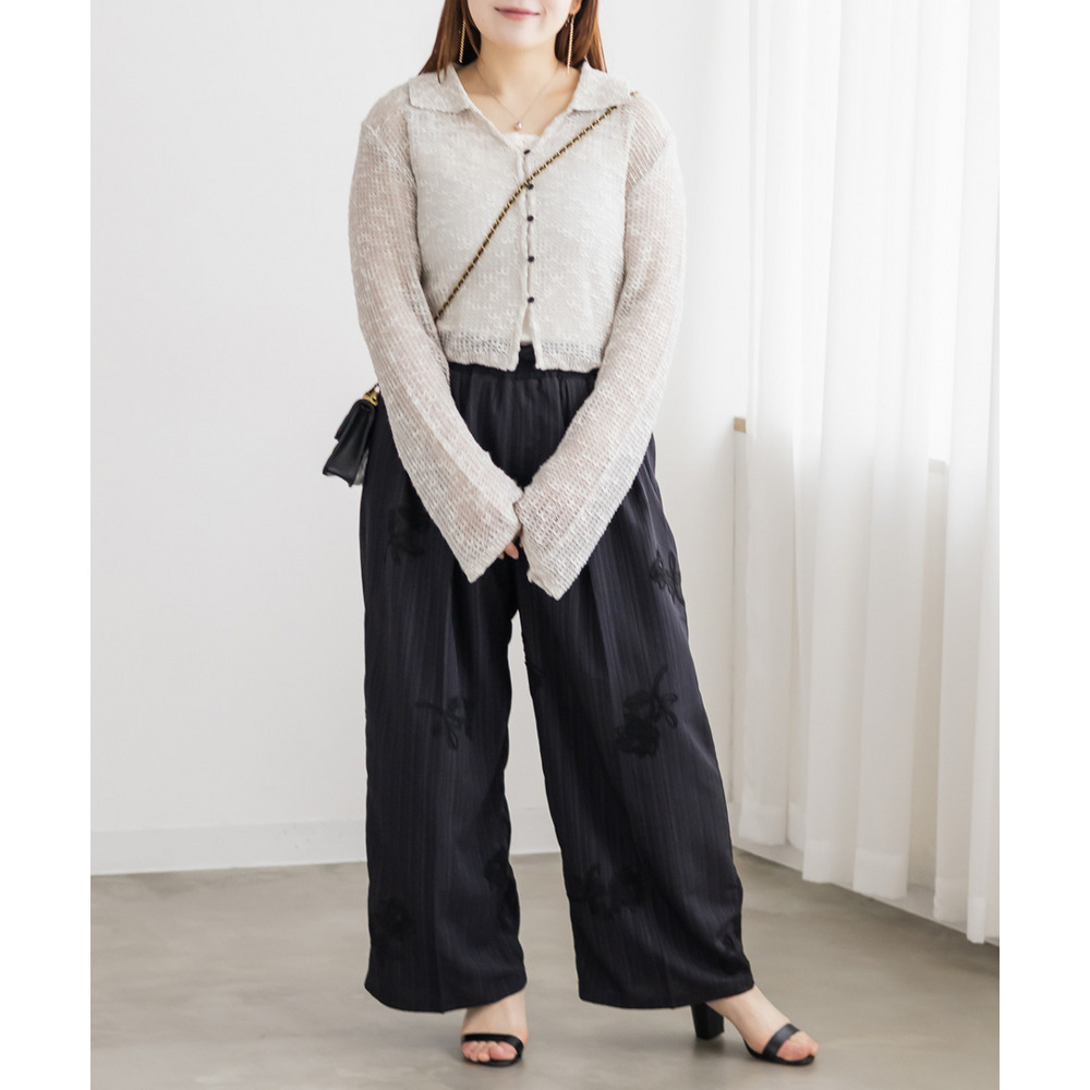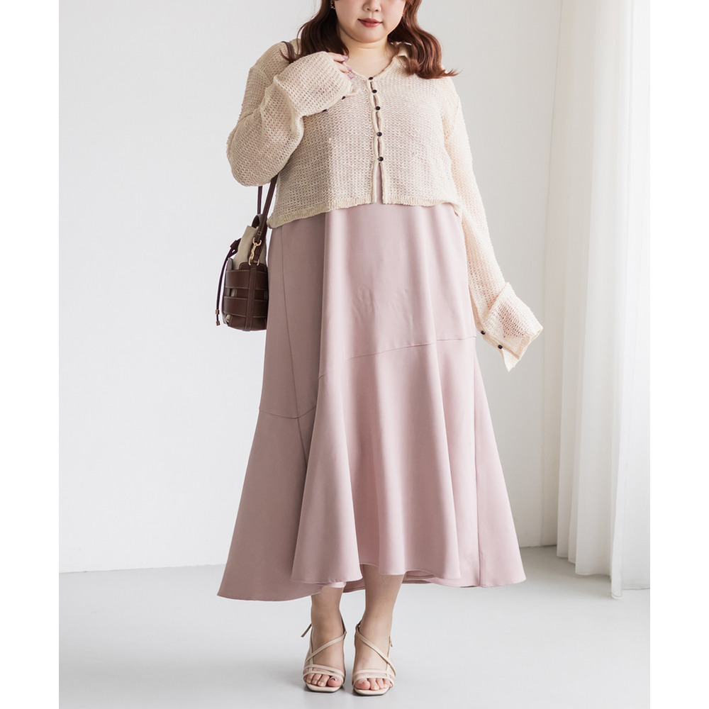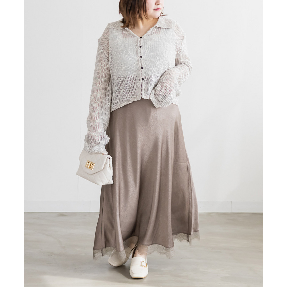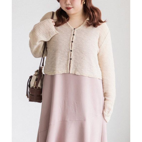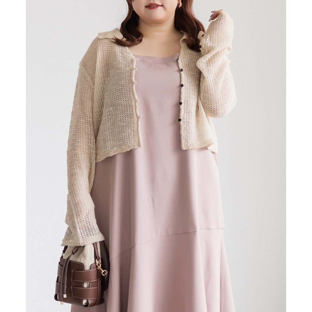 | 3Lサイズを着用しました。身幅や袖まわりに程よいゆとりがあり、全体的にちょうどいい着心地でした。軽やかなシアー素材でさらっと羽織れるので、季節の変わり目にもぴったりです♪ 襟付きデザインなのでカーディガンでもきちんと感があり、カジュアルすぎず女性らしい印象で着られました。程よい透け感があるのでインナーとのレイヤードも楽しめて、シンプルなコーデにさっと羽織るだけで抜け感のあるスタイリングに仕上がります◎ パンツ合わせで大人カジュアルに、スカート合わせでフェミニンに着るのもかわいくておすすめです。 |