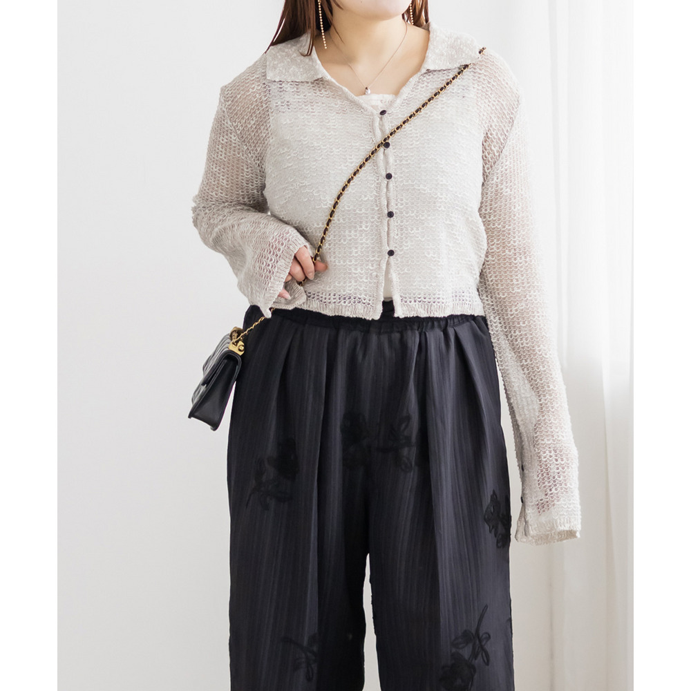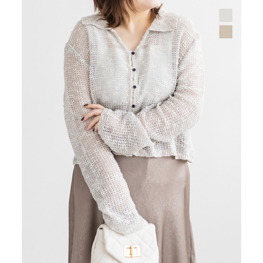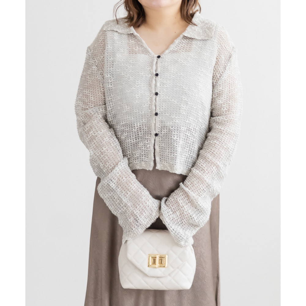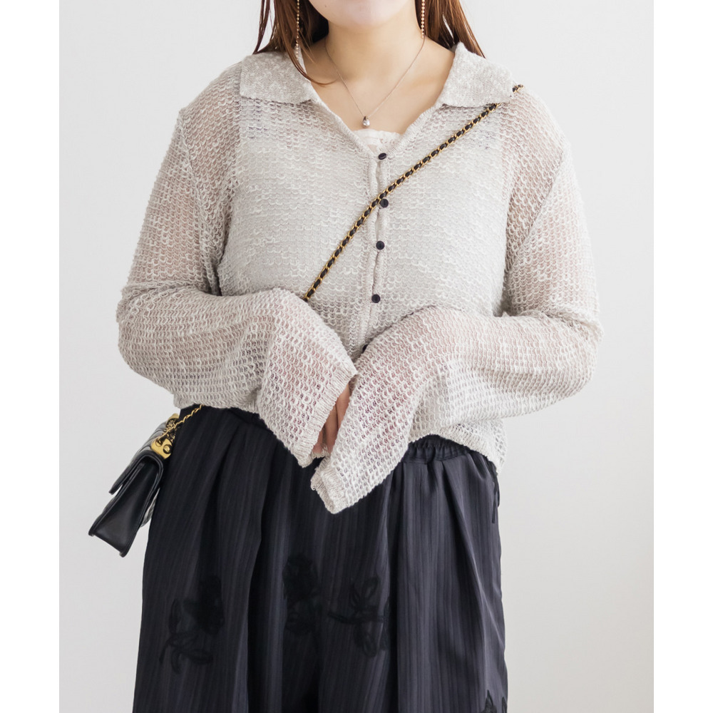 襟付きシアーカーディガン