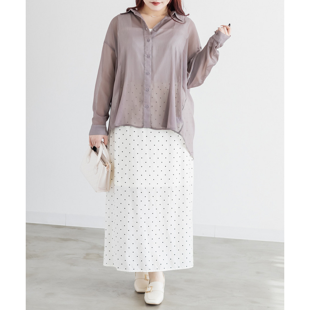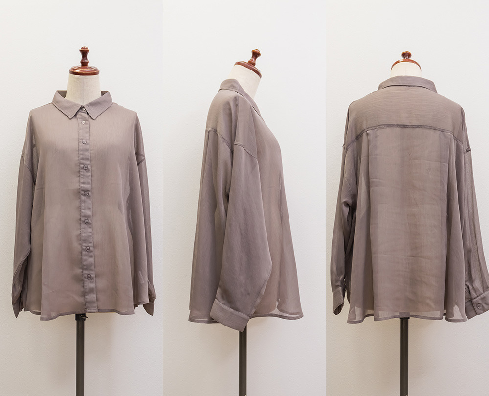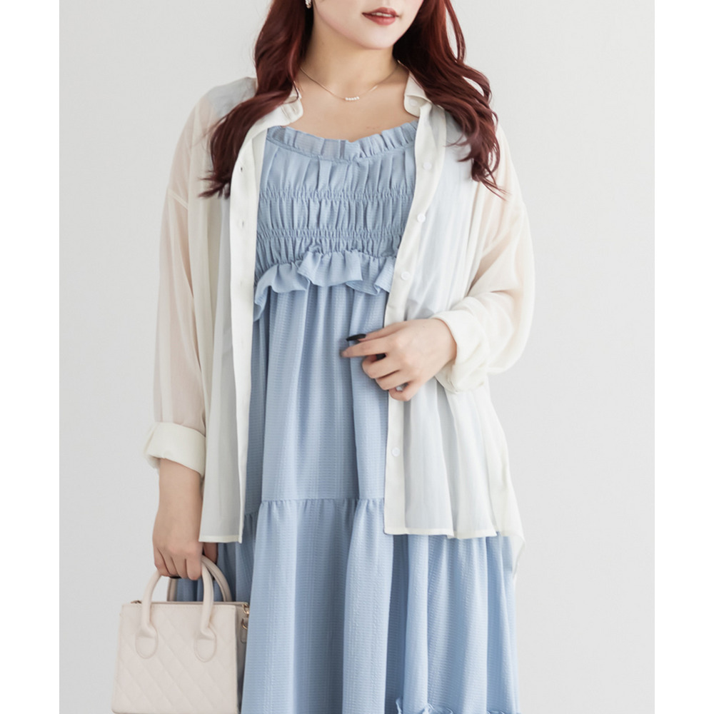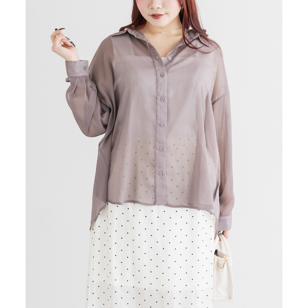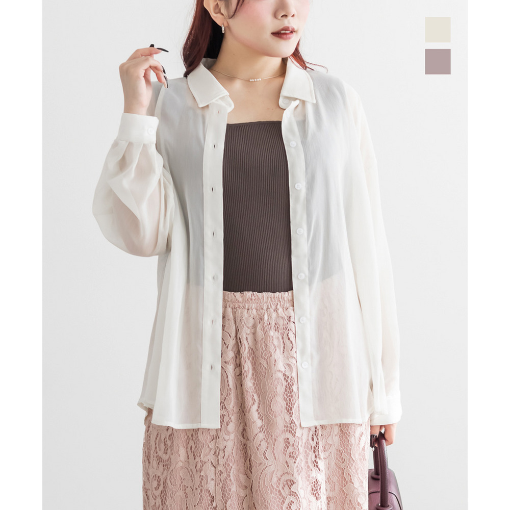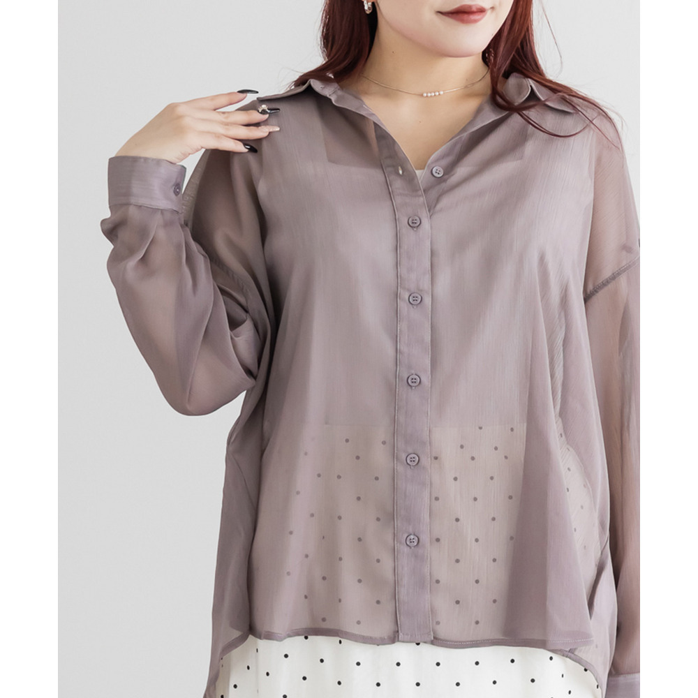 | 3Lサイズを着用して、ちょうどよくゆとりを持って着られました。さらっと羽織れるシアーシャツは、抜け感のある軽やかなデザイン◎ オーバーサイズシルエットで気になる体のラインを拾わず、こなれた印象になります。 袖をまくって着てもスッキリ見えておしゃれ♪ シンプルなデザインなので、タンクトップやキャミソールと合わせたレイヤードコーデにもぴったり! デイリーからお出かけまで幅広く活躍する一枚です。 |