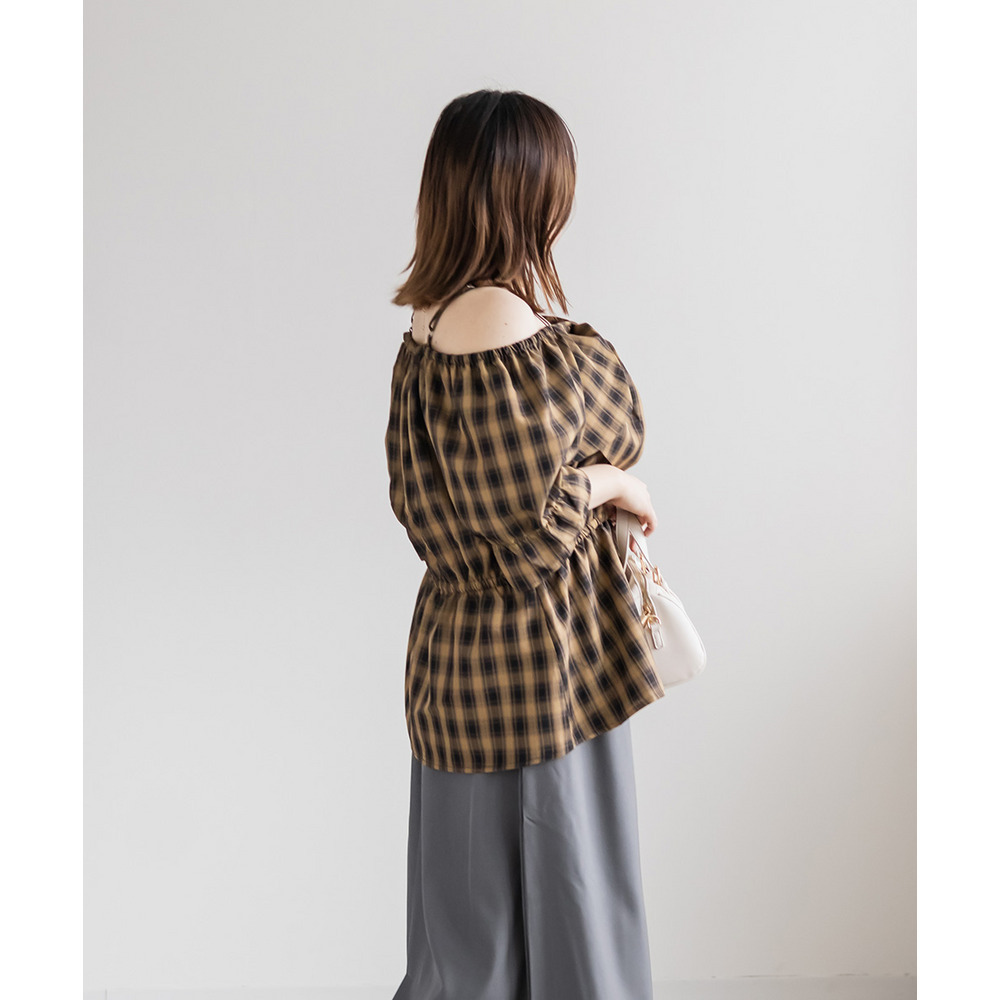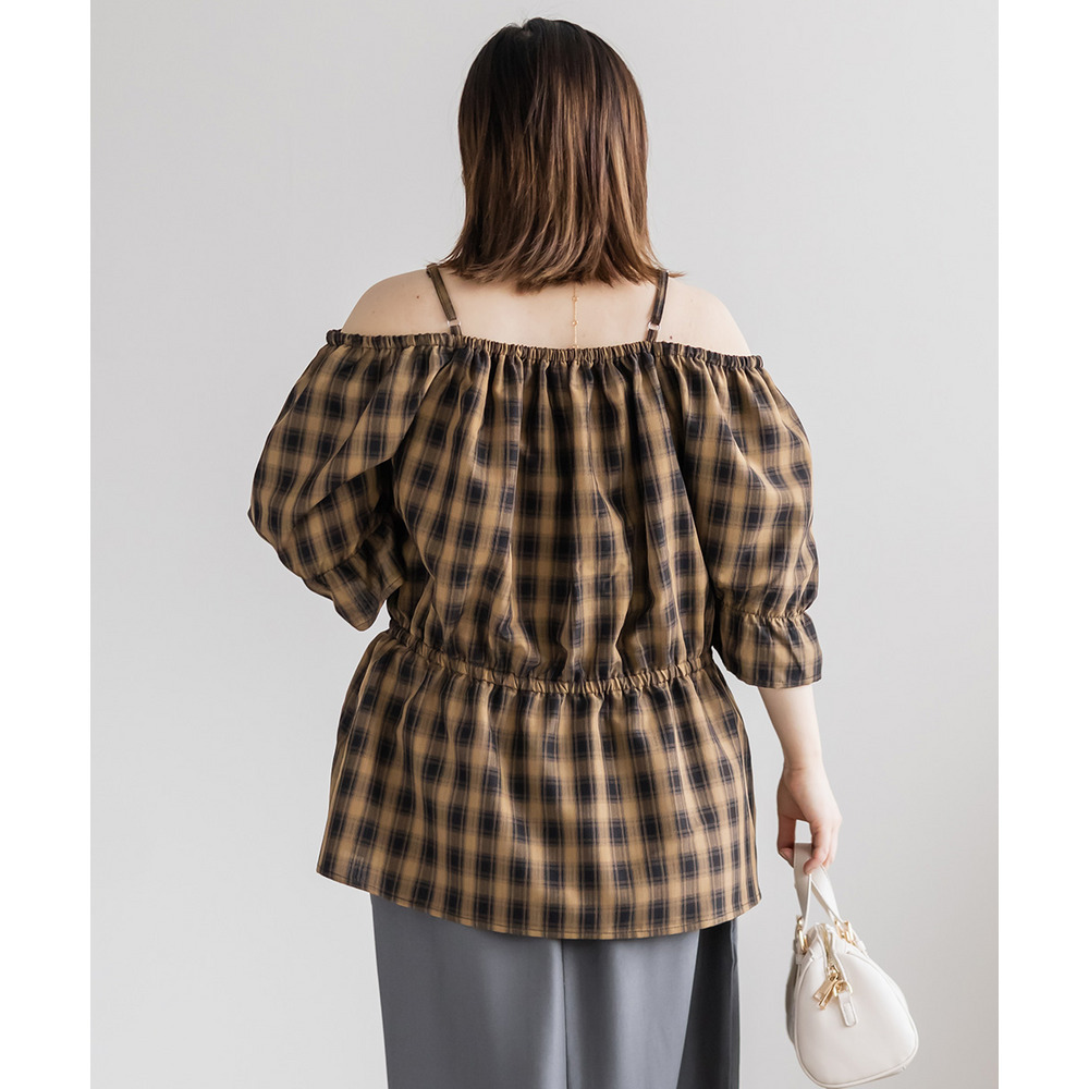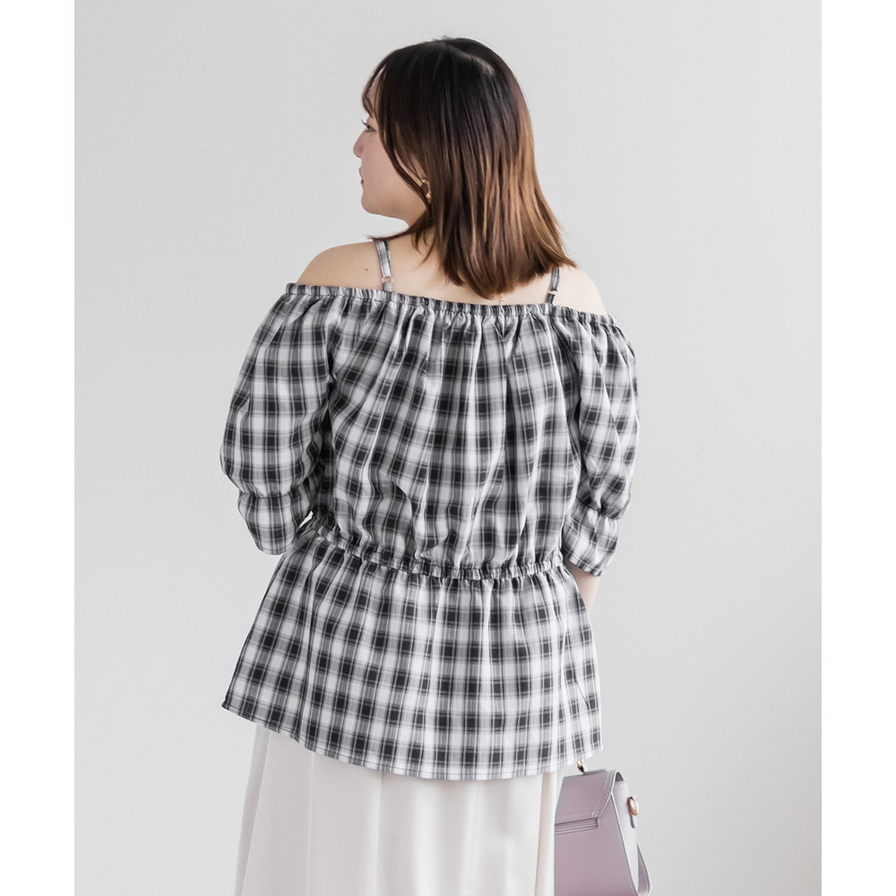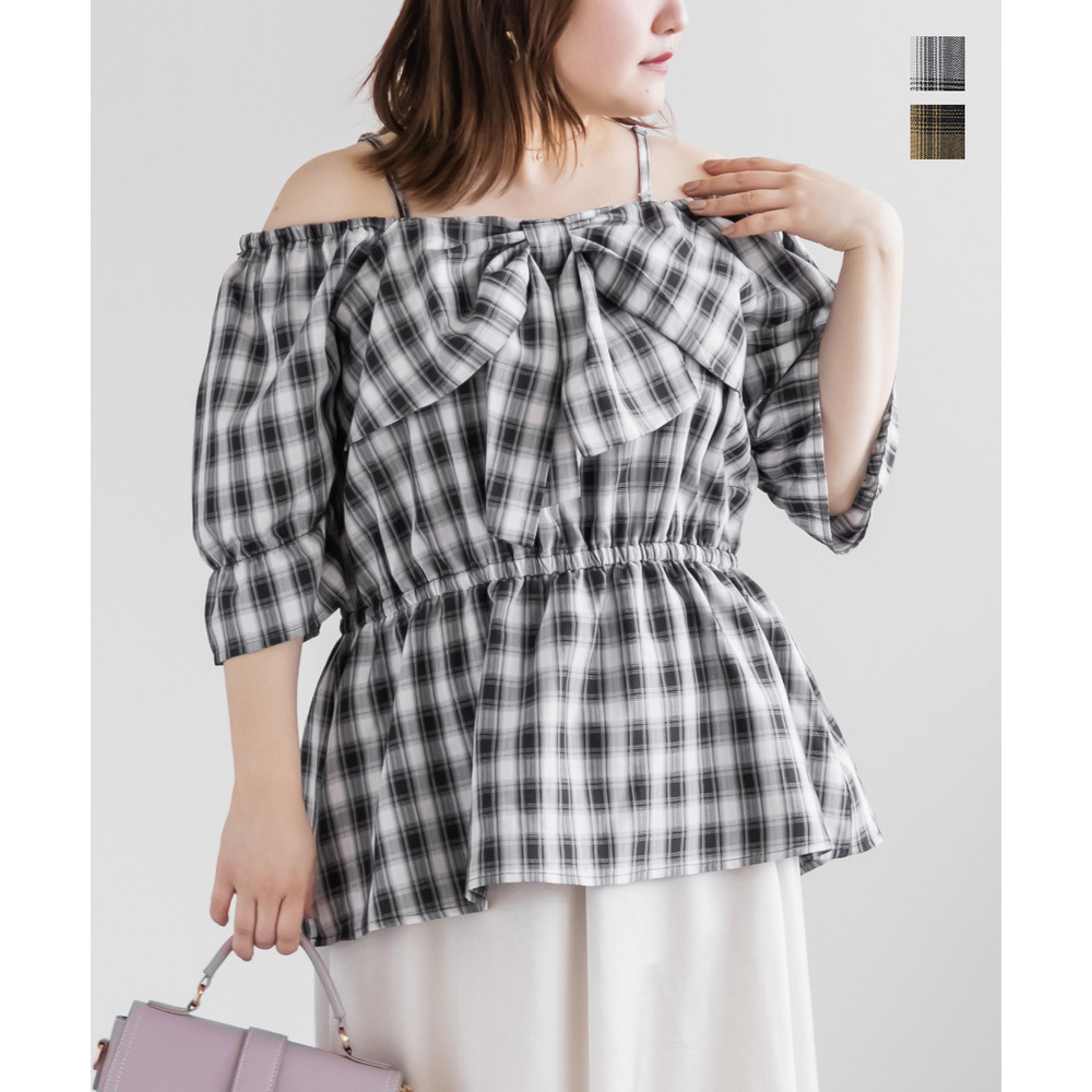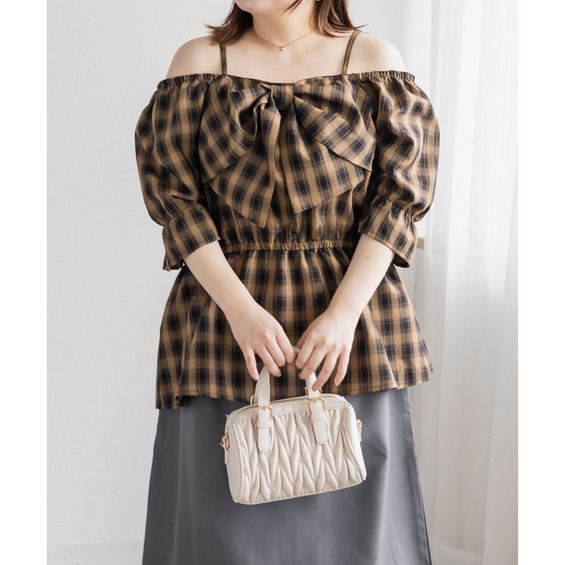 3Lを着てちょうどいい着心地でした。肩紐がついていてオフショルでもずり落ちる心配はないです◎チェック柄と大きめのリボンが可愛くて、トレンド感もたっぷりなデザインです!オフショルなのでデコルテや顔回りがすっきりした印象なって、着やせも抜群です。ウエストからふわっと広がるペプラムデザインになっていて、お腹周りもしっかりカバーしてくれます♪