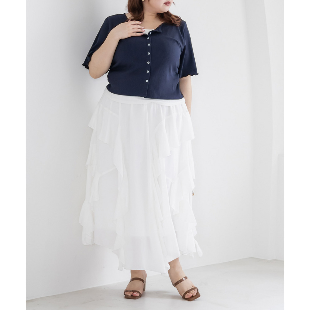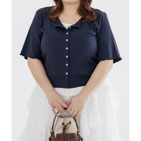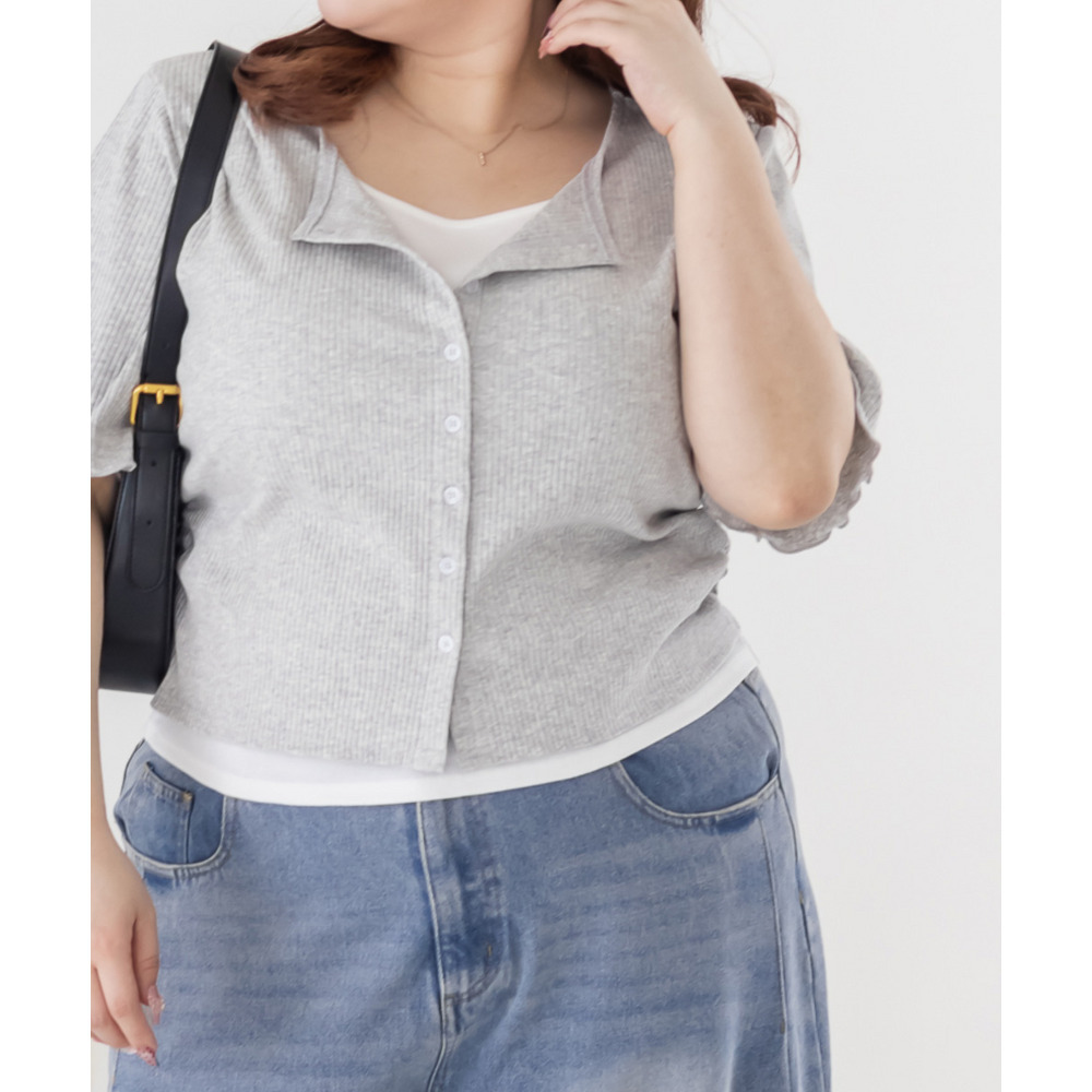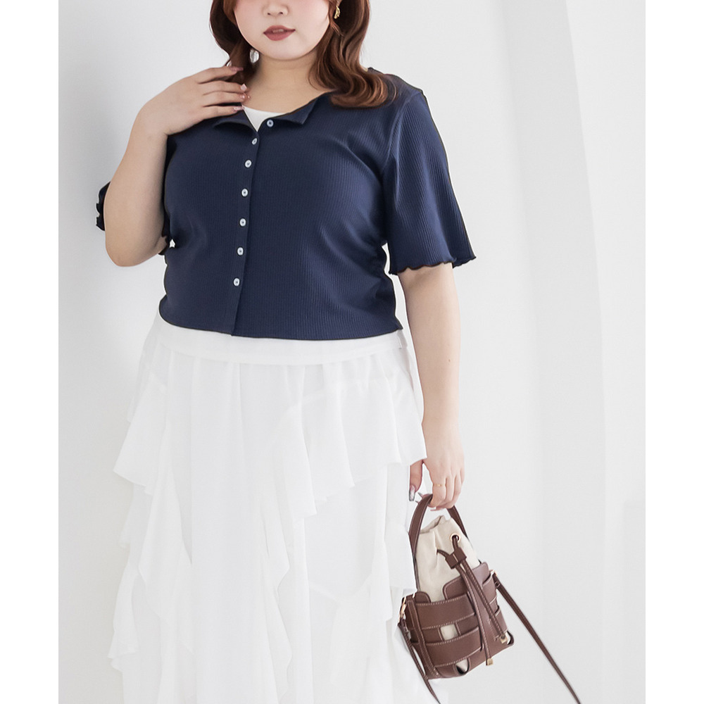 | 3Lサイズを着用してちょうどいいサイズ感でした!レイヤード風のデザインで1枚でしっかりコーデが決まるのが嬉しいです◎リブ素材で程よくフィットしつつも窮屈感はなく、着心地もとても楽でした♪すっきり見えするシルエットで、インでもアウトでもバランスよく着られるのがポイントです! |