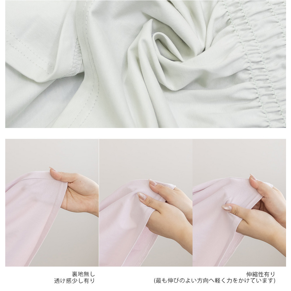| 素材 | ■素材 綿70%、ポリエステル24%、ポリウレタン6% ■裏地・透け感・伸縮性 裏地無し、透け感無し、伸縮性わずかに有り ■ポケット 無し ■生地感 程よくハリのある綺麗めな印象の伸縮性のあるカットソー素材。 |