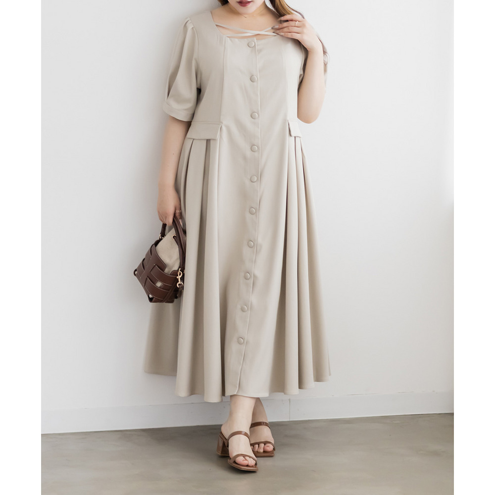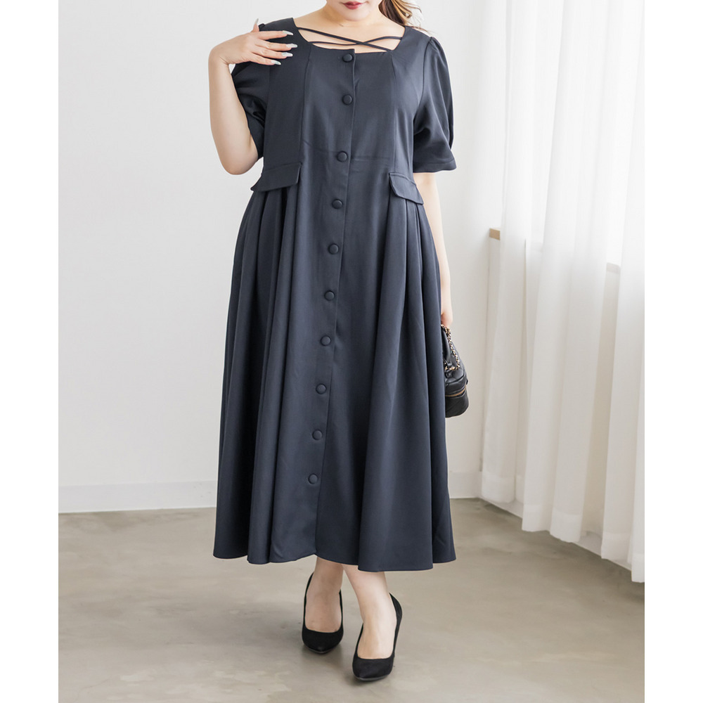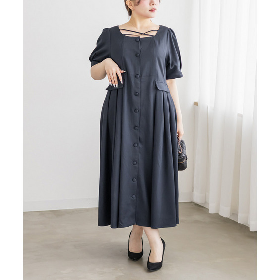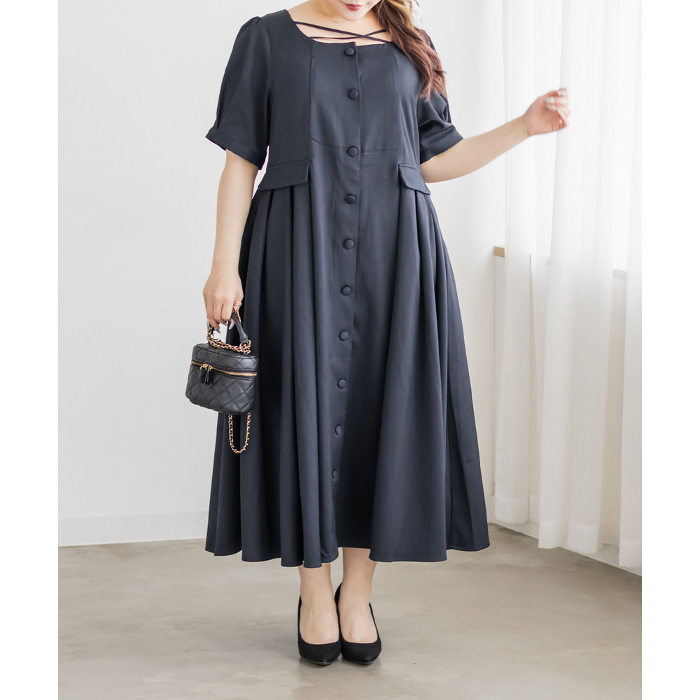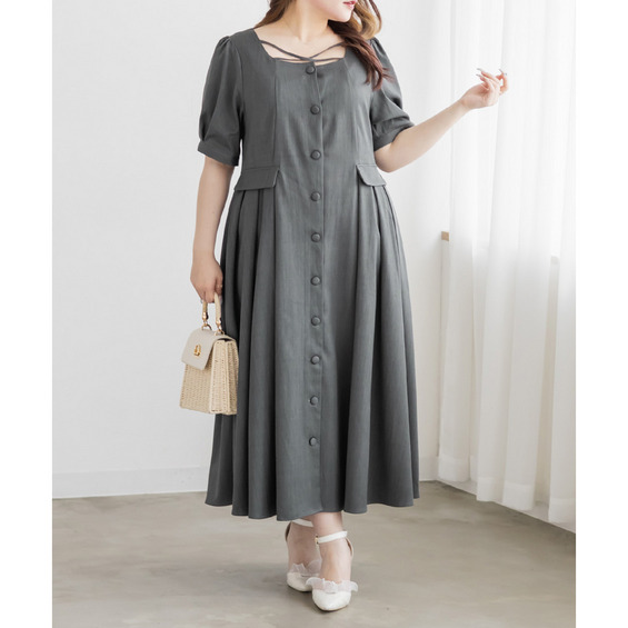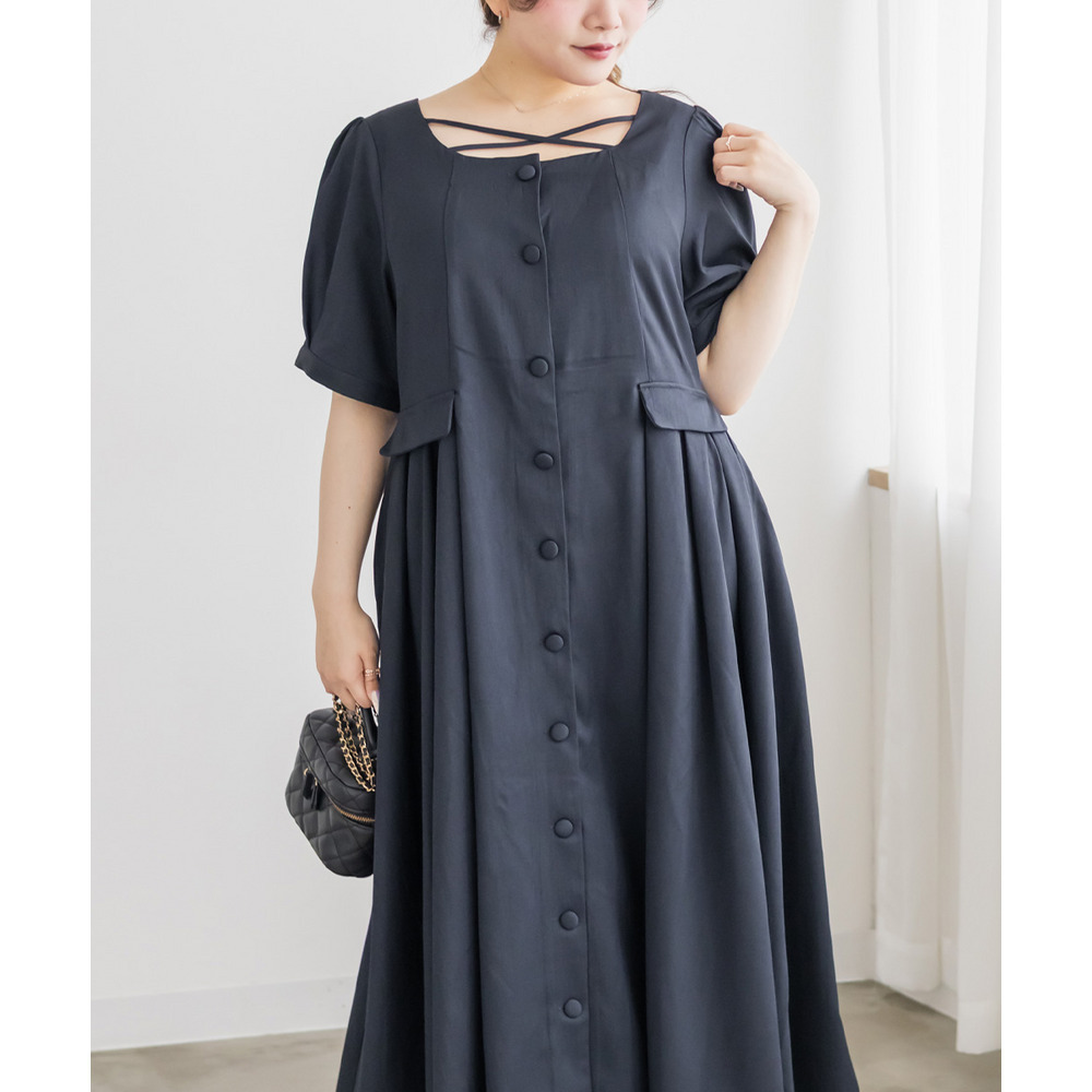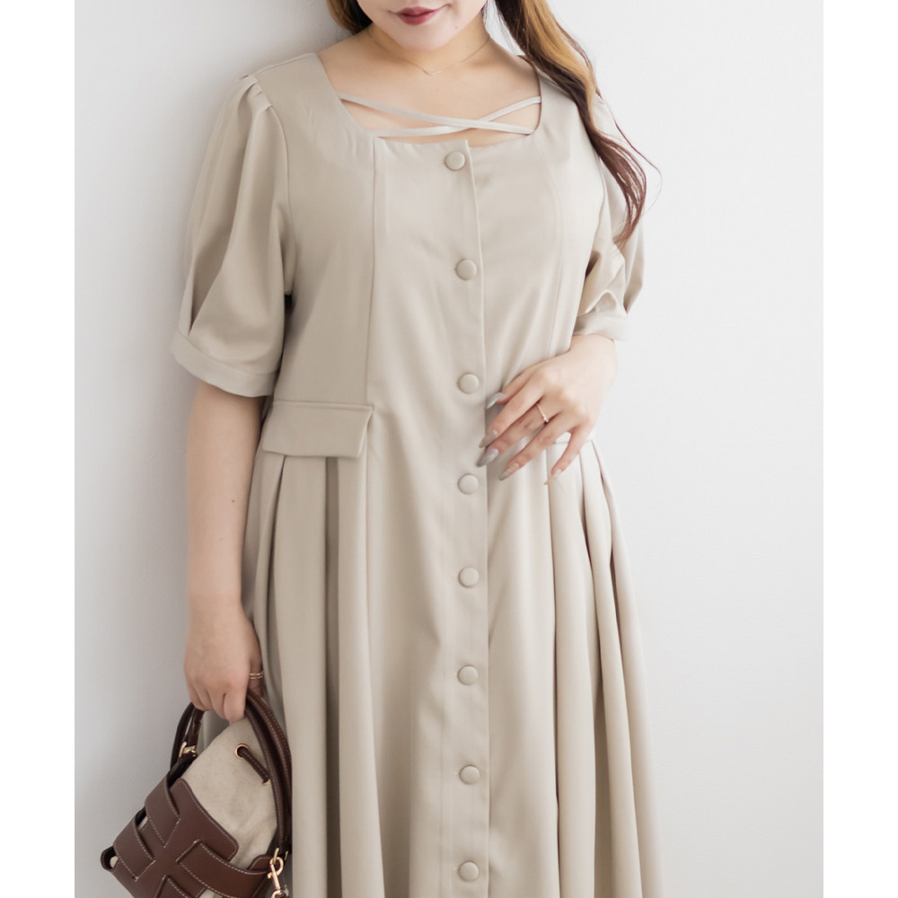 | LLサイズを着用してちょうどいいサイズ感でした!クロスチョーカーデザインが首元を華やかに見せてくれて、1枚でしっかり着映えするワンピースです◎サイドのプリーツが動くたびにふわっと広がって、女性らしいシルエットに見せてくれました♪身頃はすっきりしているので甘くなりすぎず、大人っぽく着られるのも嬉しいポイントです!着心地も楽で、特別感のあるコーデが簡単に完成します。 |