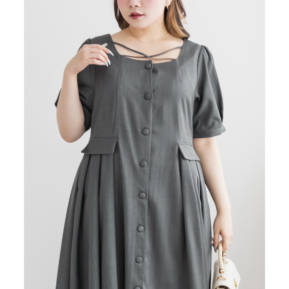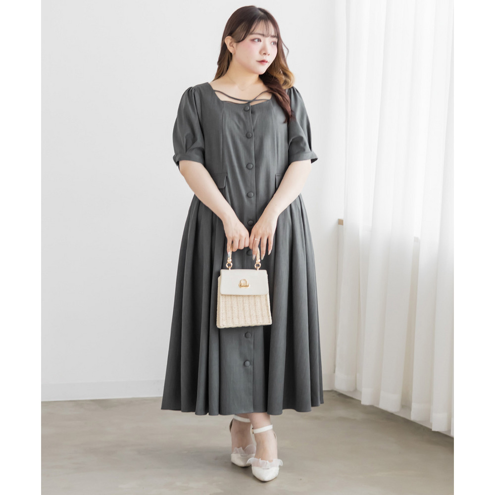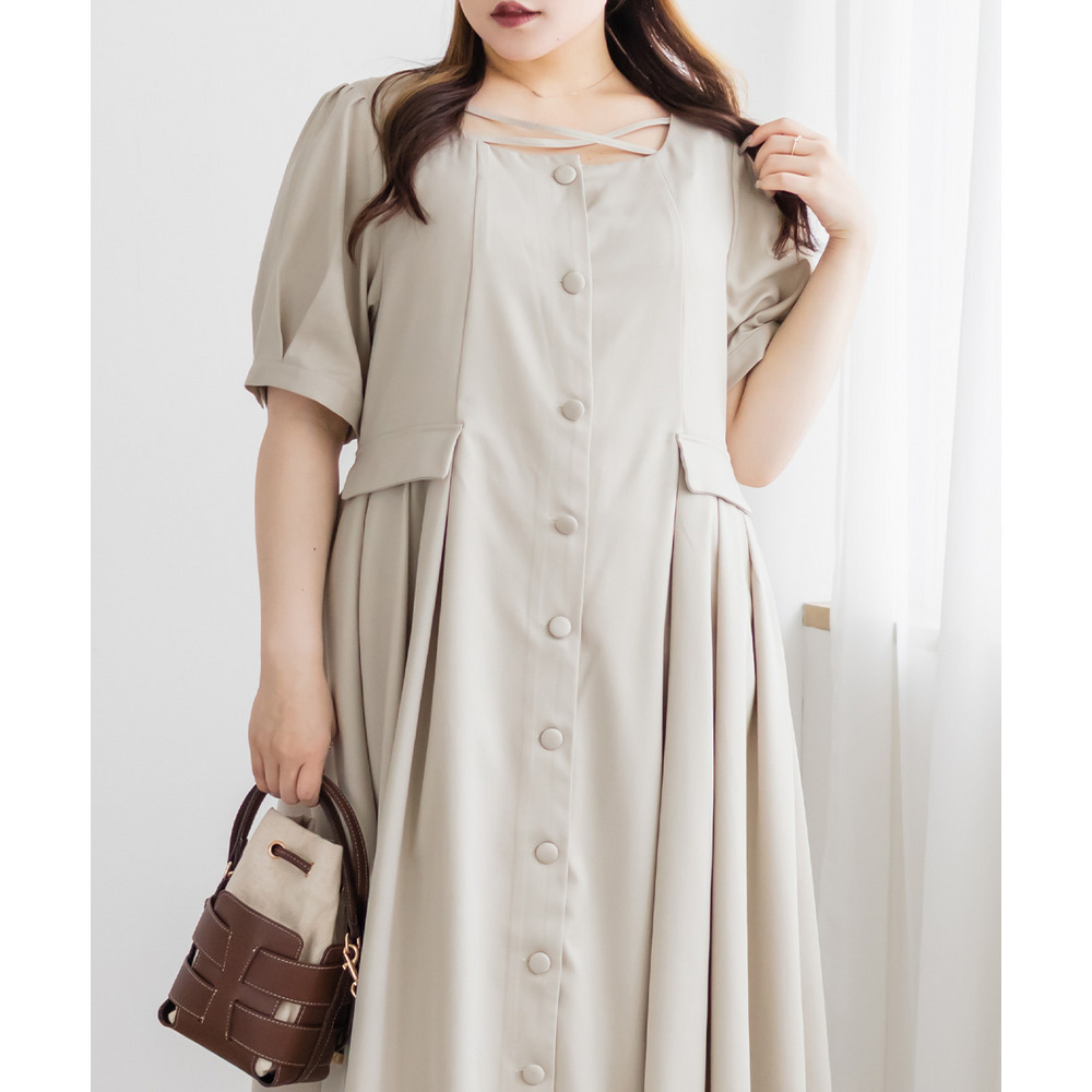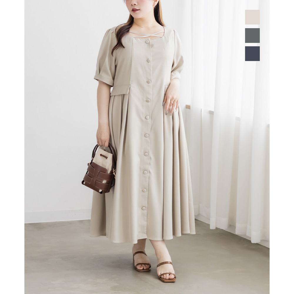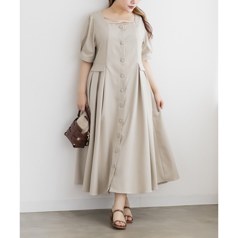 | LLサイズを着用してちょうどいいサイズ感でした!クロスチョーカーデザインが首元を華やかに見せてくれて、1枚でしっかり着映えするワンピースです◎サイドのプリーツが動くたびにふわっと広がって、女性らしいシルエットに見せてくれました♪身頃はすっきりしているので甘くなりすぎず、大人っぽく着られるのも嬉しいポイントです!着心地も楽で、特別感のあるコーデが簡単に完成します。 |