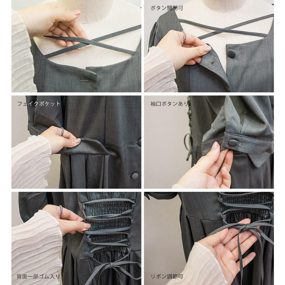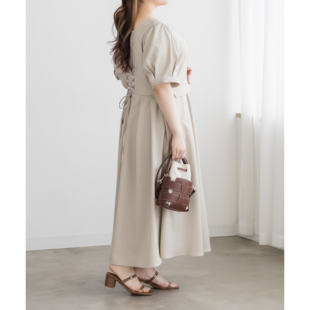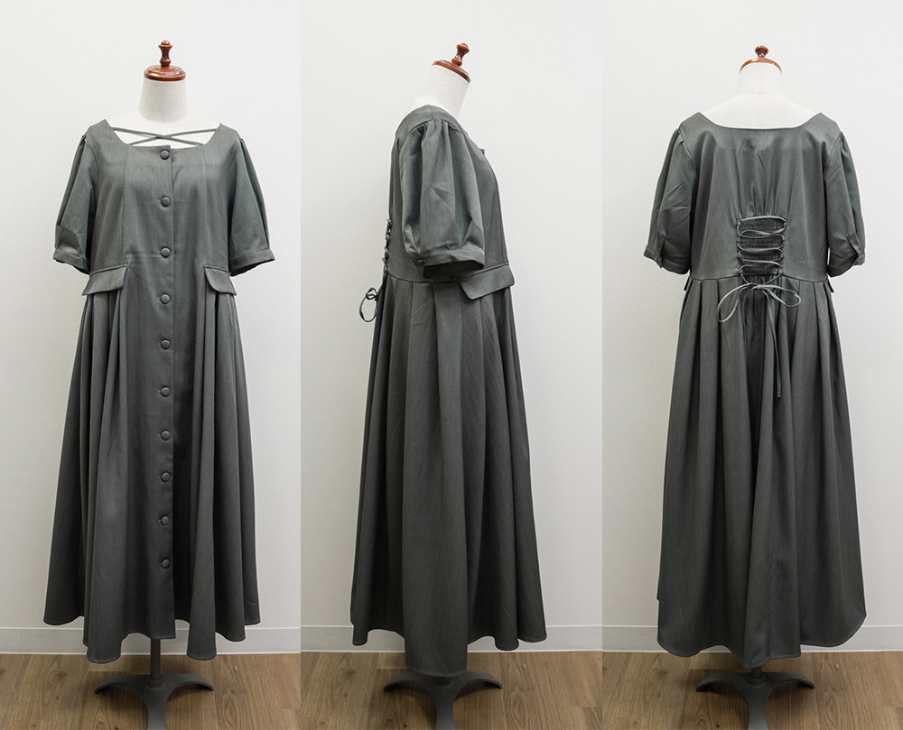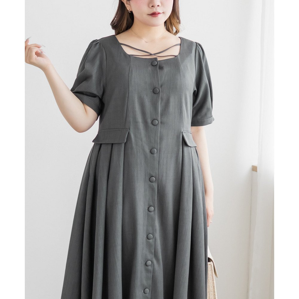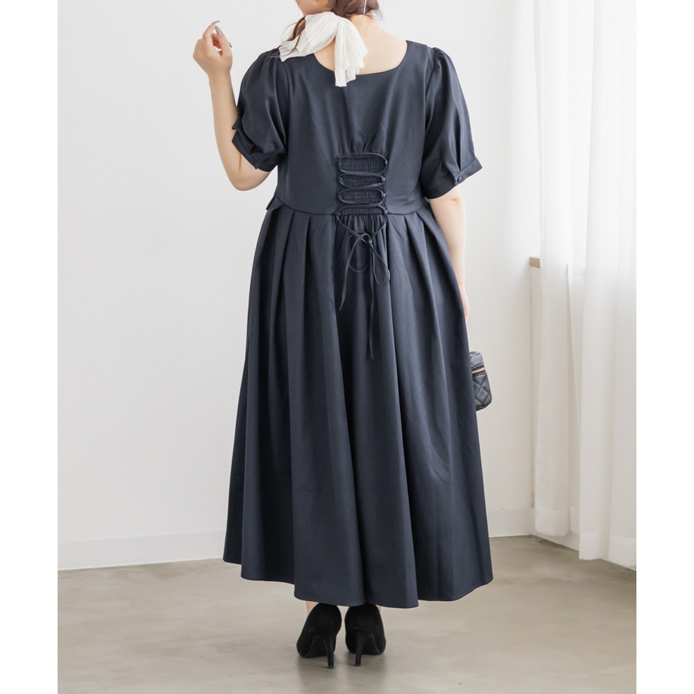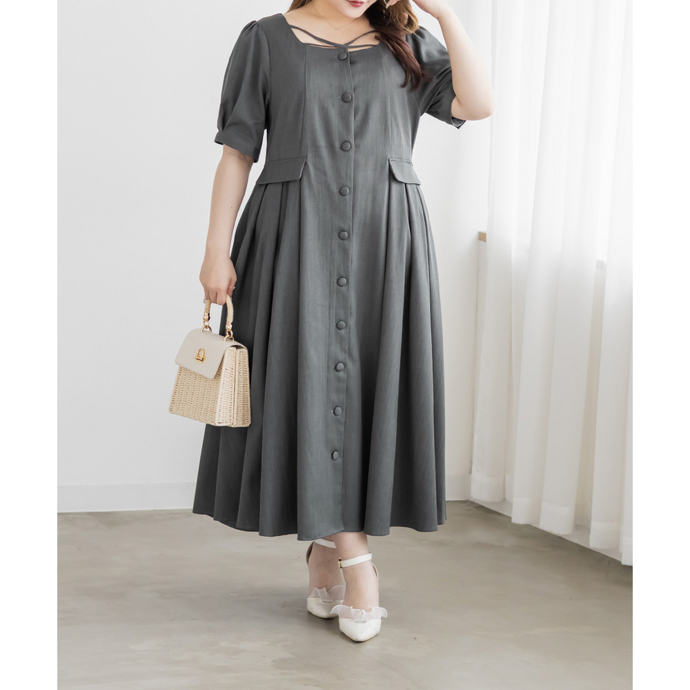 | LLサイズを着用してちょうどいいサイズ感でした!クロスチョーカーデザインが首元を華やかに見せてくれて、1枚でしっかり着映えするワンピースです◎サイドのプリーツが動くたびにふわっと広がって、女性らしいシルエットに見せてくれました♪身頃はすっきりしているので甘くなりすぎず、大人っぽく着られるのも嬉しいポイントです!着心地も楽で、特別感のあるコーデが簡単に完成します。 |