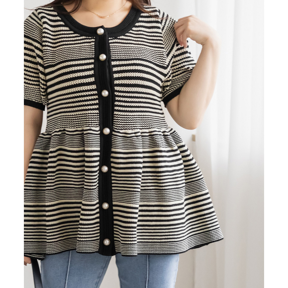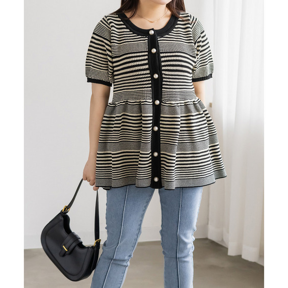 • CLETTEオリジナルパールボタンボーダーペプラムニット1