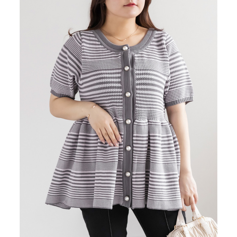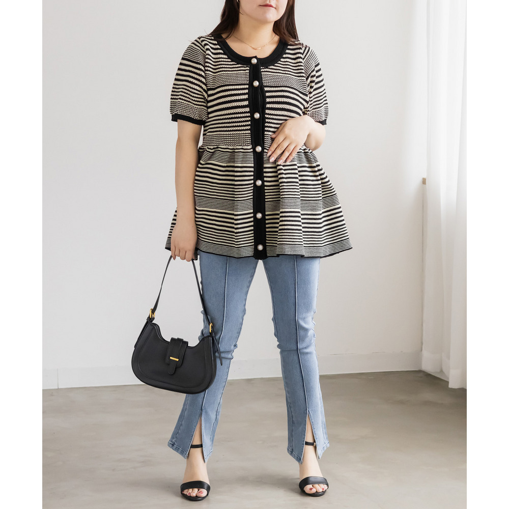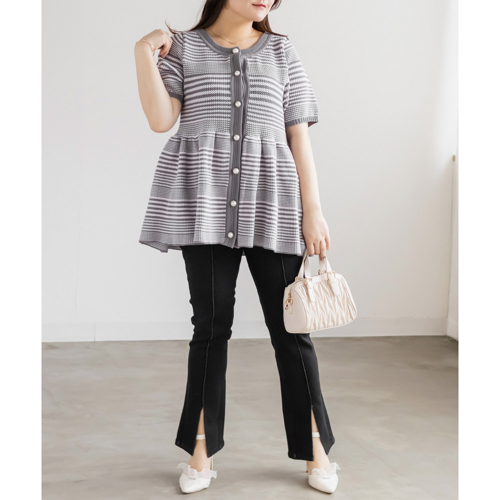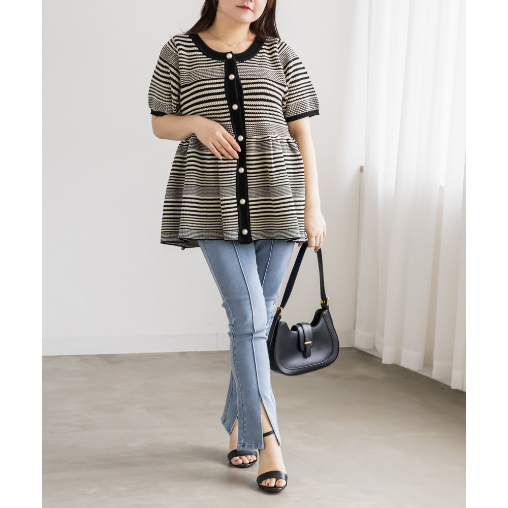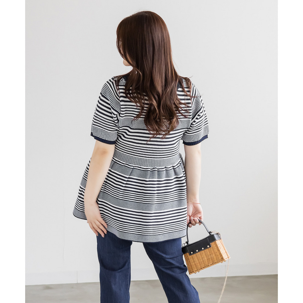 • CLETTEオリジナルパールボタンボーダーペプラムニット10