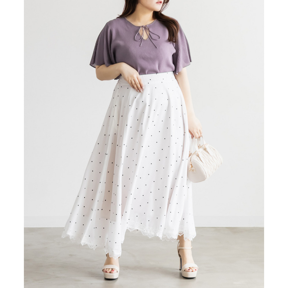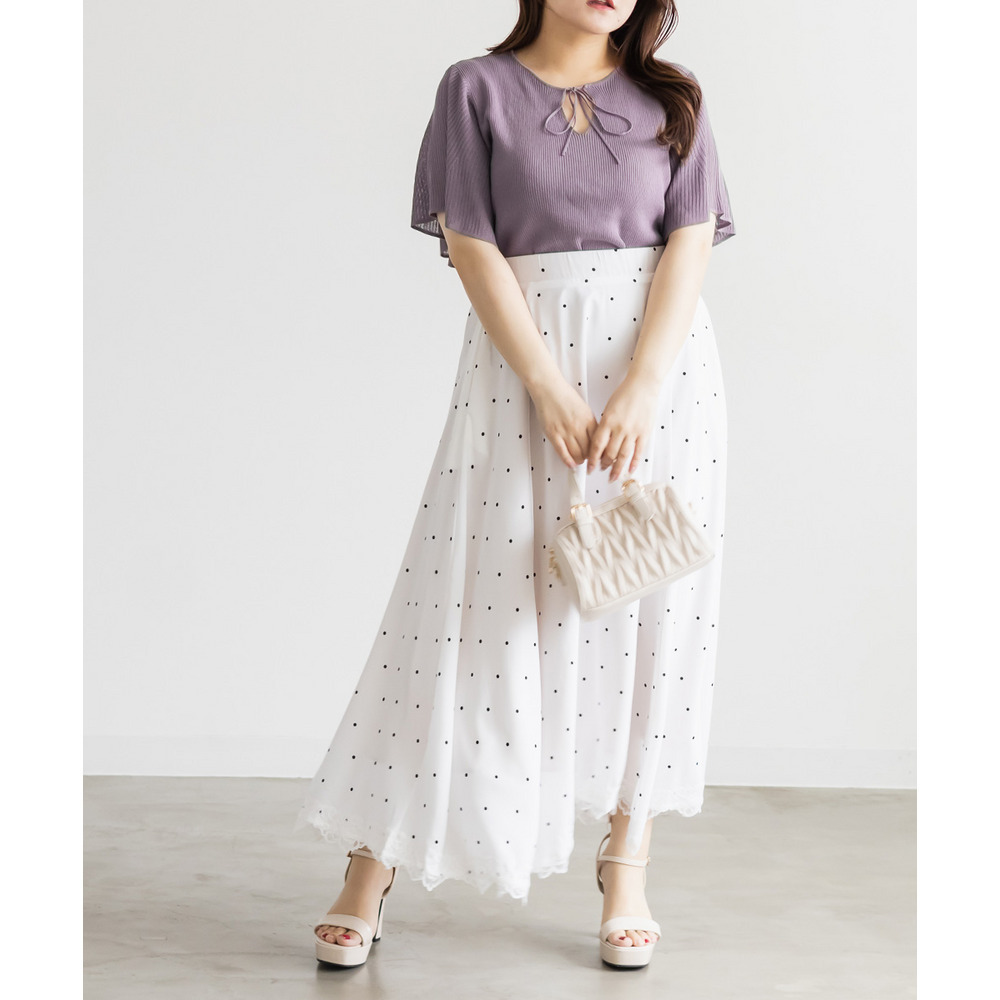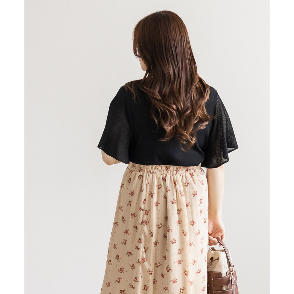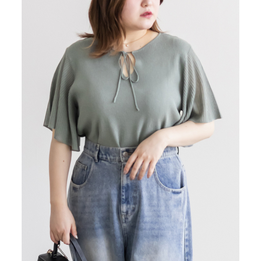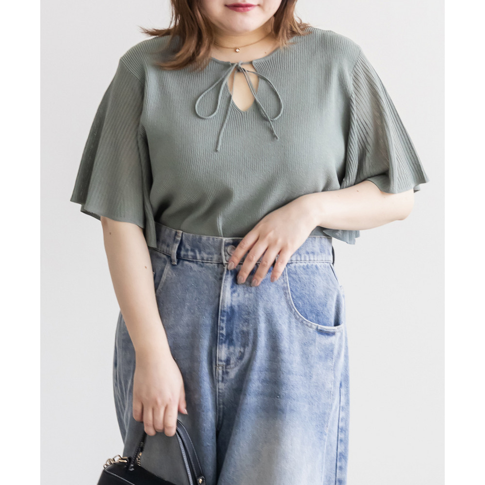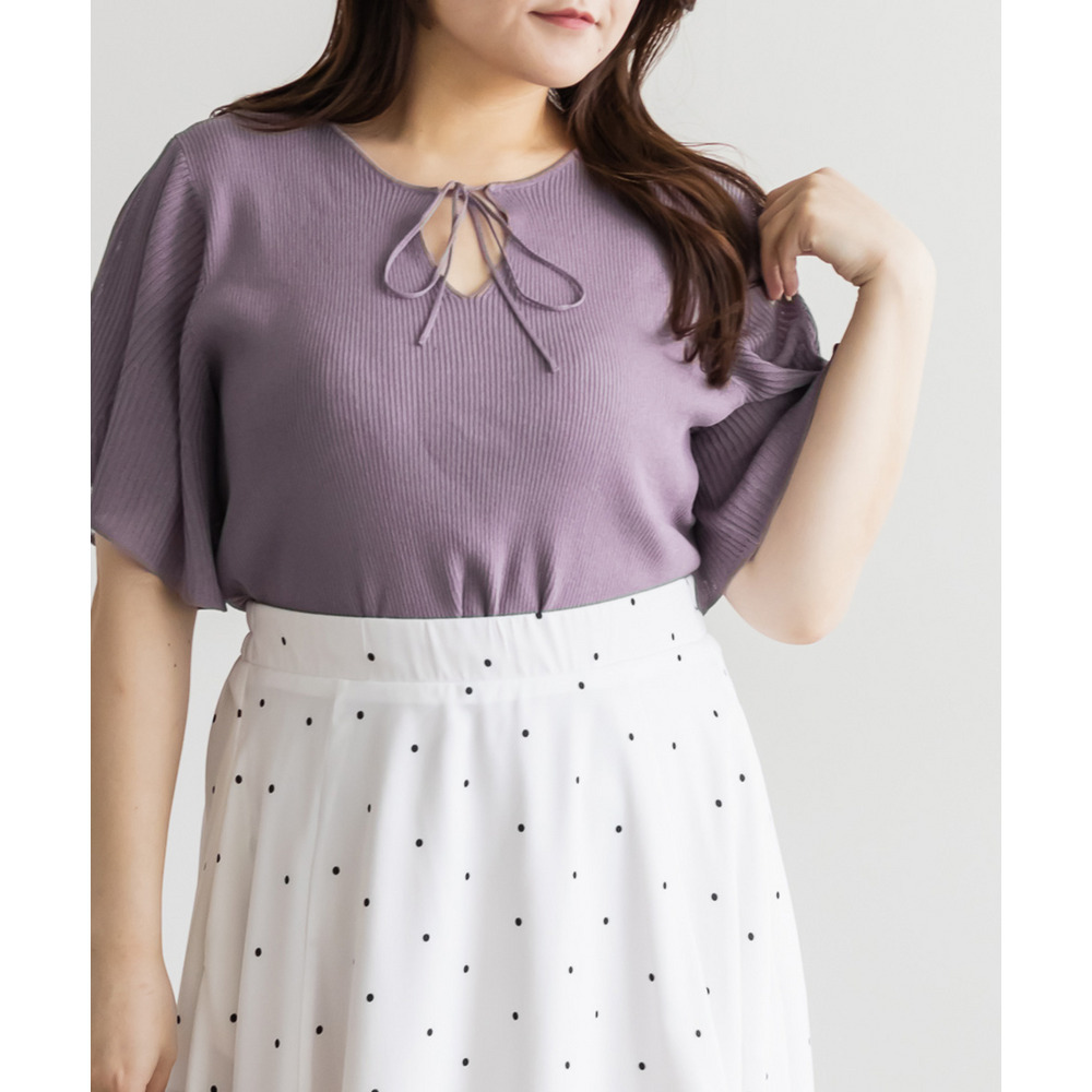 | LLサイズを着用してちょうどいいサイズ感でした!肩まわりや身頃は程よくフィットしつつも窮屈感がなく、ニットも薄手で柔らかくチクチク感なく快適に着られる着心地でした◎フレア袖がふんわり広がって華やかな印象に見せてくれて、気になる腕まわりもさりげなくカバーしてくれます♪リボンネックのデザインが顔まわりのアクセントになって、1枚でしっかり着映えするのが嬉しいポイントでした!きれいめにもカジュアルにも着回ししやすい一枚です。 |