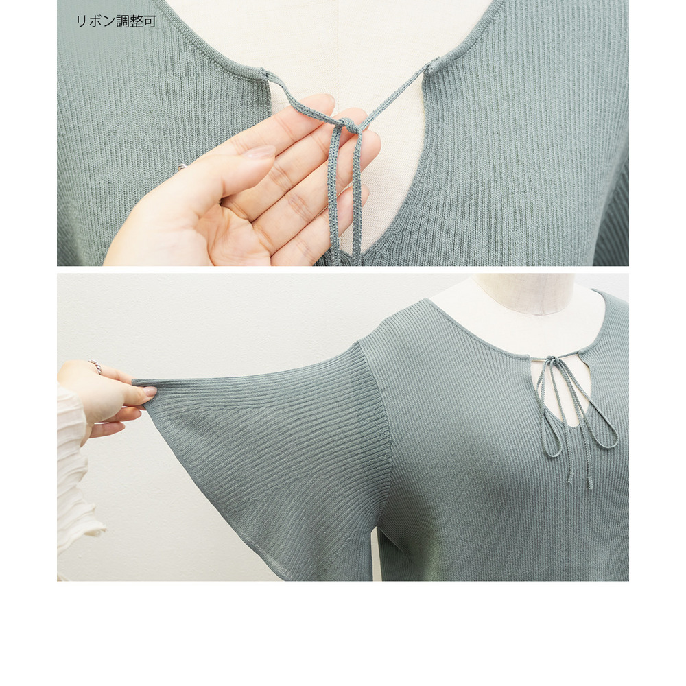 CLETTEオリジナルフレア袖リボンネックニット