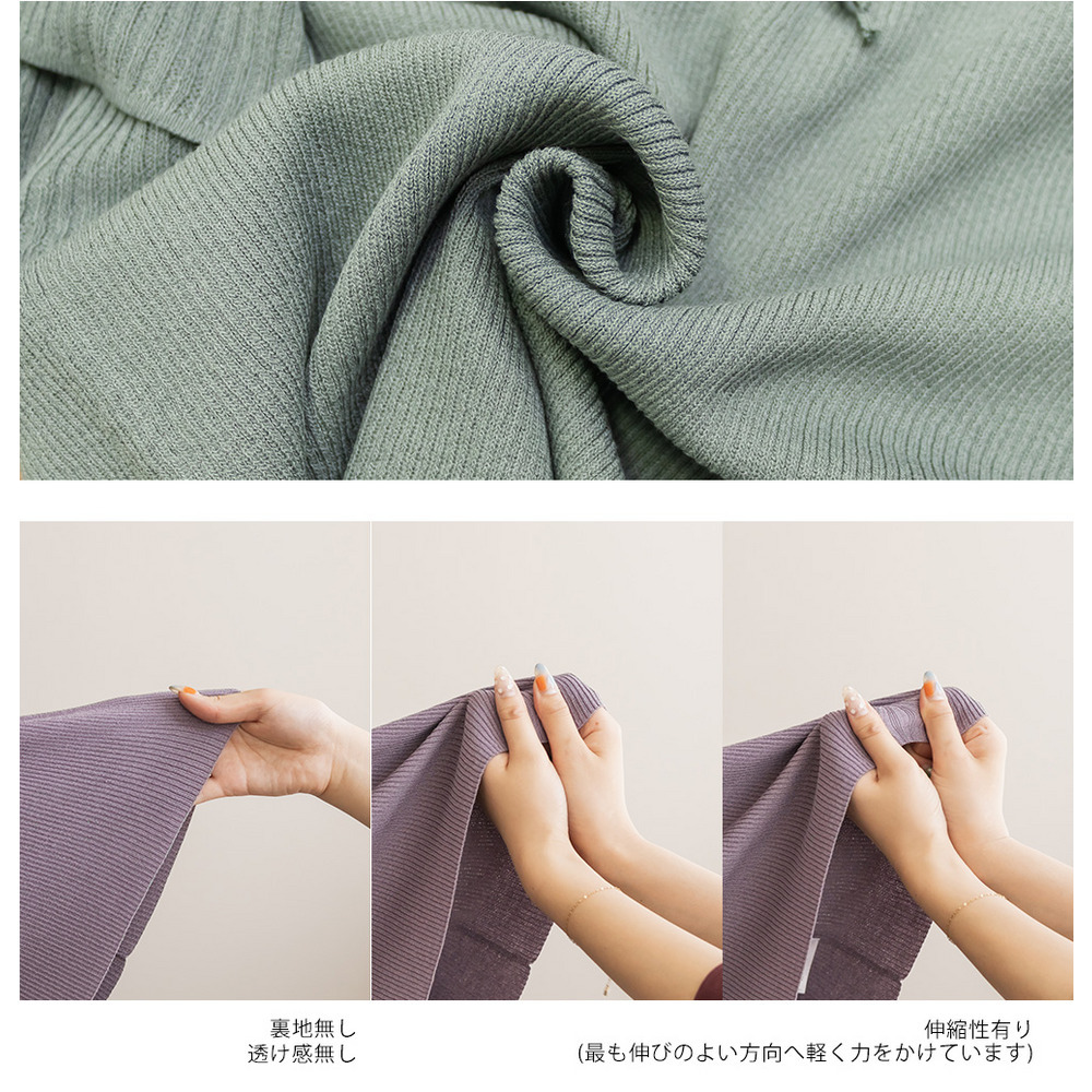 | 素材 | ■素材 レーヨン75%、ポリエステル15%、ナイロン10% ■裏地・透け感・伸縮性 裏地無し、透け感無し、伸縮性有り ■ポケット 無し |