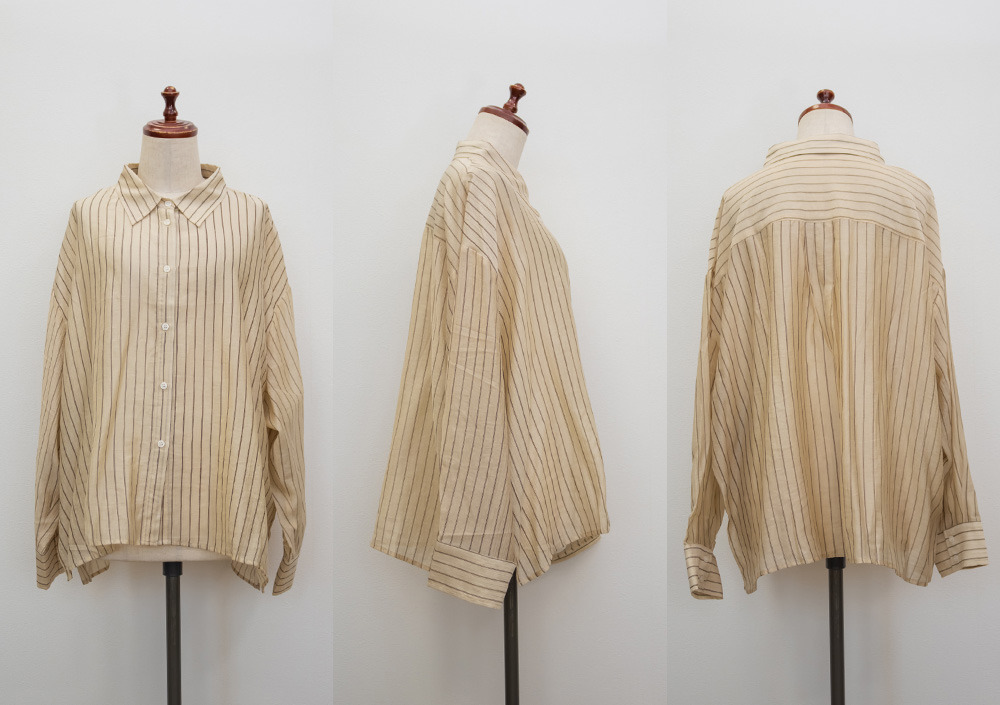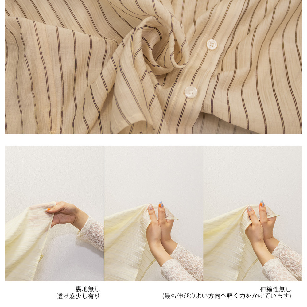 | 素材 | ■素材 再生繊維(テンセル)80%、ポリエステル20% ■裏地・透け感・伸縮性 裏地無し、透け感少し有り、伸縮性無し ■ポケット 無し ■生地感 軽くてさらりとた肌触りの、透け感のある細ピッチストライプ生地です。 |