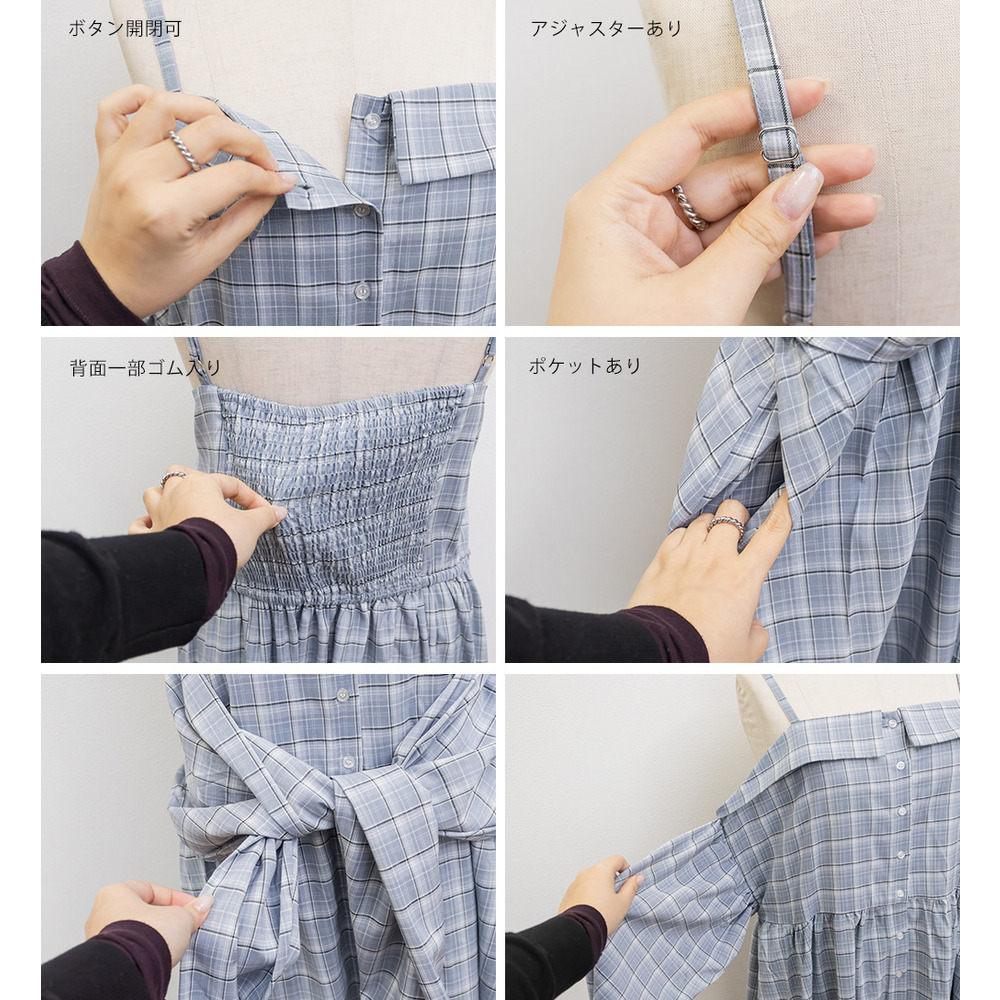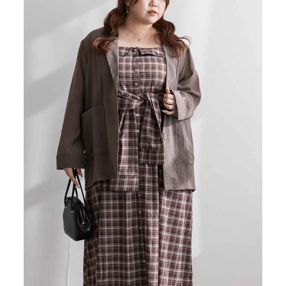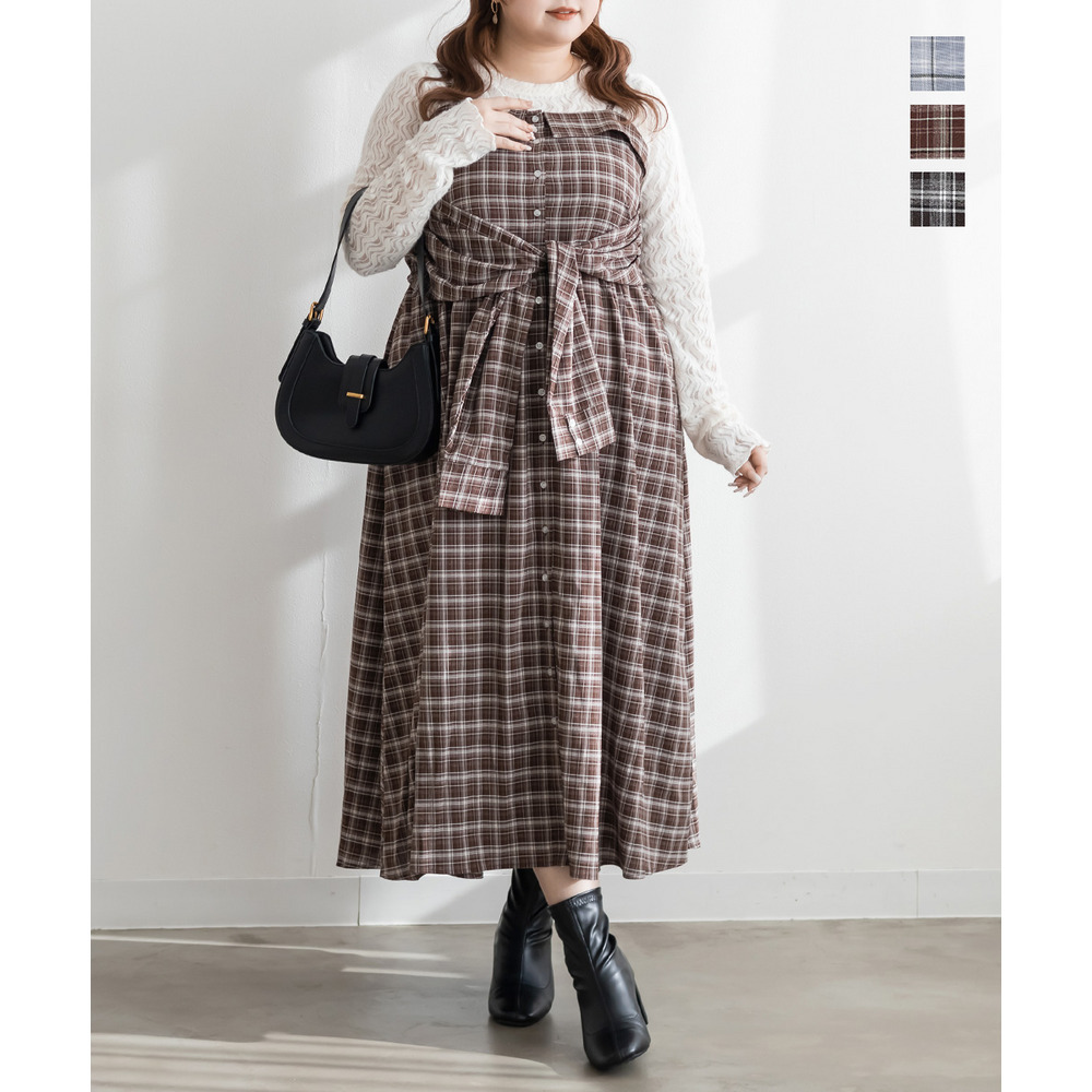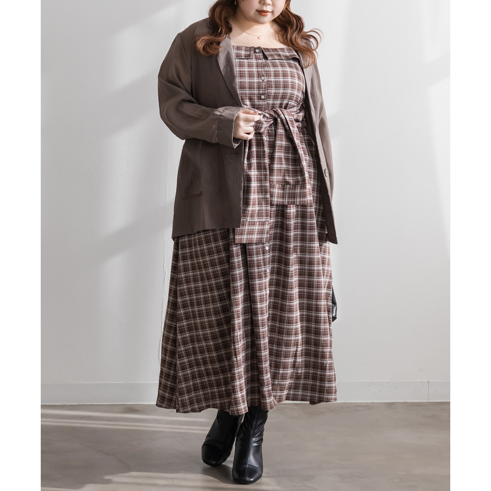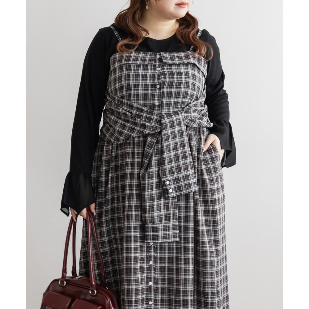 | 3Lサイズを着用しました。全体的にちょうどよく、締め付け感のない着心地でした。シャツディテールのデザインが上半身をすっきり見せてくれて、キャミワンピでも甘くなりすぎないのが嬉しいです。ウエストまわりやヒップラインは程よくゆとりがあり、いつものワンピースと比べても体のラインを拾いにくく安心感があります。インナーを変えるだけで雰囲気が変わるので、Tシャツでカジュアルにも、ブラウス合わせでフェミニンにも着られます◎季節を問わず着回ししやすく、お出かけやデートにもおすすめの1枚です♪ |