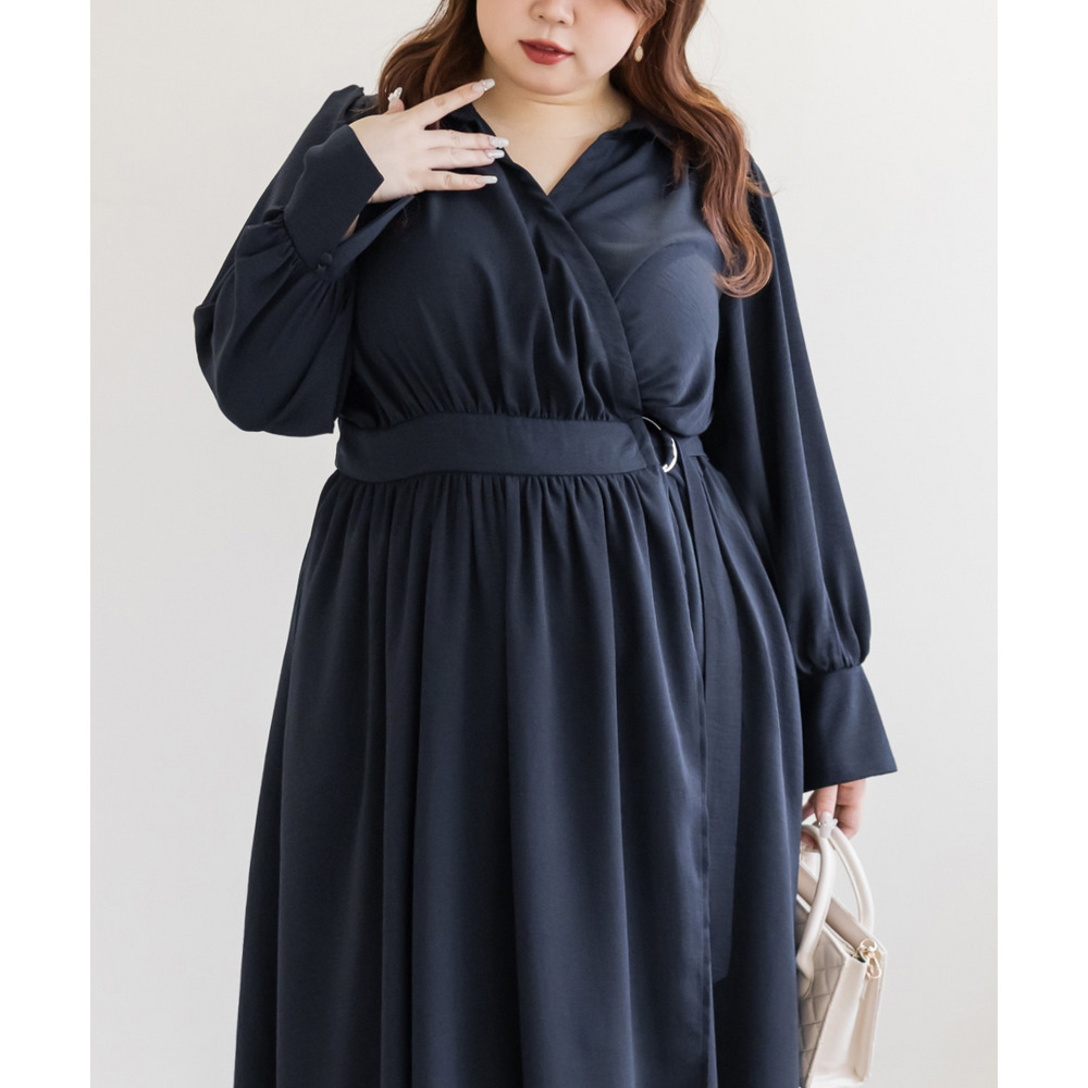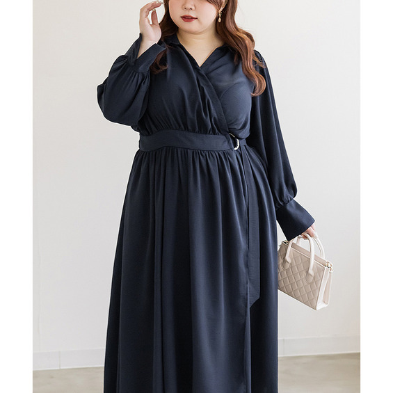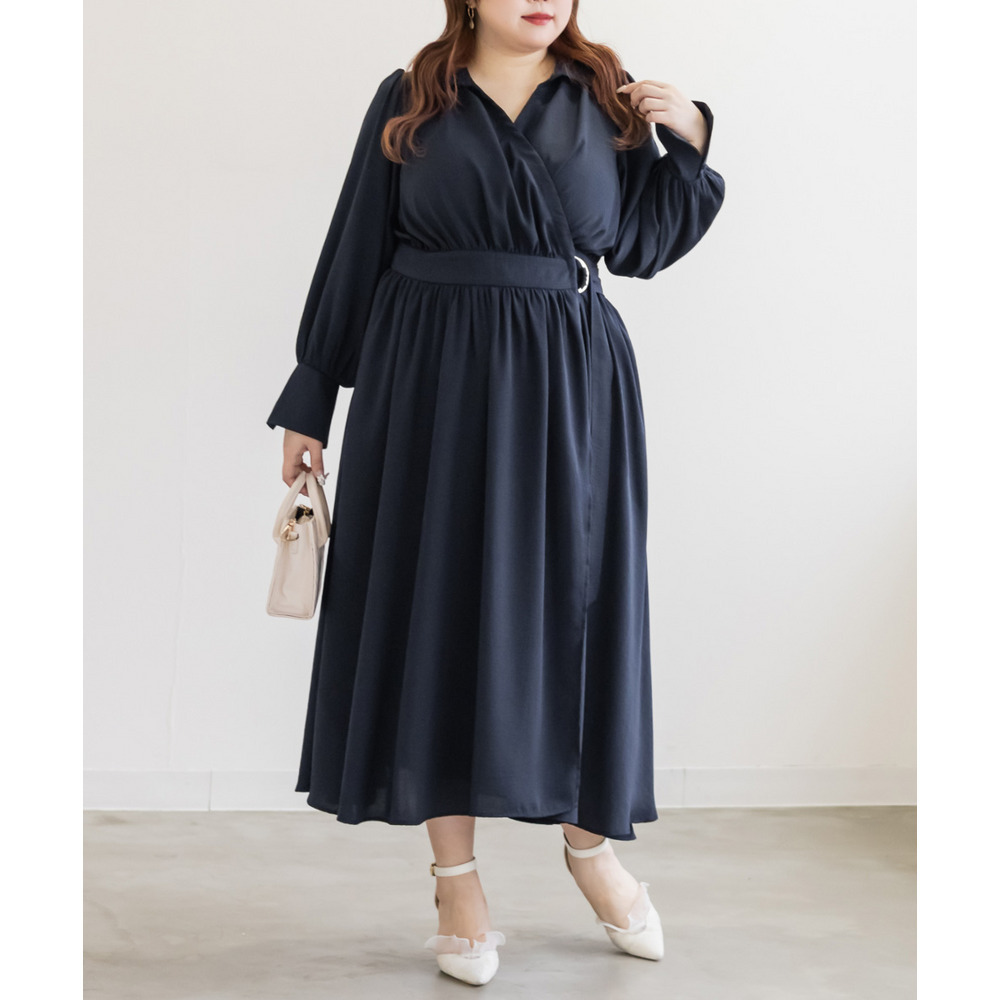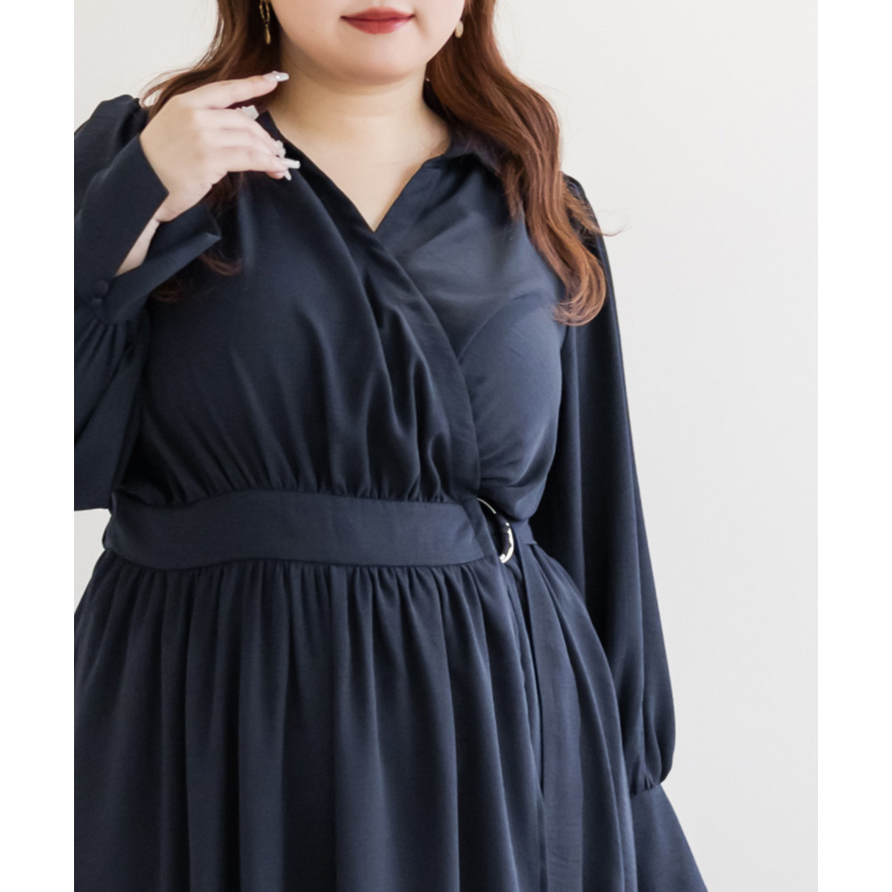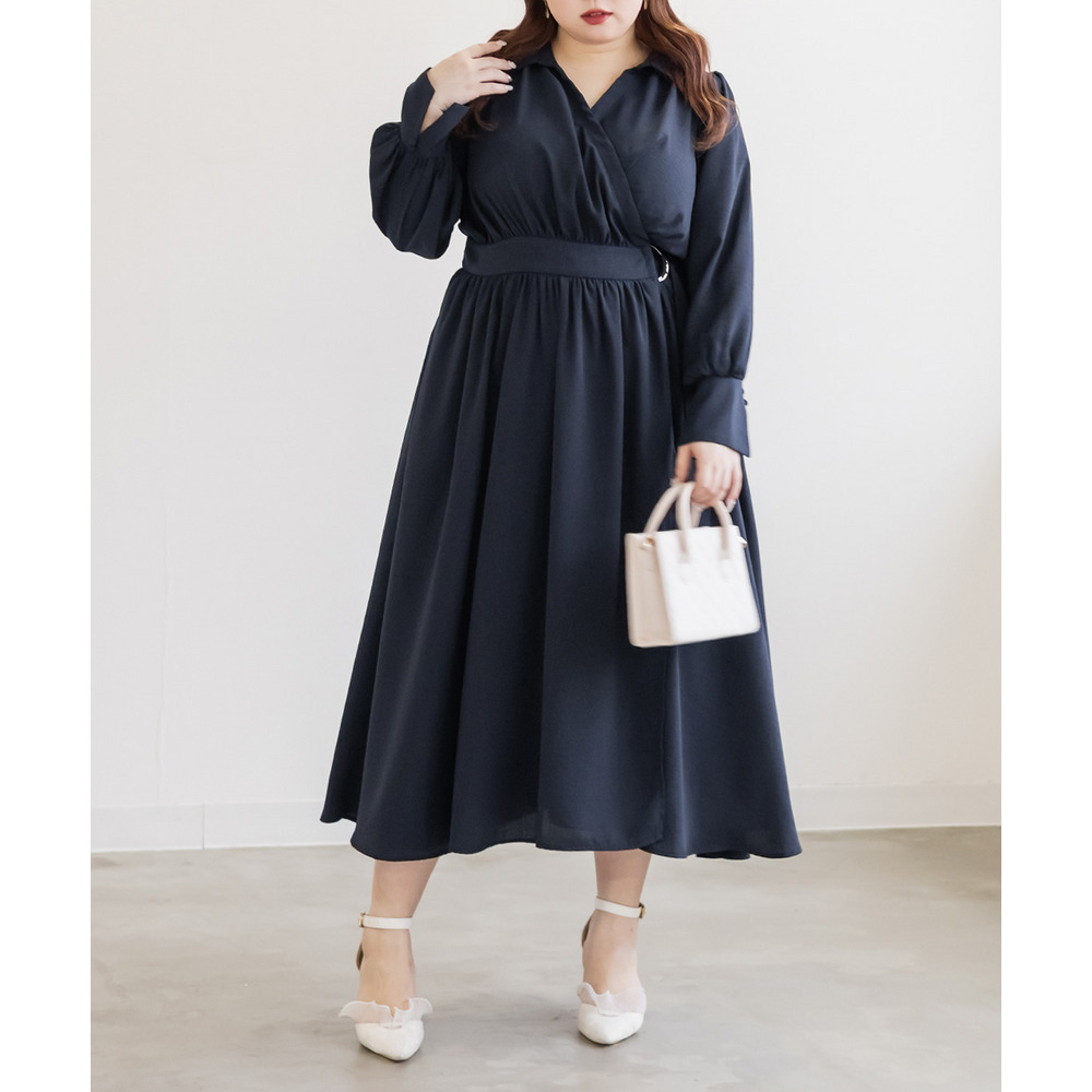 | 3Lサイズを着用しました。こちらはウエストまわりにほどよくフィット感がありつつ、ギャザーのおかげで窮屈さはなく、ちょうどいいサイズ感でした。カシュクールデザインが自然にウエストを引き締めてくれて、着るだけでメリハリのあるシルエットになるのが嬉しいです!サイドのゴールドバックルがさりげないアクセントになっていて、上品な印象です。ショートブーツやパンプスできれいめにまとめても、スニーカーで少しカジュアルに外しても可愛く、お出かけやちょっとしたお呼ばれにもおすすめの1枚です♪ |