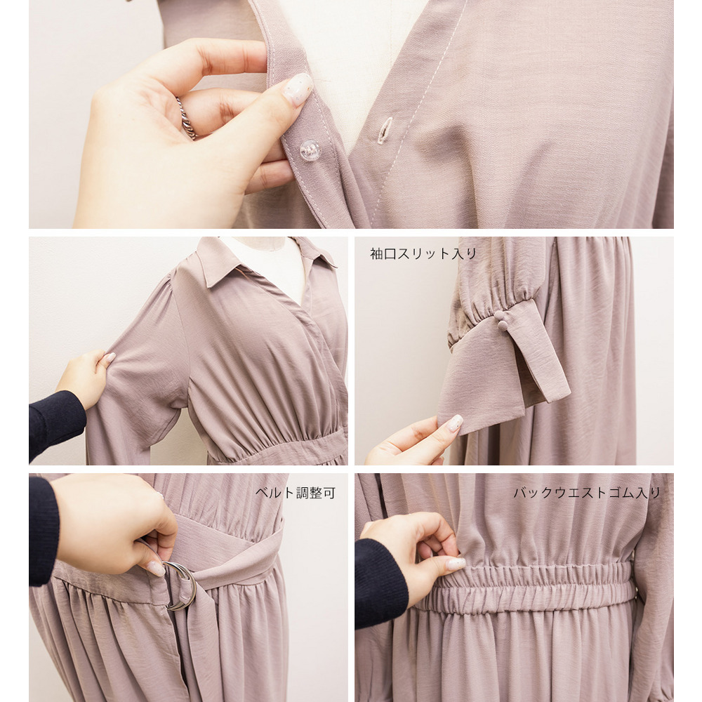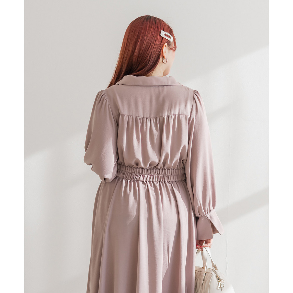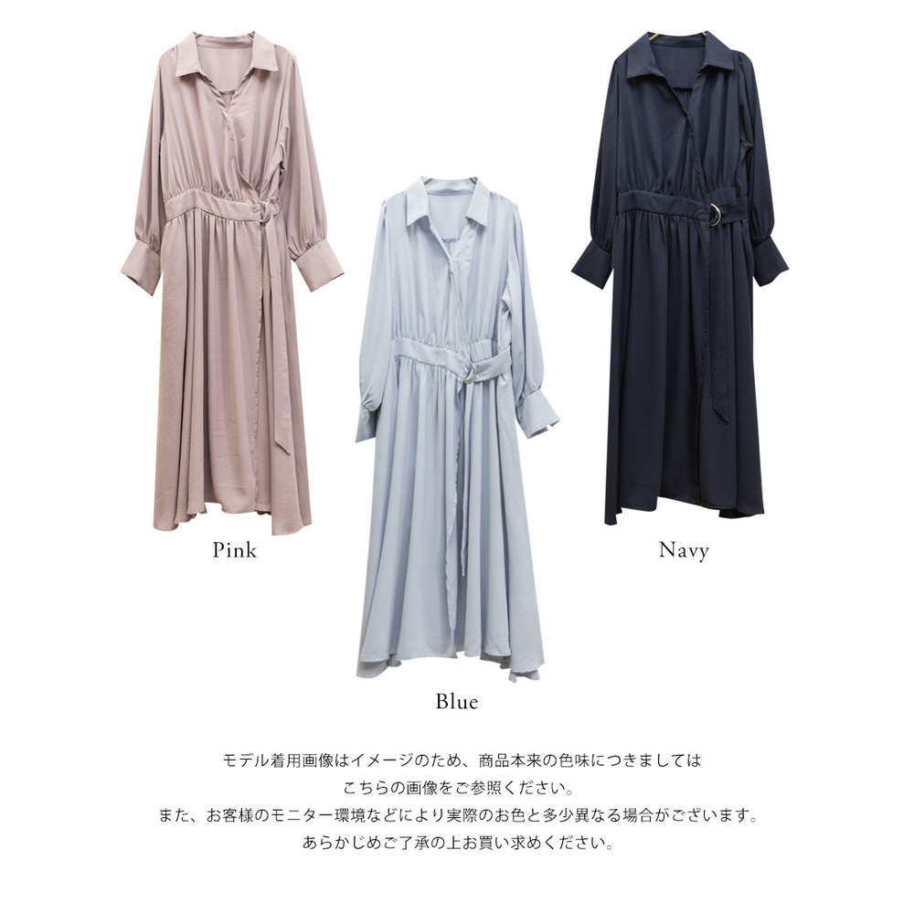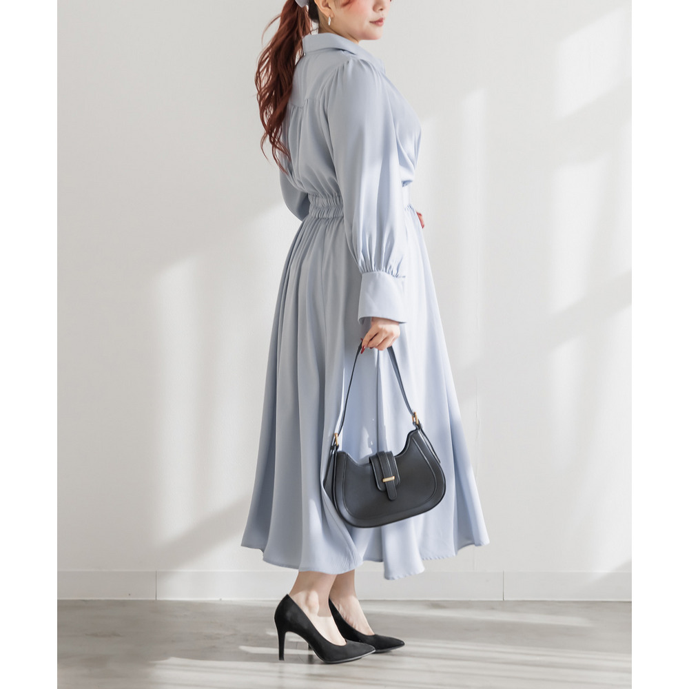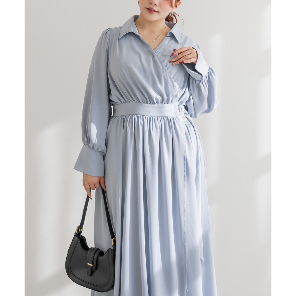 | 3Lサイズを着用しました。こちらはウエストまわりにほどよくフィット感がありつつ、ギャザーのおかげで窮屈さはなく、ちょうどいいサイズ感でした。カシュクールデザインが自然にウエストを引き締めてくれて、着るだけでメリハリのあるシルエットになるのが嬉しいです!サイドのゴールドバックルがさりげないアクセントになっていて、上品な印象です。ショートブーツやパンプスできれいめにまとめても、スニーカーで少しカジュアルに外しても可愛く、お出かけやちょっとしたお呼ばれにもおすすめの1枚です♪ |