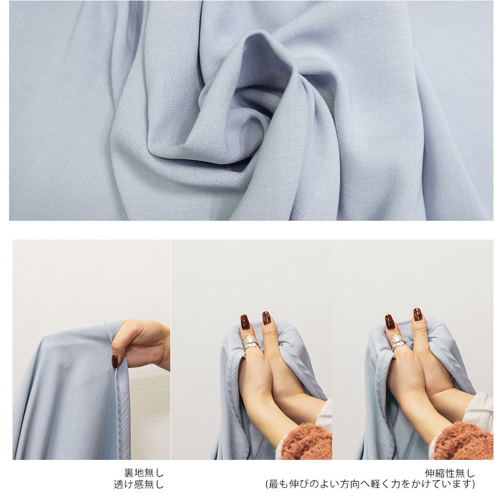 | 素材 | ■素材 ポリエステル100% ■裏地・透け感・伸縮性 裏地無し、透け感わずかに有り、伸縮性無し ■ポケット 有り ■生地感 さらりとしたやや表面感のある布帛生地。軽くてケアしやすい素材感です。 |