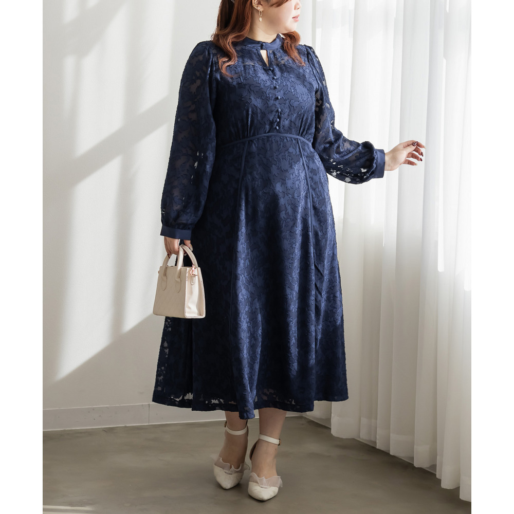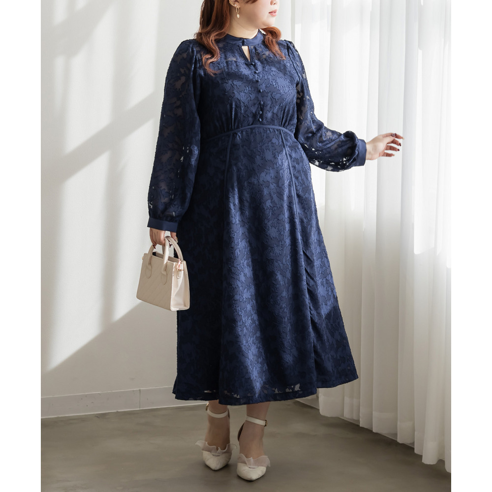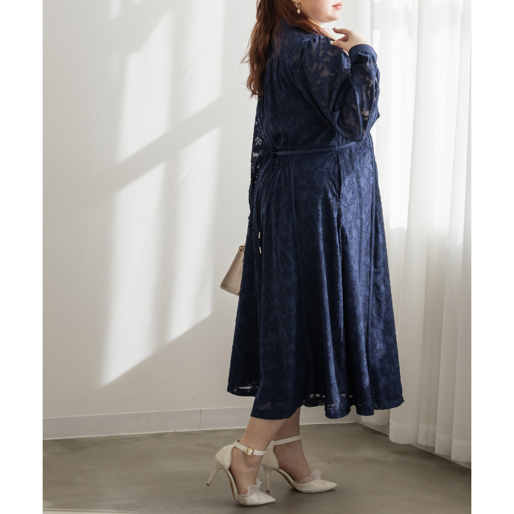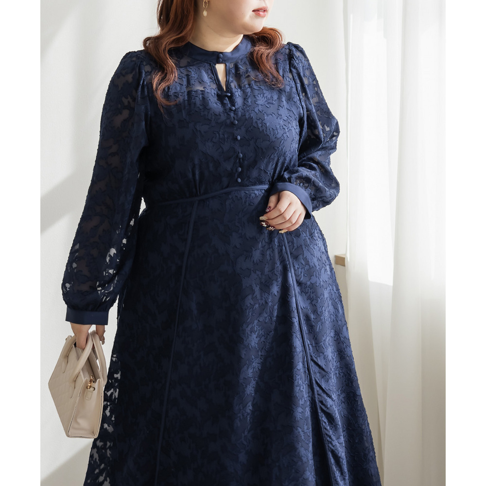 | 素材 | ■素材 【表地】ポリエステル100%、【裏地】ポリエステル95%、ポリウレタン5% ■裏地・透け感・伸縮性 裏地有り、透け感少し有り、伸縮性無し ■ポケット 有り ■生地感 透け感のあるジャガード織のような表地生地。透けている部分と柄の部分で違った表面感のある上品な素材です。身頃部分は伸縮性のないさらりとした肌触りの裏地付きです。(デコルテ&袖は裏地無し) |