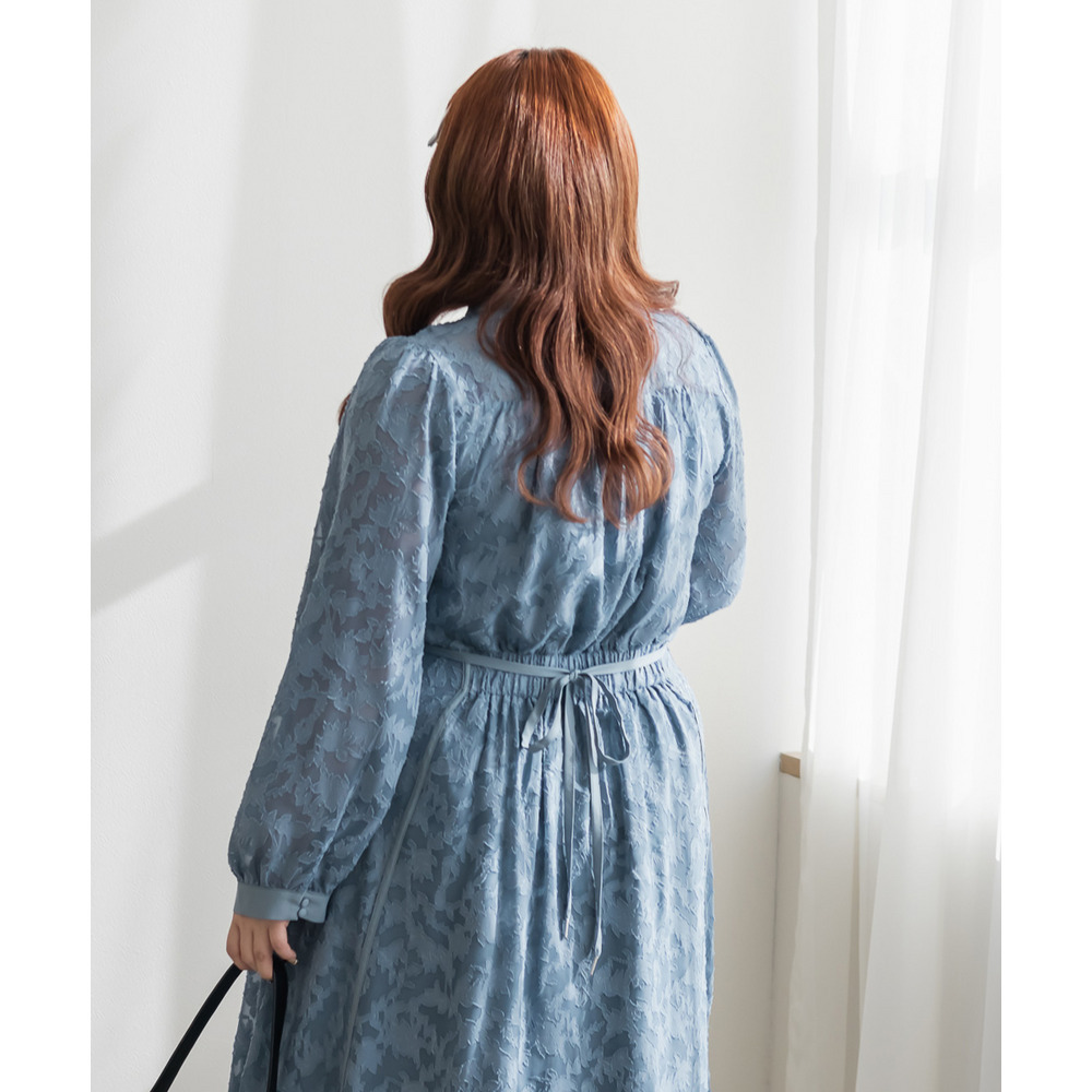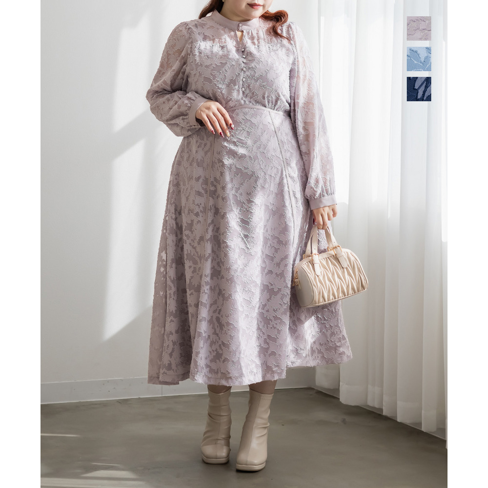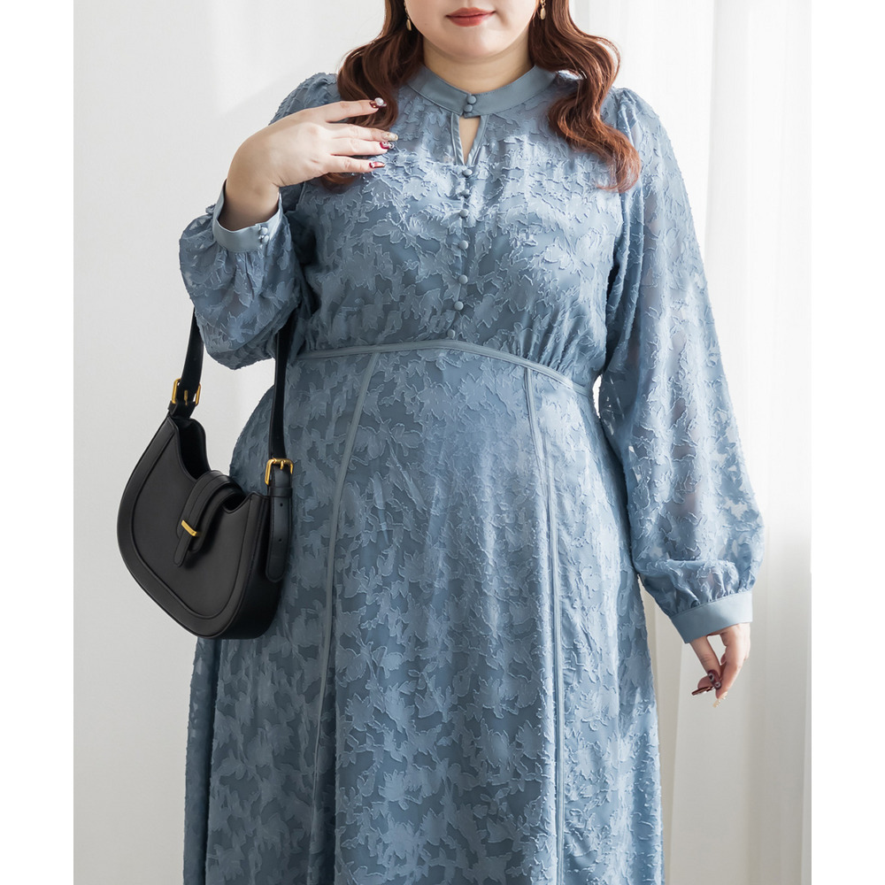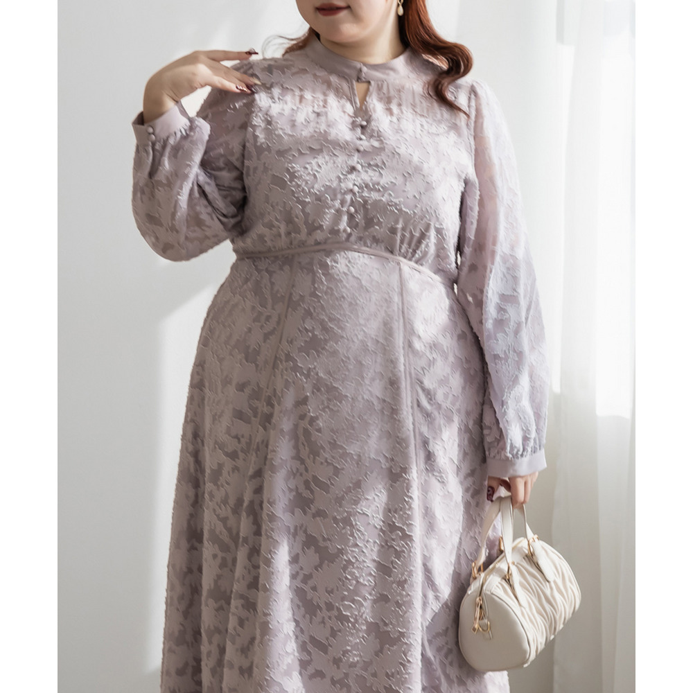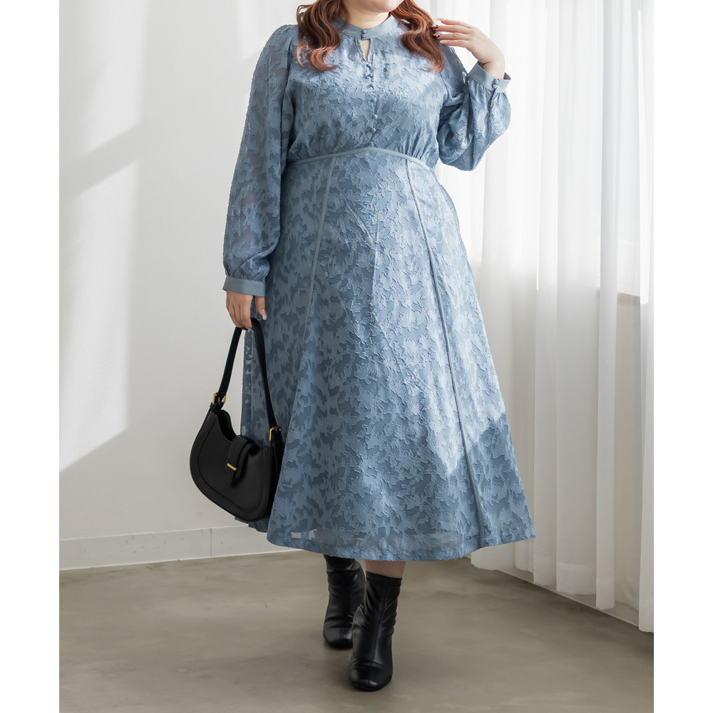 | 素材 | ■素材 【表地】ポリエステル100%、【裏地】ポリエステル95%、ポリウレタン5% ■裏地・透け感・伸縮性 裏地有り、透け感少し有り、伸縮性無し ■ポケット 有り ■生地感 透け感のあるジャガード織のような表地生地。透けている部分と柄の部分で違った表面感のある上品な素材です。身頃部分は伸縮性のないさらりとした肌触りの裏地付きです。(デコルテ&袖は裏地無し) |