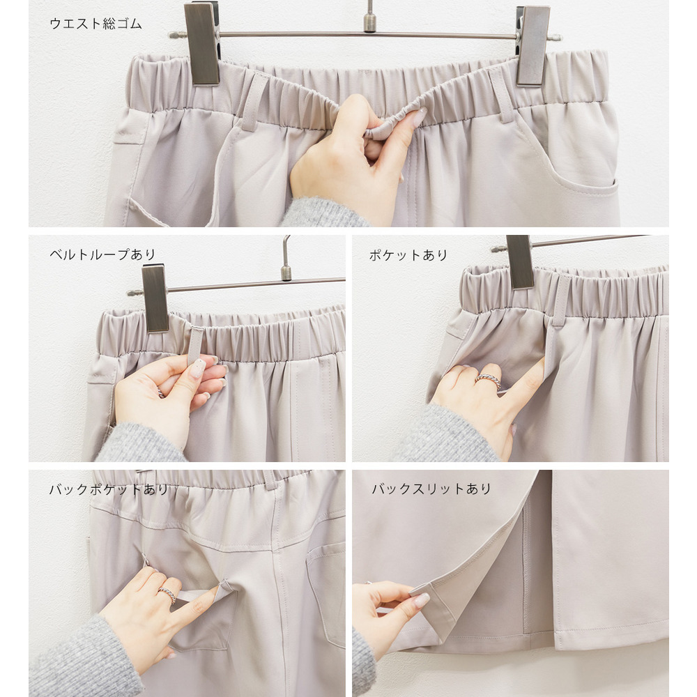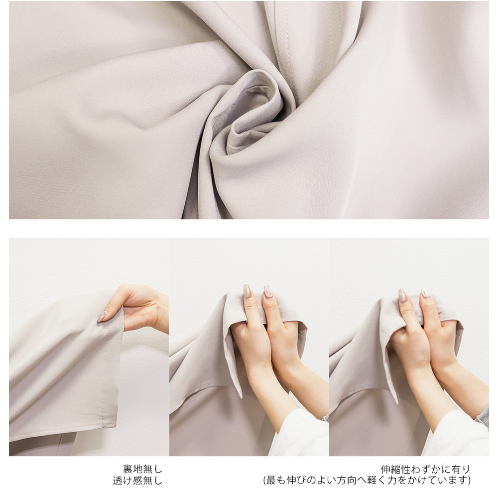 | 素材 | ■素材 ポリエステル92%、ポリウレタン8% ■裏地・透け感・伸縮性 裏地無し、透け感無し、伸縮性わずかに有り ■ポケット 有り ■生地感 薄手のさらっとした素材です。 |